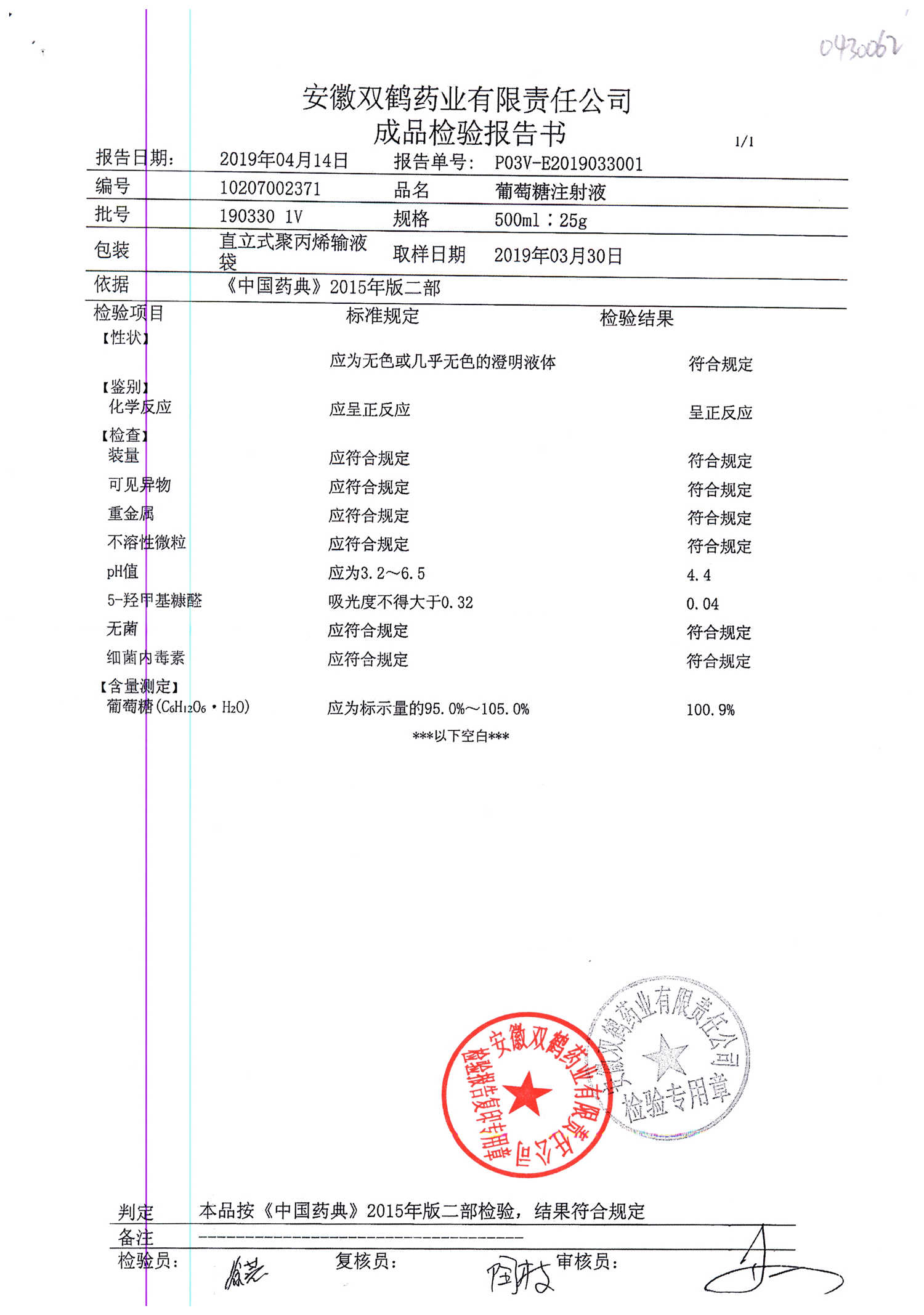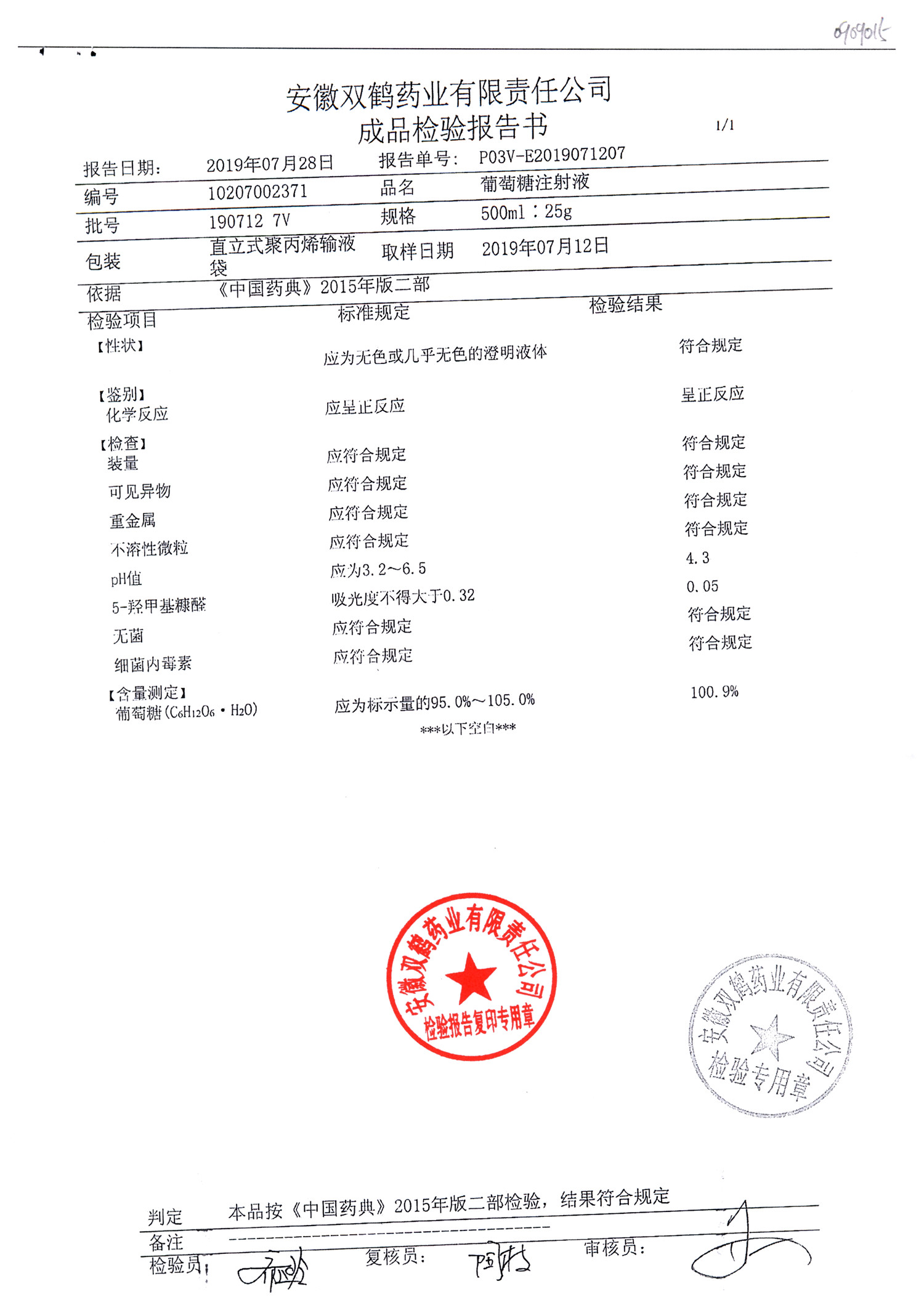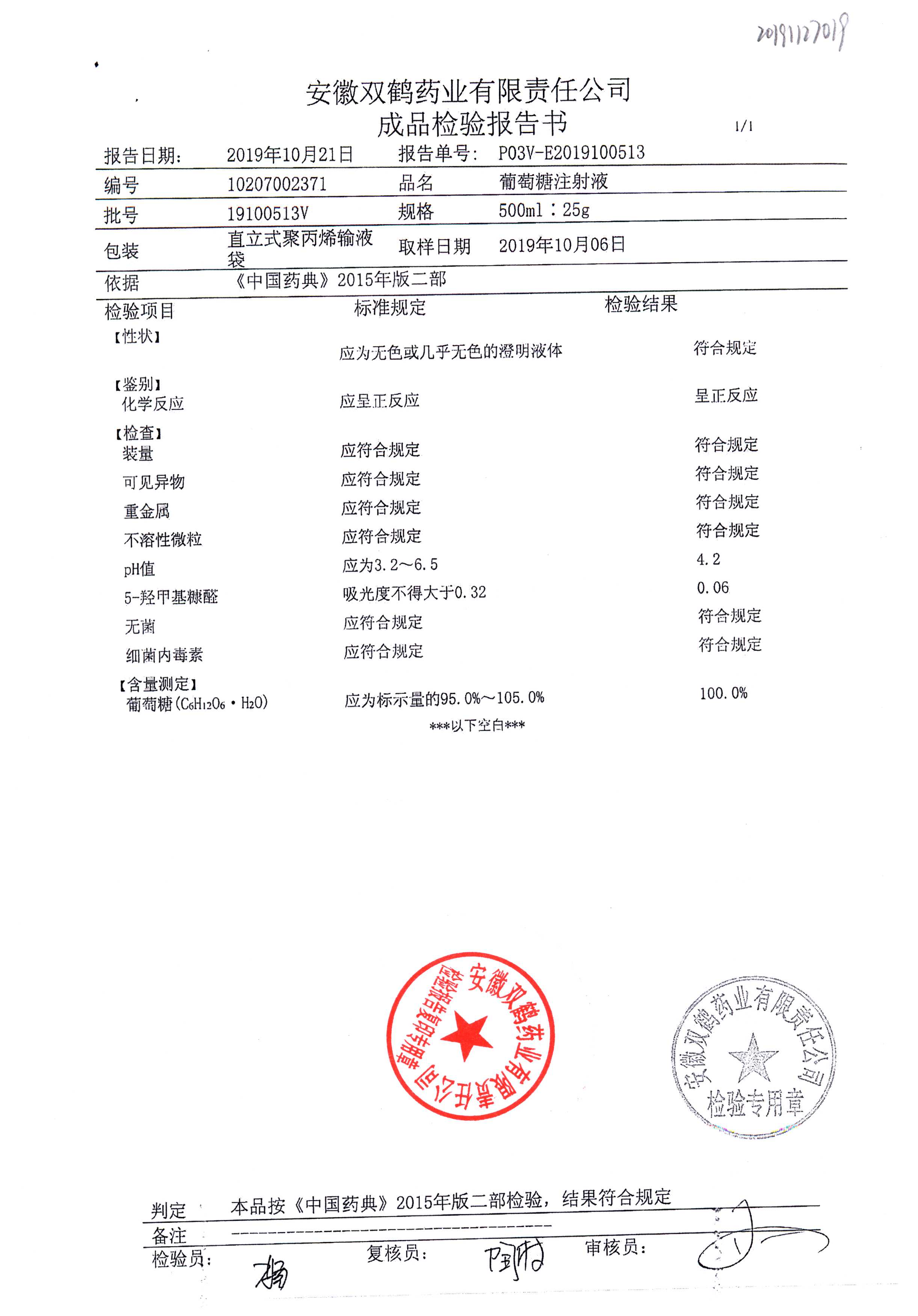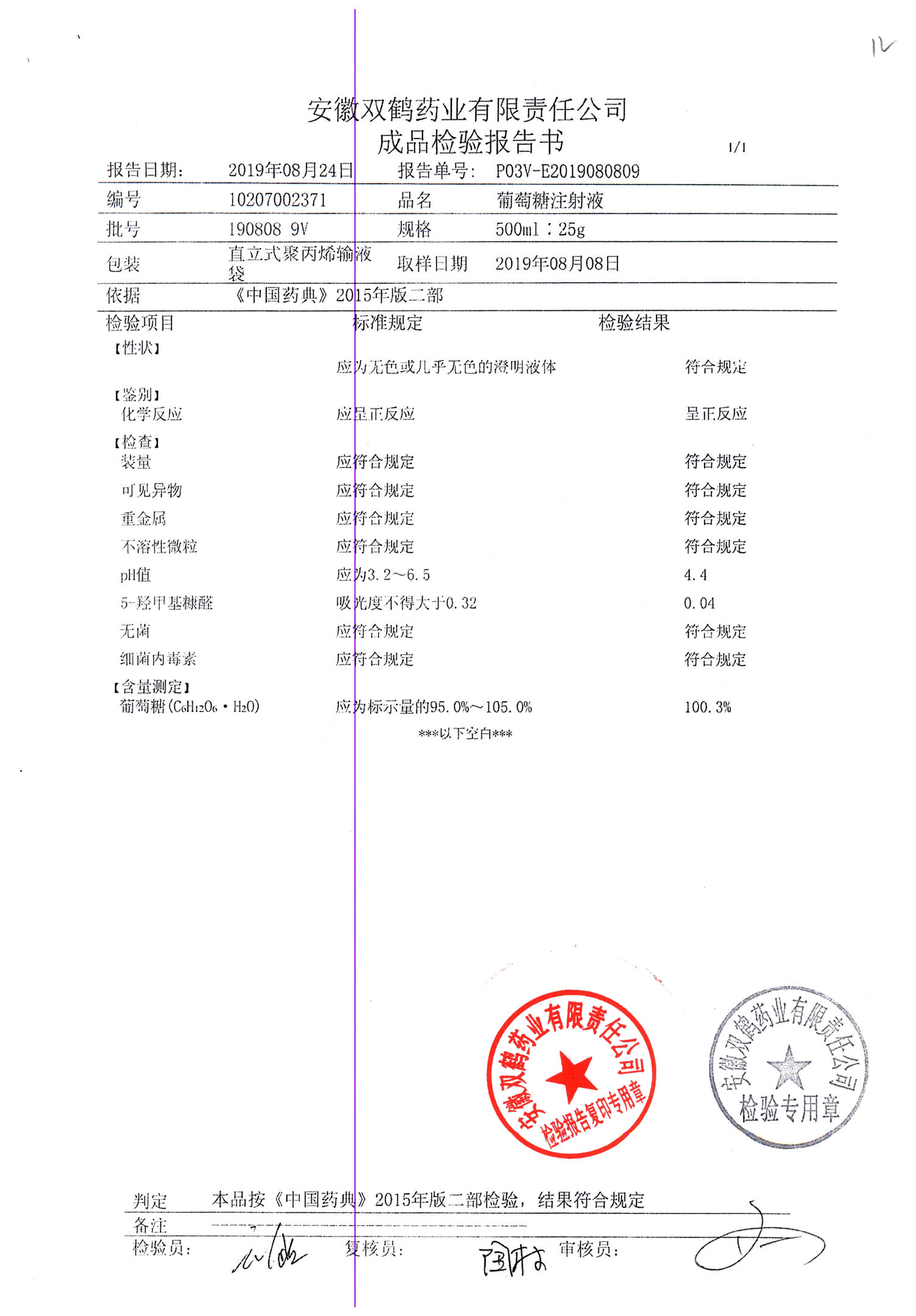 葡萄糖注射液 | 500ml:25g | 190712 7V | 查看详情 |