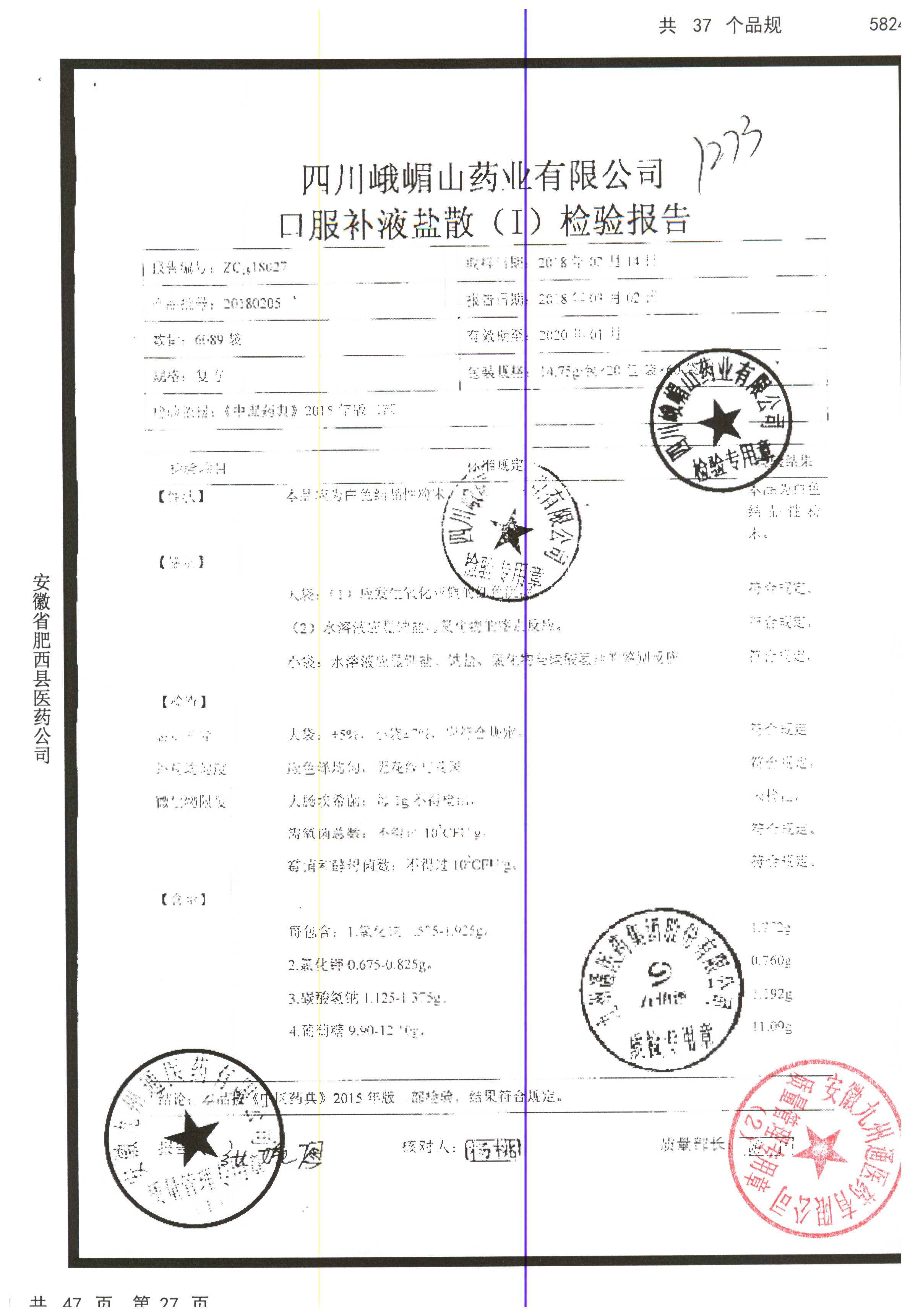 口服补液盐散 | 20包 | 20180205 | 查看详情 |