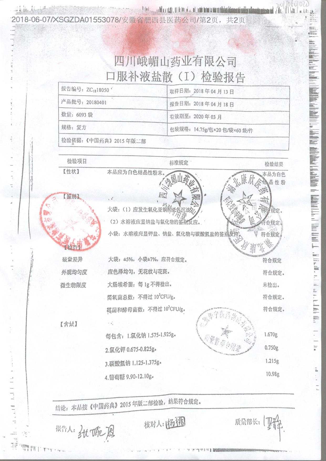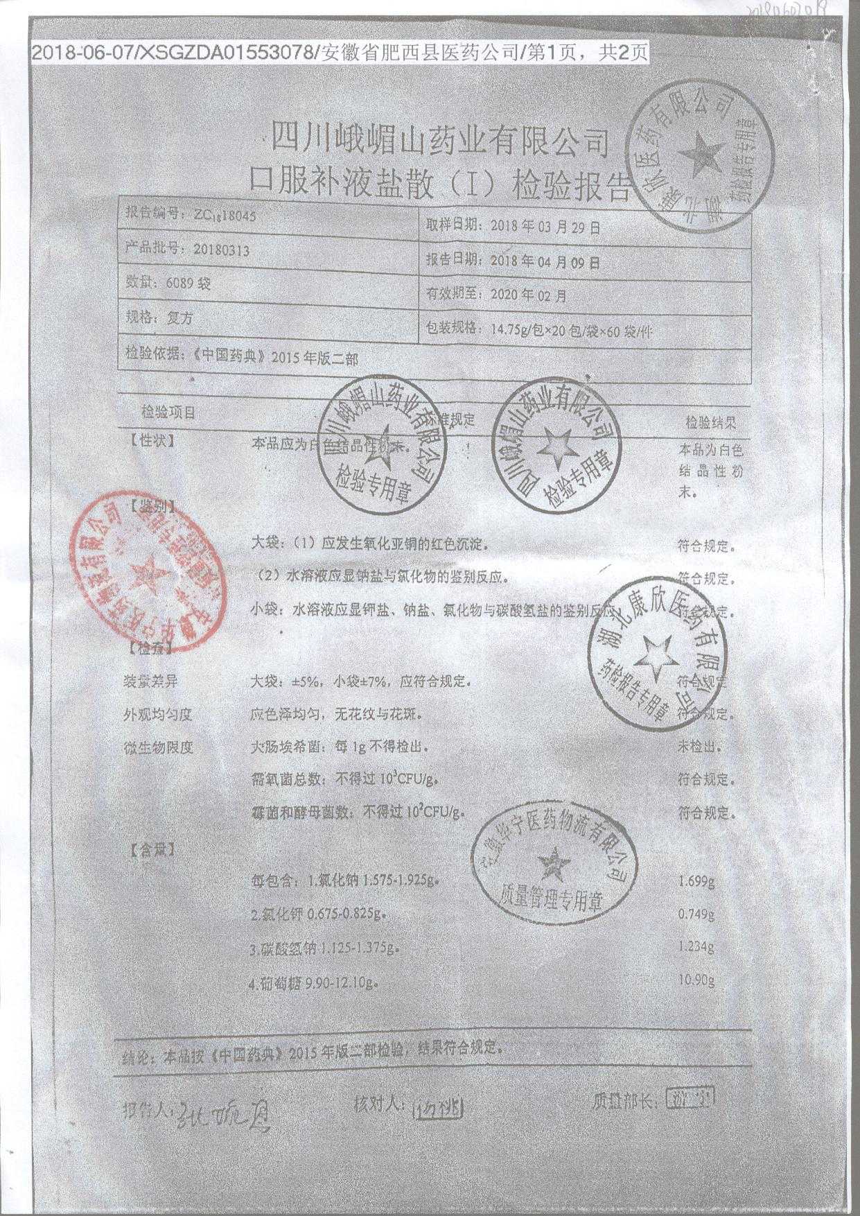 口服补液盐散 | 20包 | 20180401 | 查看详情 |
