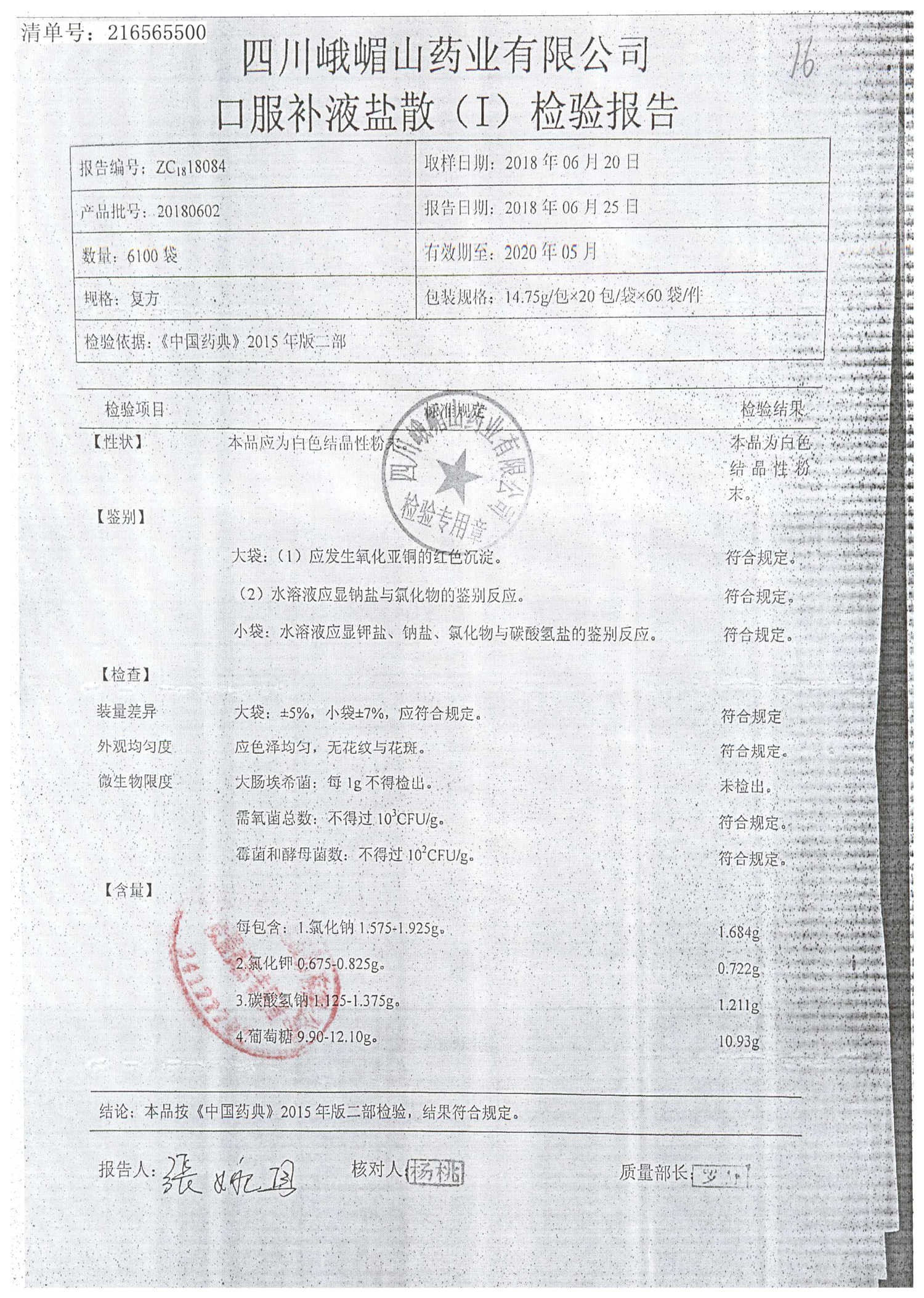 口服补液盐散 | 20包 | 20180602 | 查看详情 |