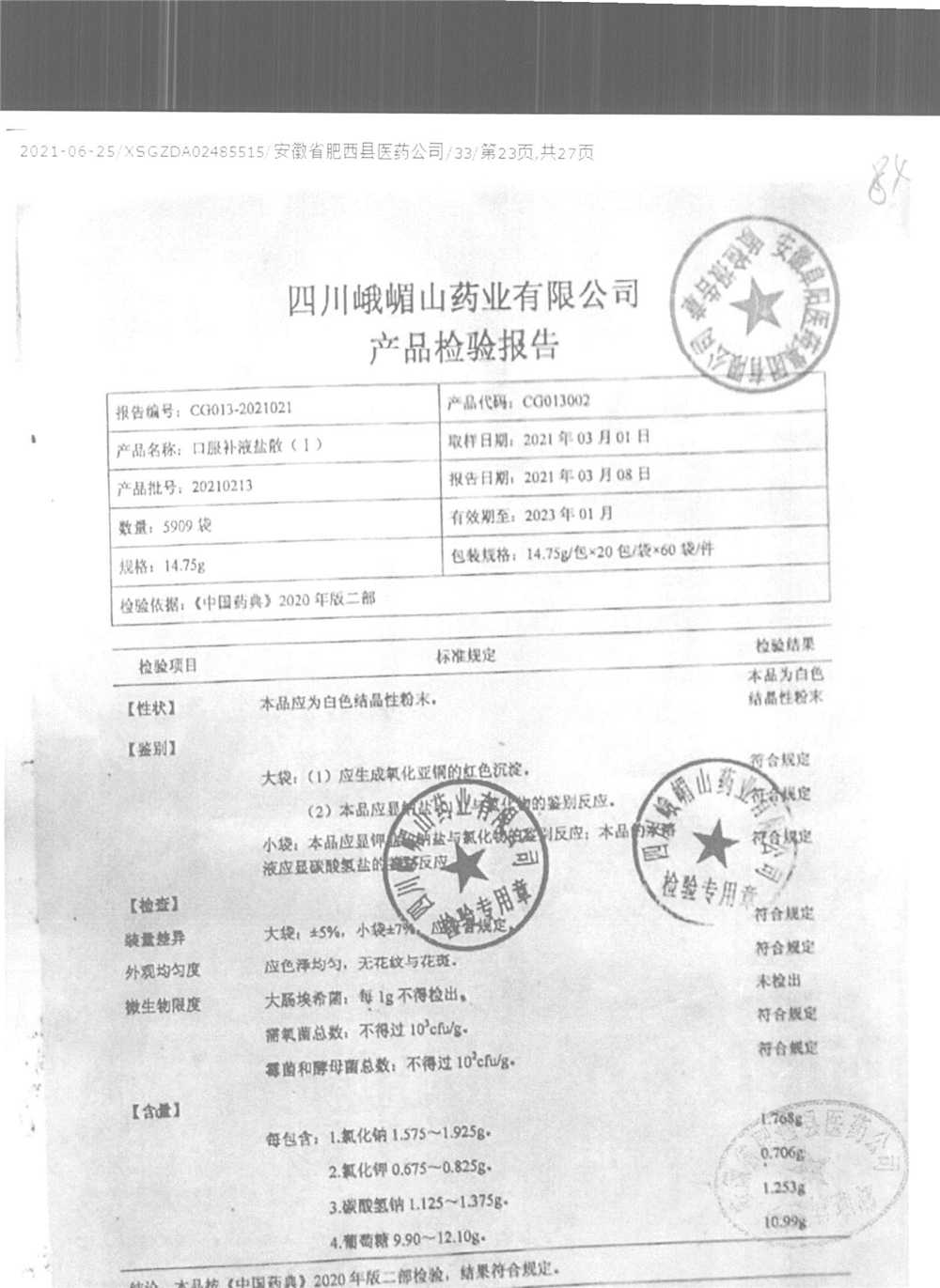 口服补液盐散 | 20包 | 20210213 | 查看详情 |