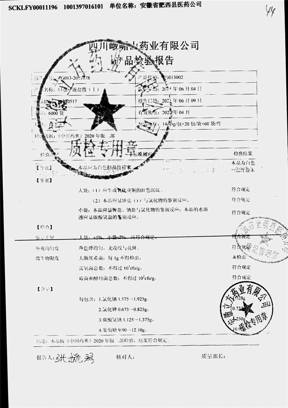 口服补液盐散 | 20包 | 20210516 | 查看详情 |