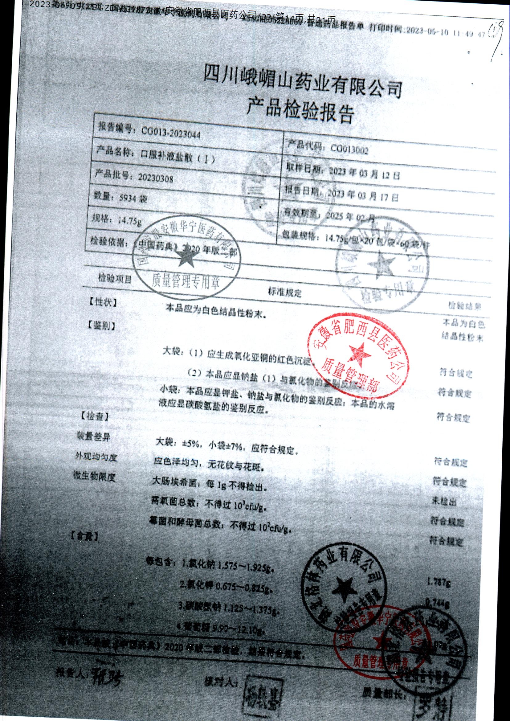 口服补液盐散 | 20包 | 20230308 | 查看详情 |