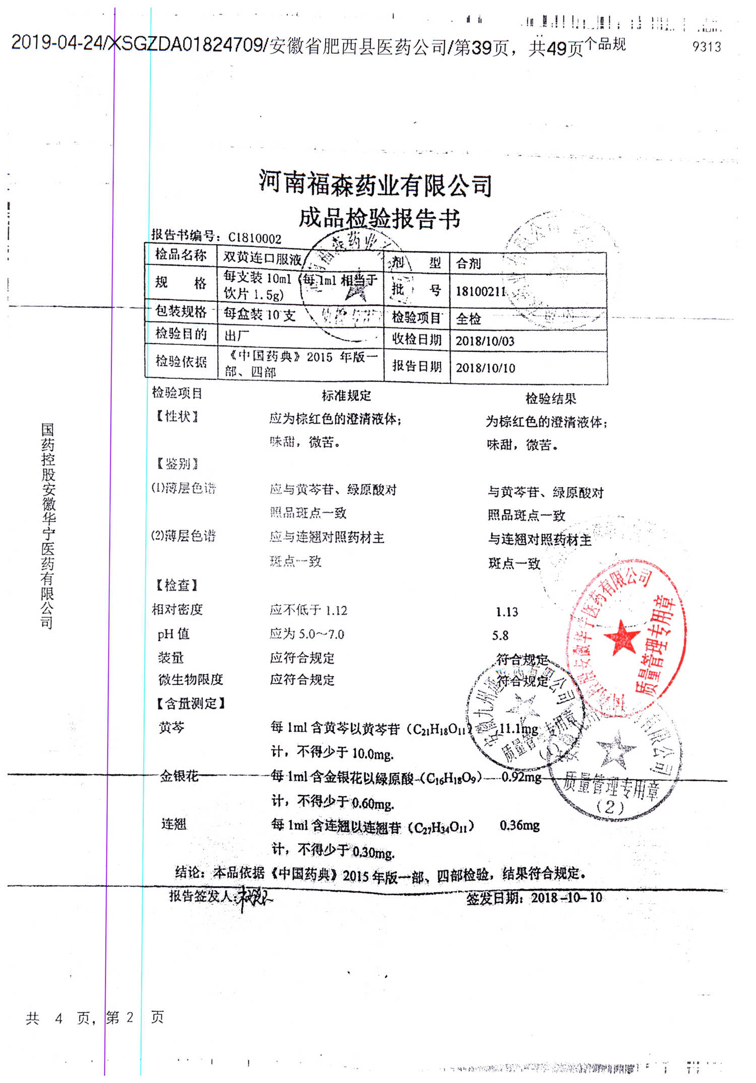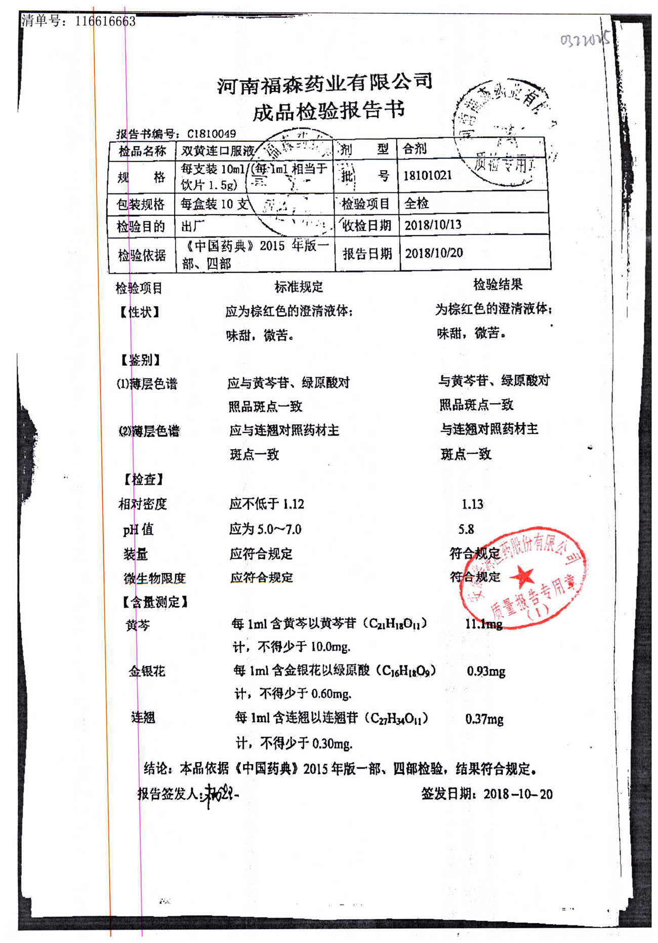 双黄连口服液 | 10ml | 18100211 | 查看详情 |
