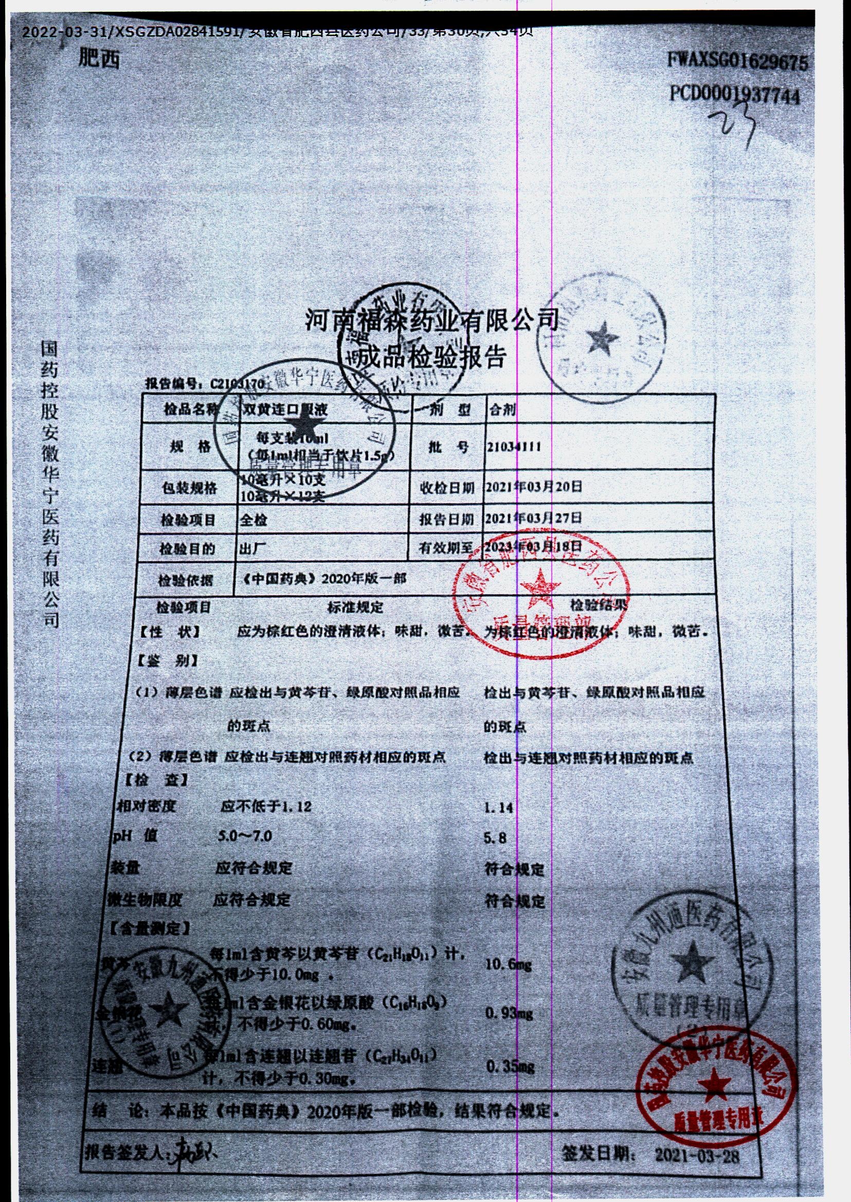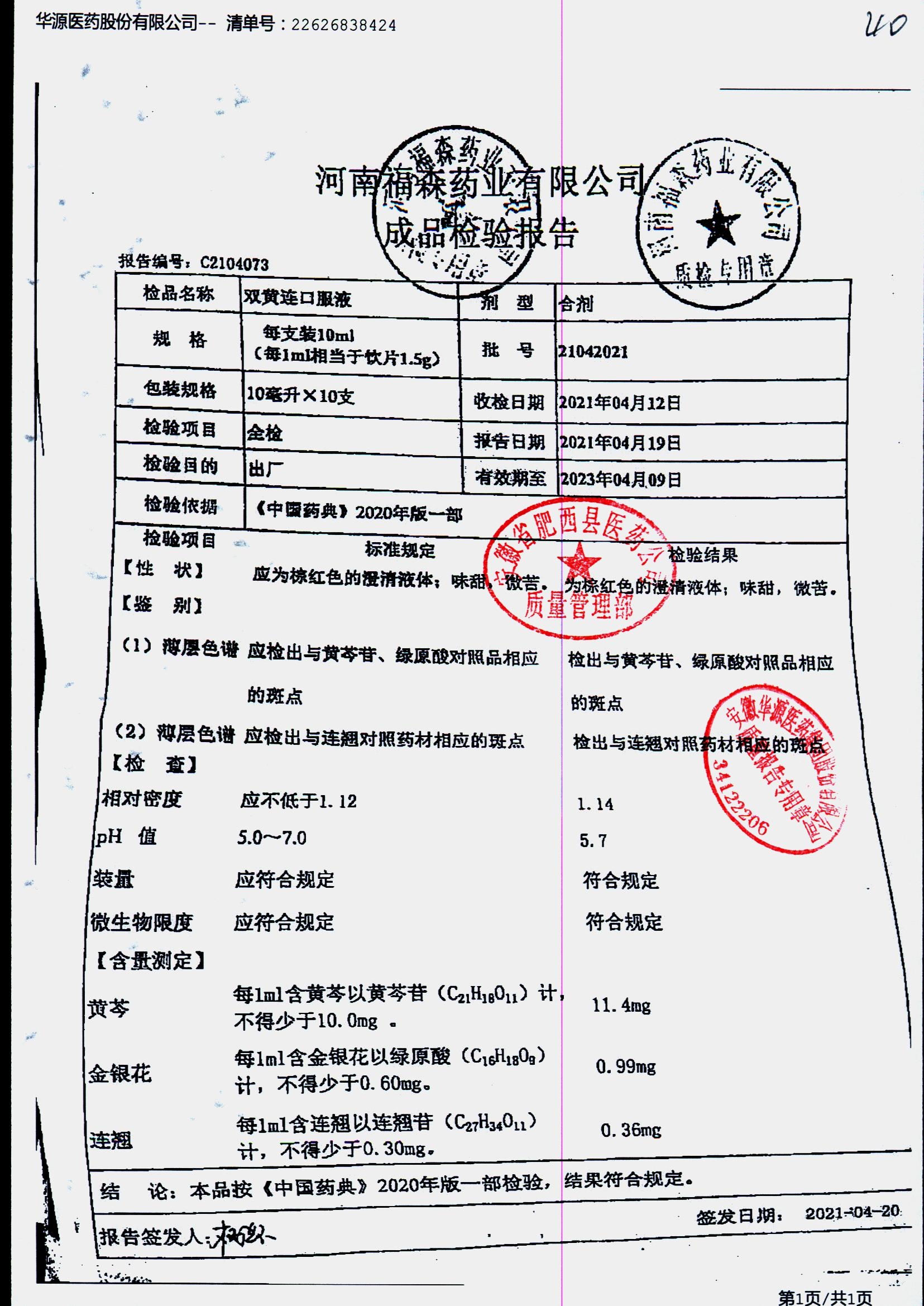 双黄连口服液 | 10ml | 21042021 | 查看详情 |