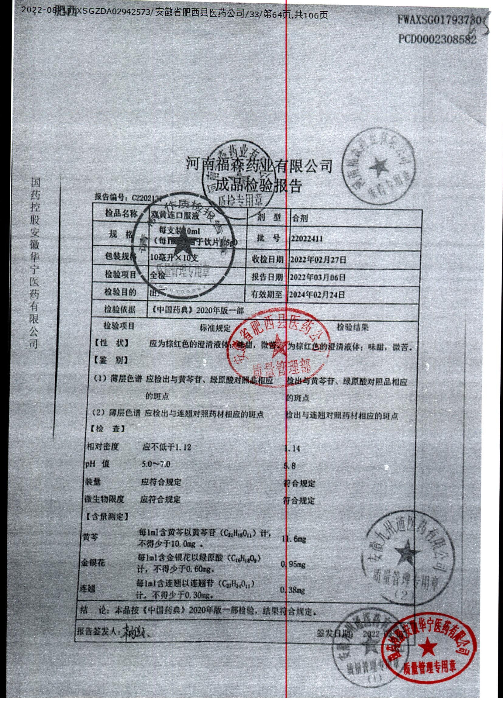 双黄连口服液 | 10ml | 22022411 | 查看详情 |