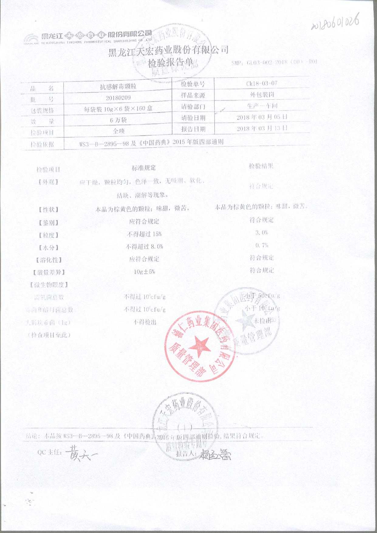 药检报告