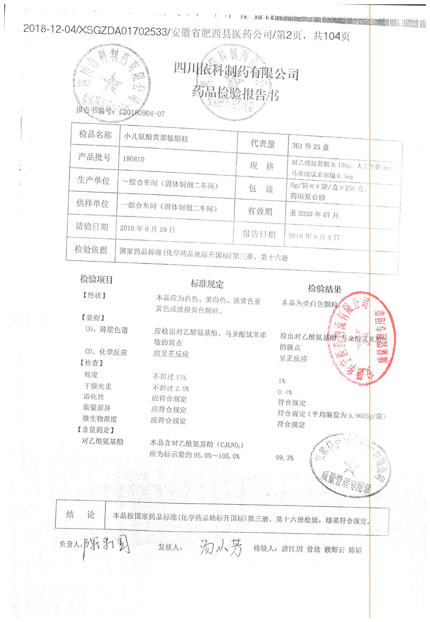 小儿氨酚黄那敏颗粒 | 6g*9袋 | 180810 | 查看详情 |