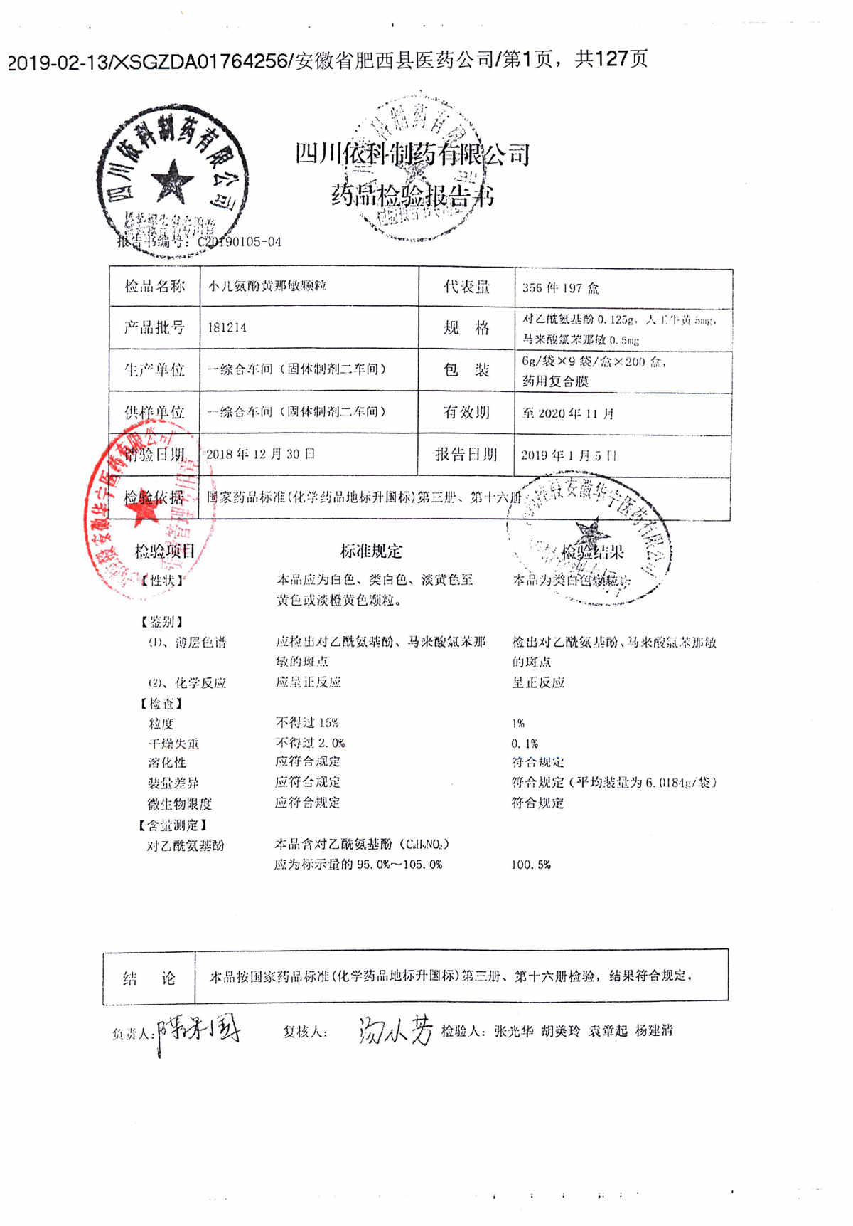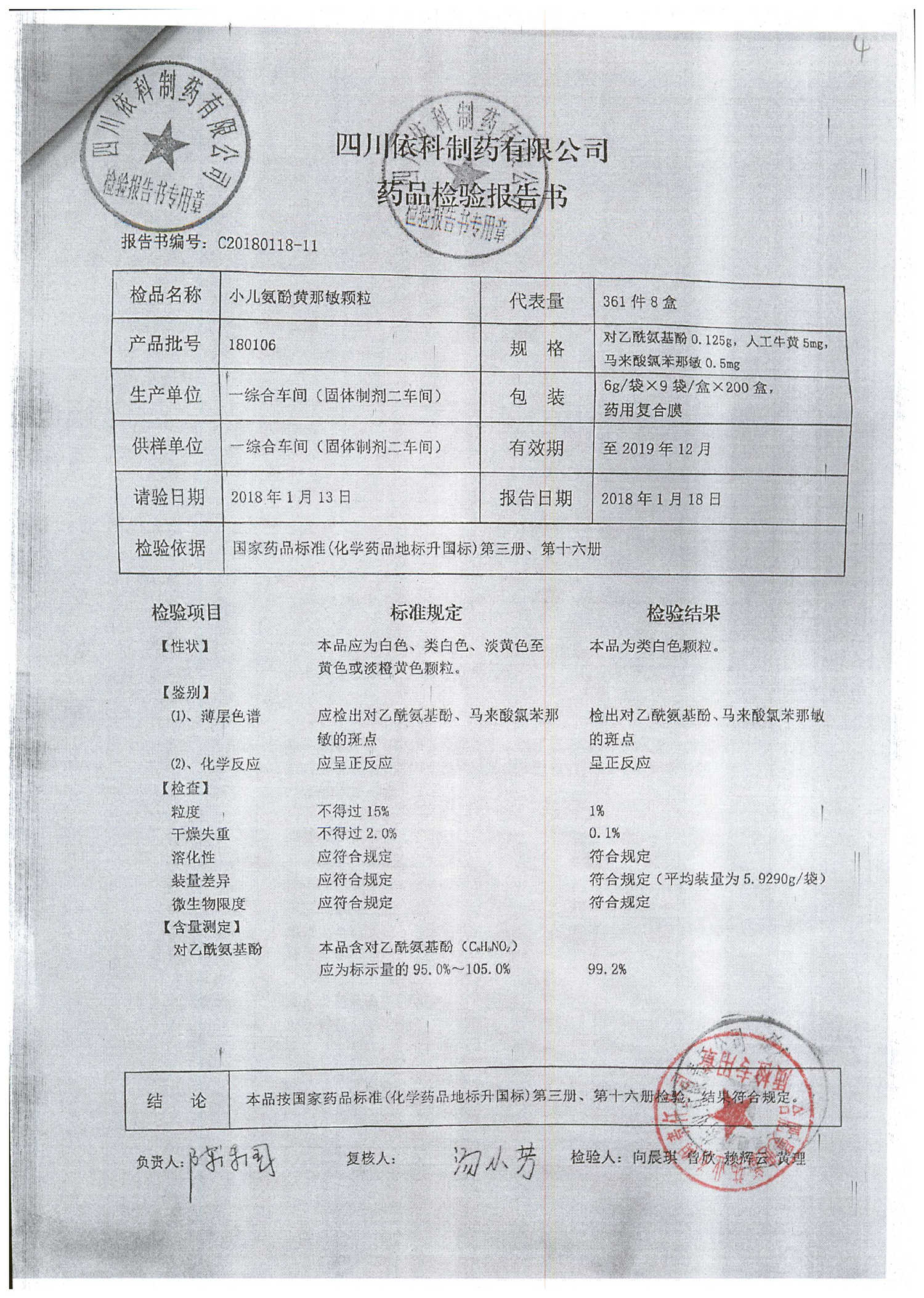 小儿氨酚黄那敏颗粒 | 6g*9袋 | 181214 | 查看详情 |