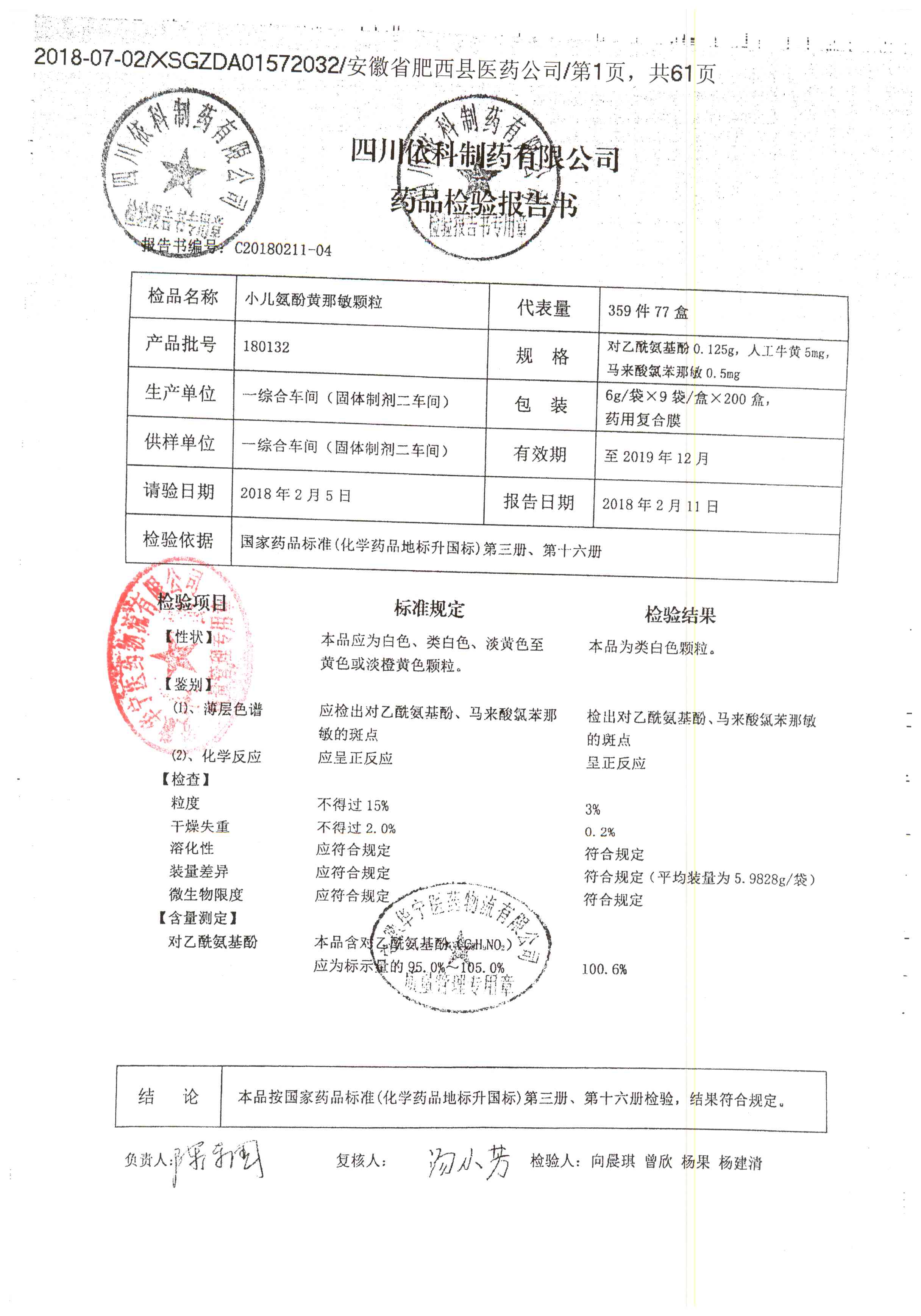 小儿氨酚黄那敏颗粒 | 6g*9袋 | 180132 | 查看详情 |