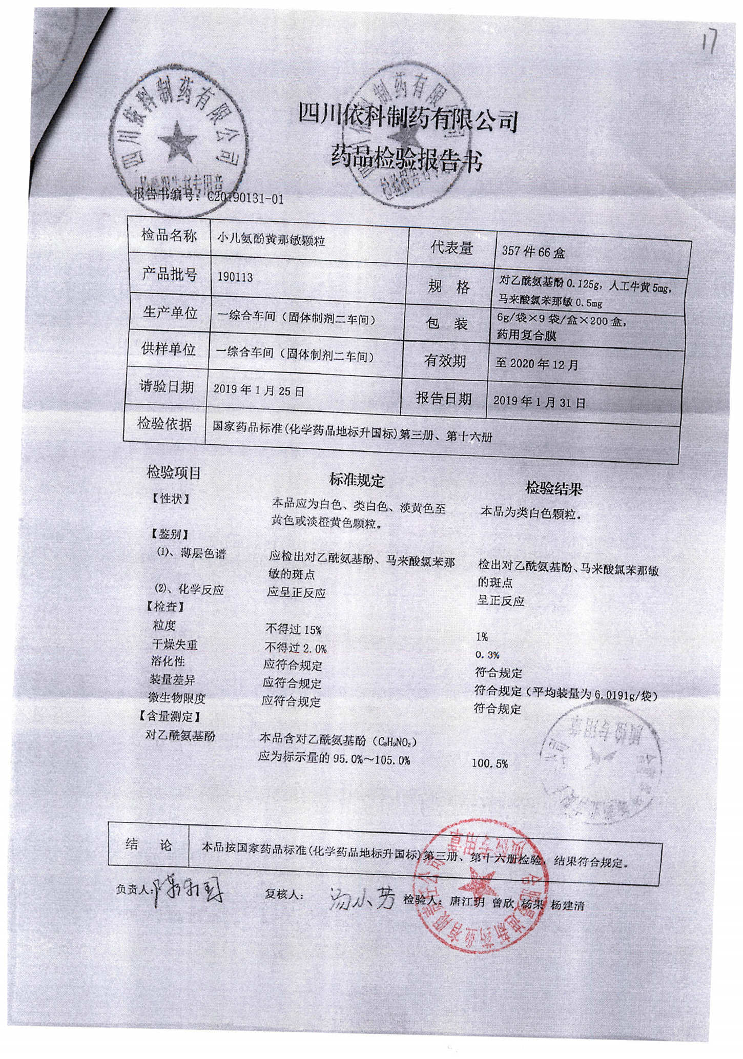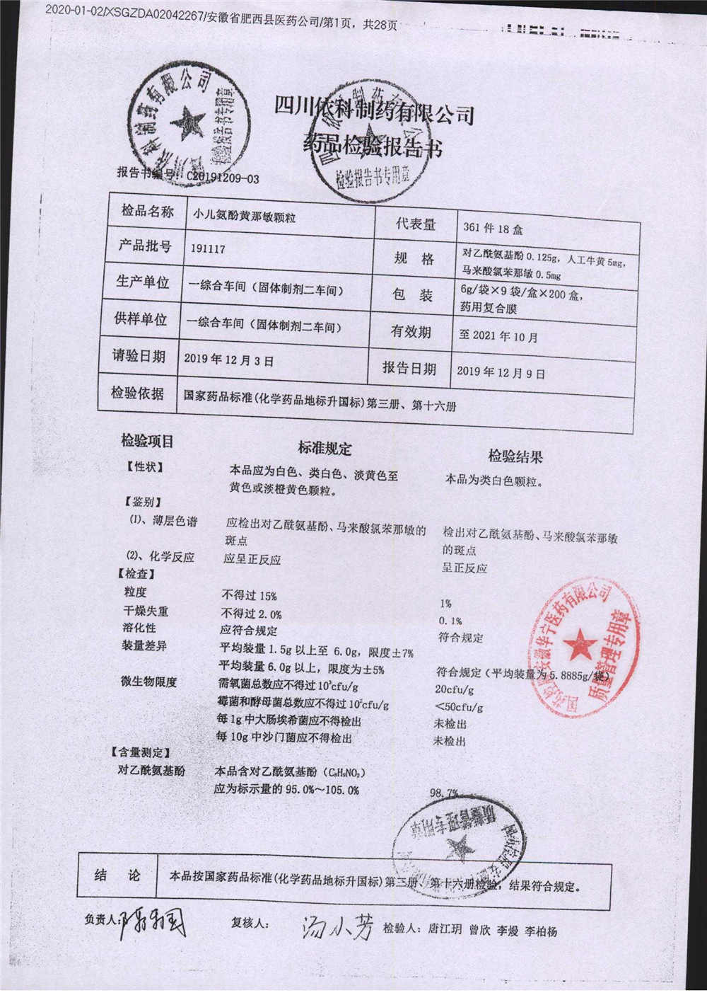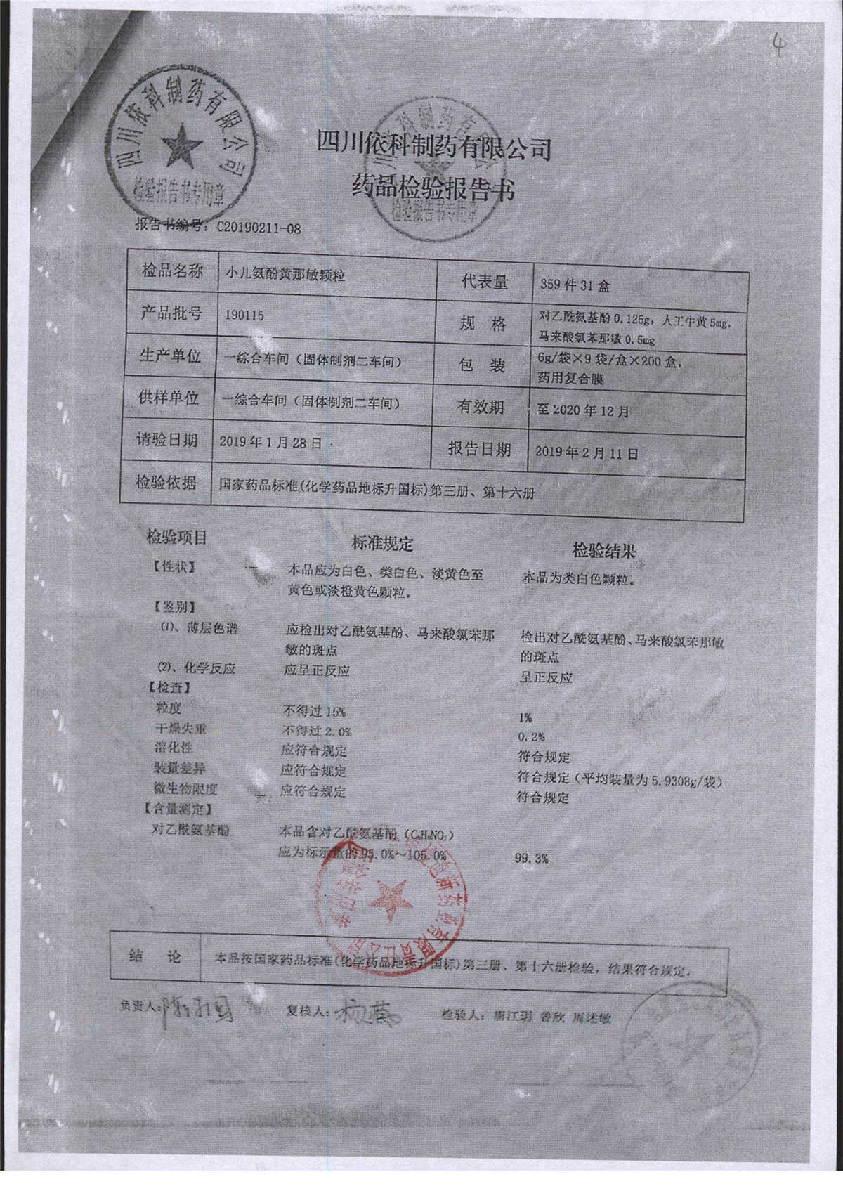 小儿氨酚黄那敏颗粒 | 6g*9袋 | 220501 | 查看详情 |
