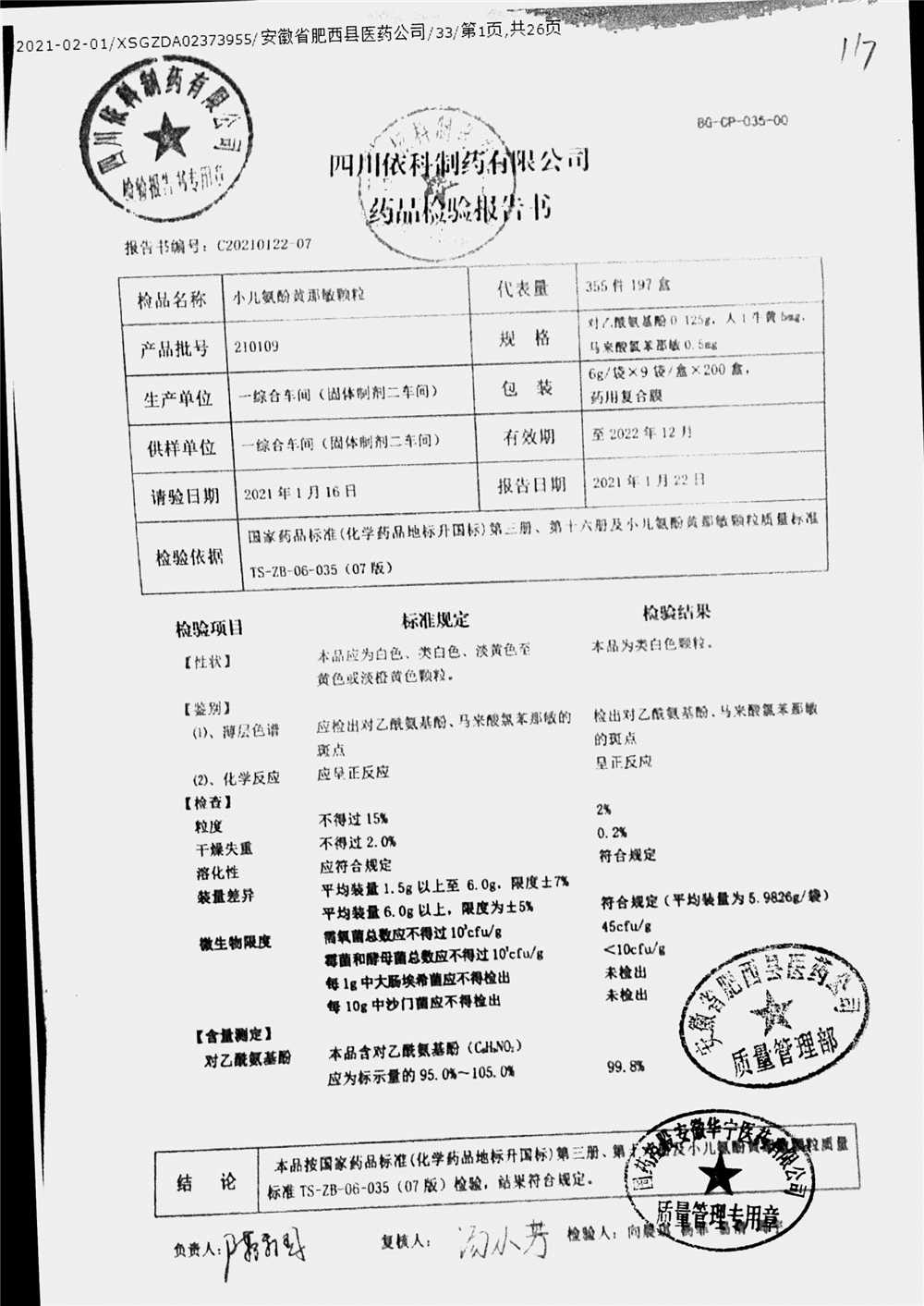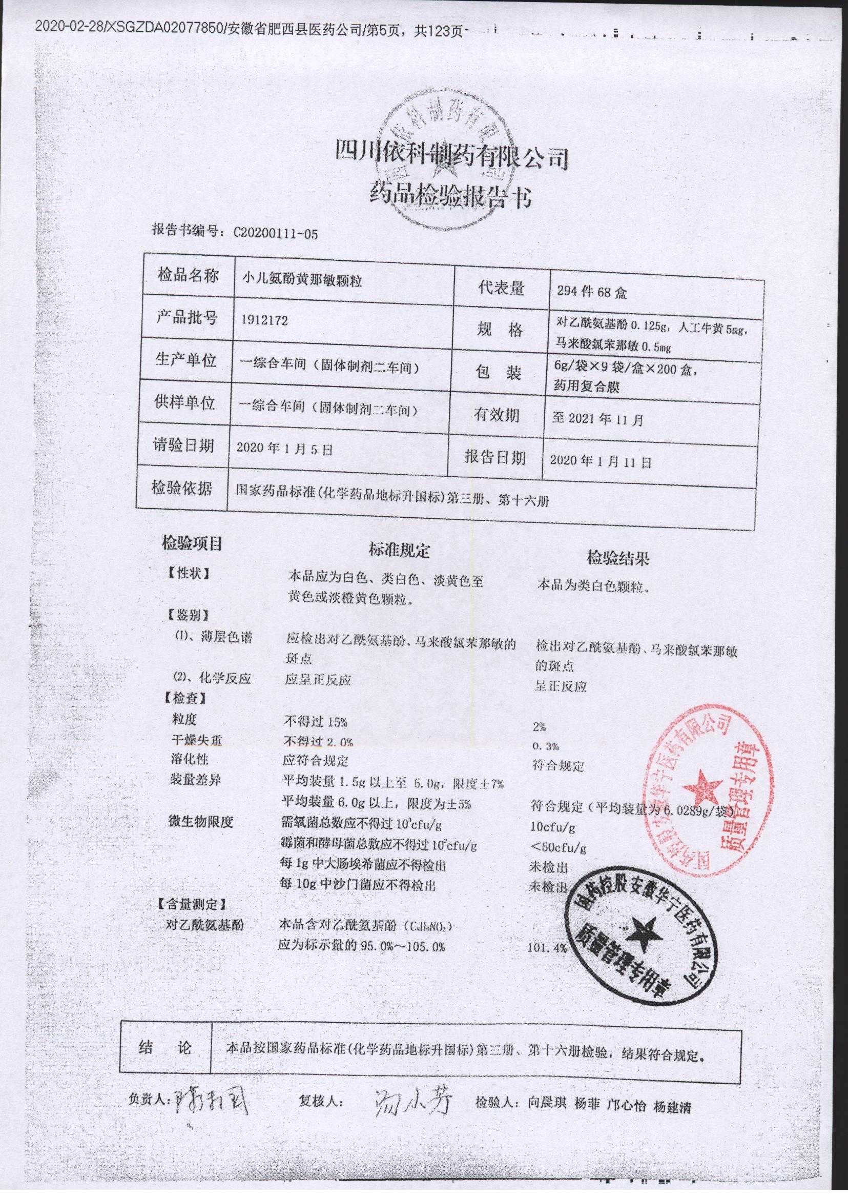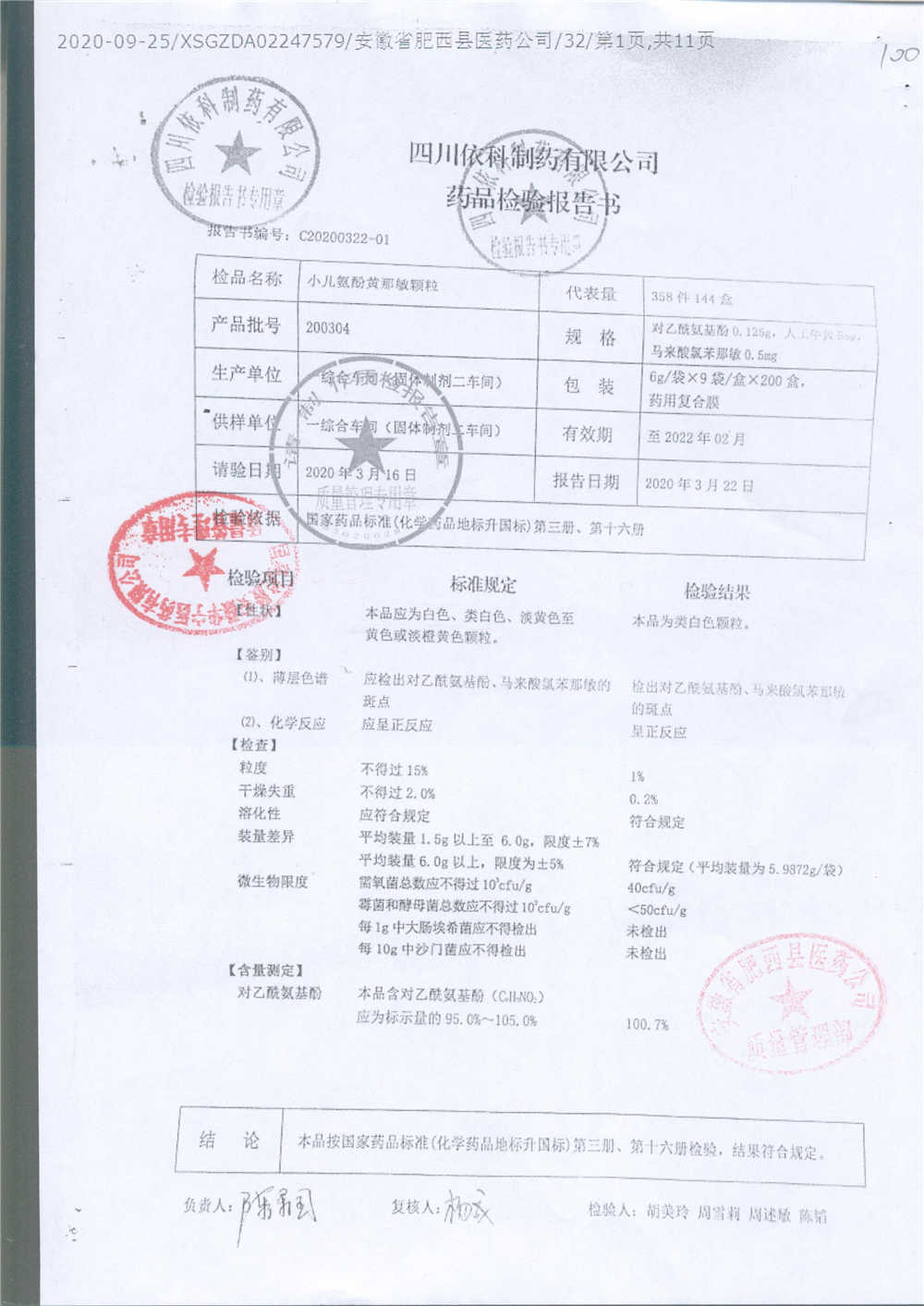 小儿氨酚黄那敏颗粒 | 6g*9袋 | 220501 | 查看详情 |