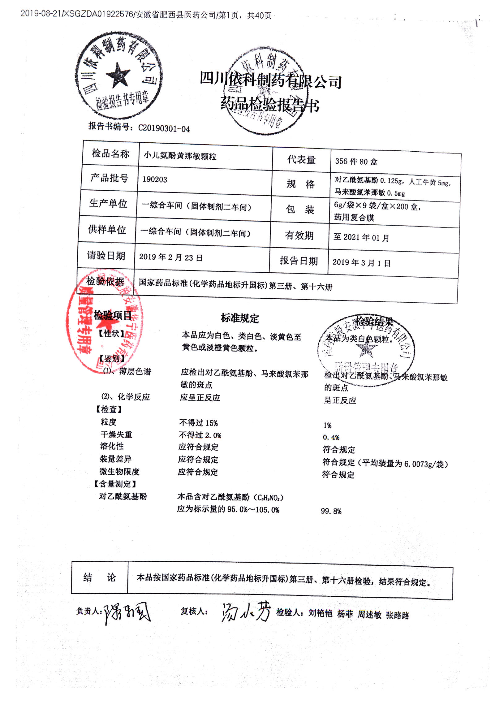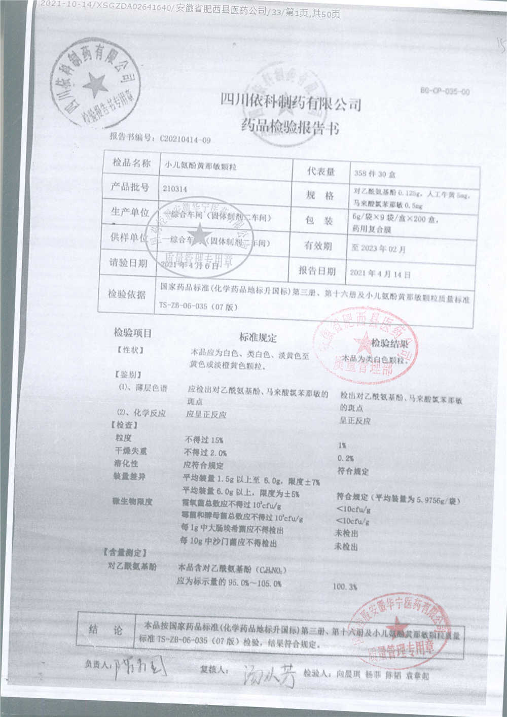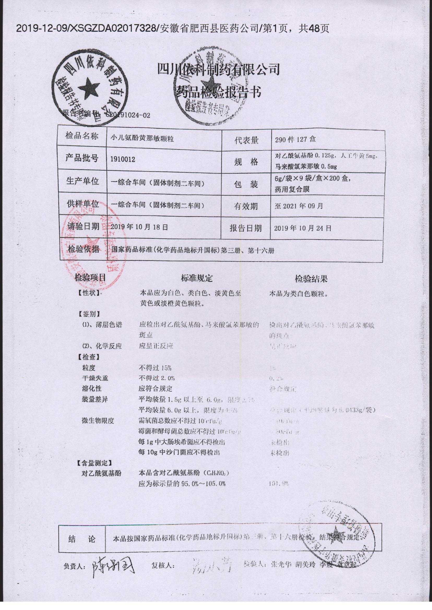 小儿氨酚黄那敏颗粒 | 6g*9袋 | 210314 | 查看详情 |
