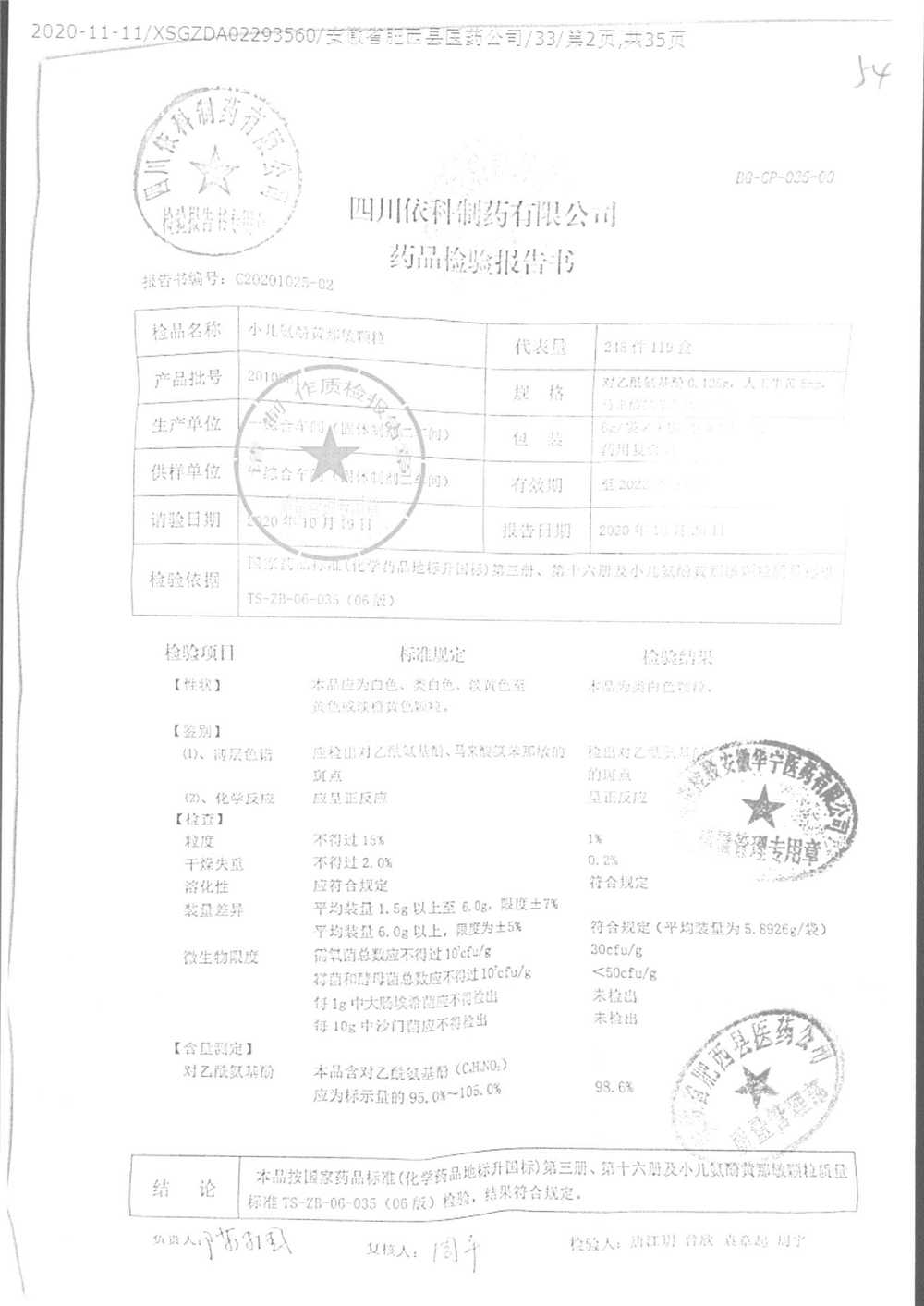 小儿氨酚黄那敏颗粒 | 6g*9袋 | 210109 | 查看详情 |