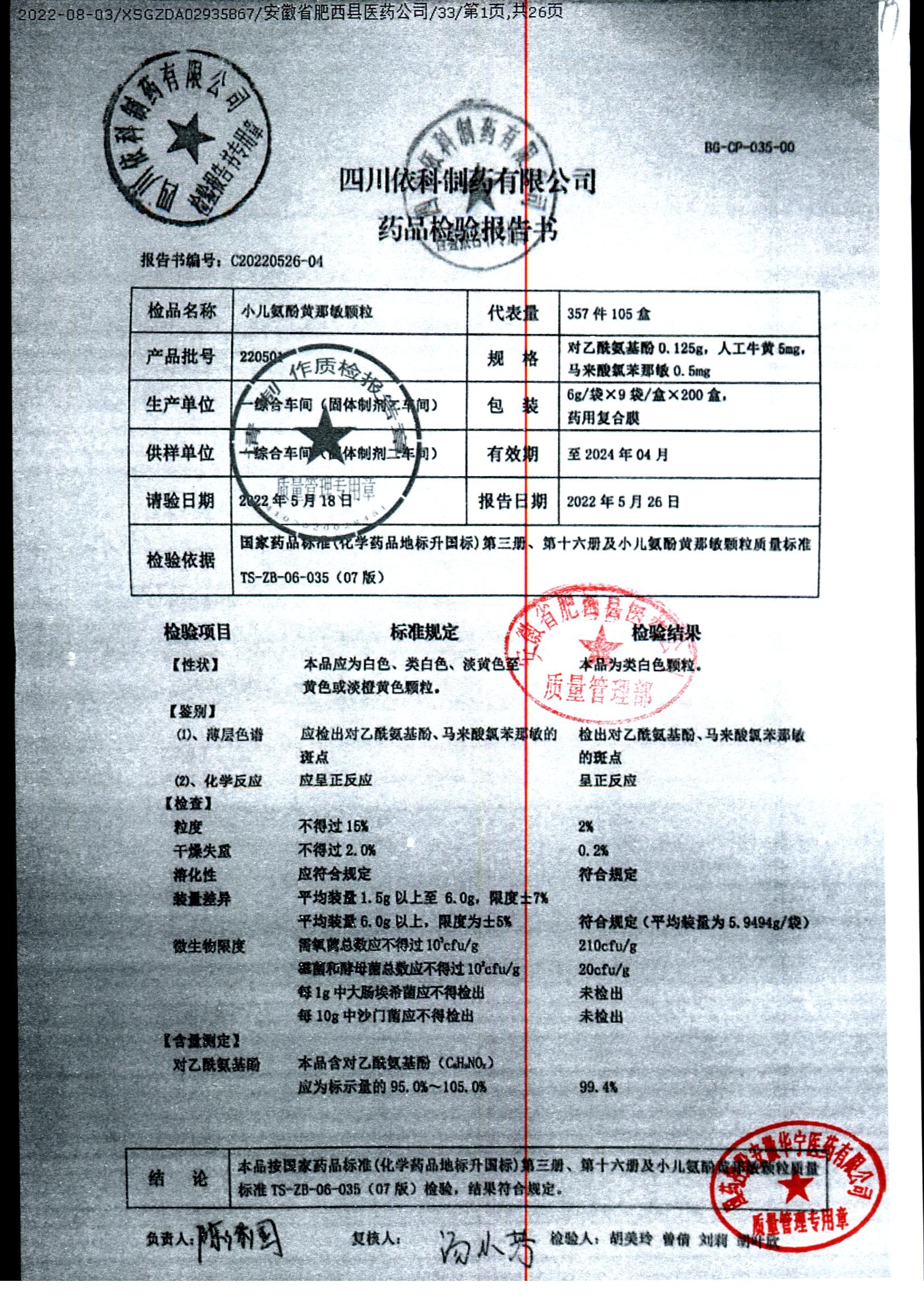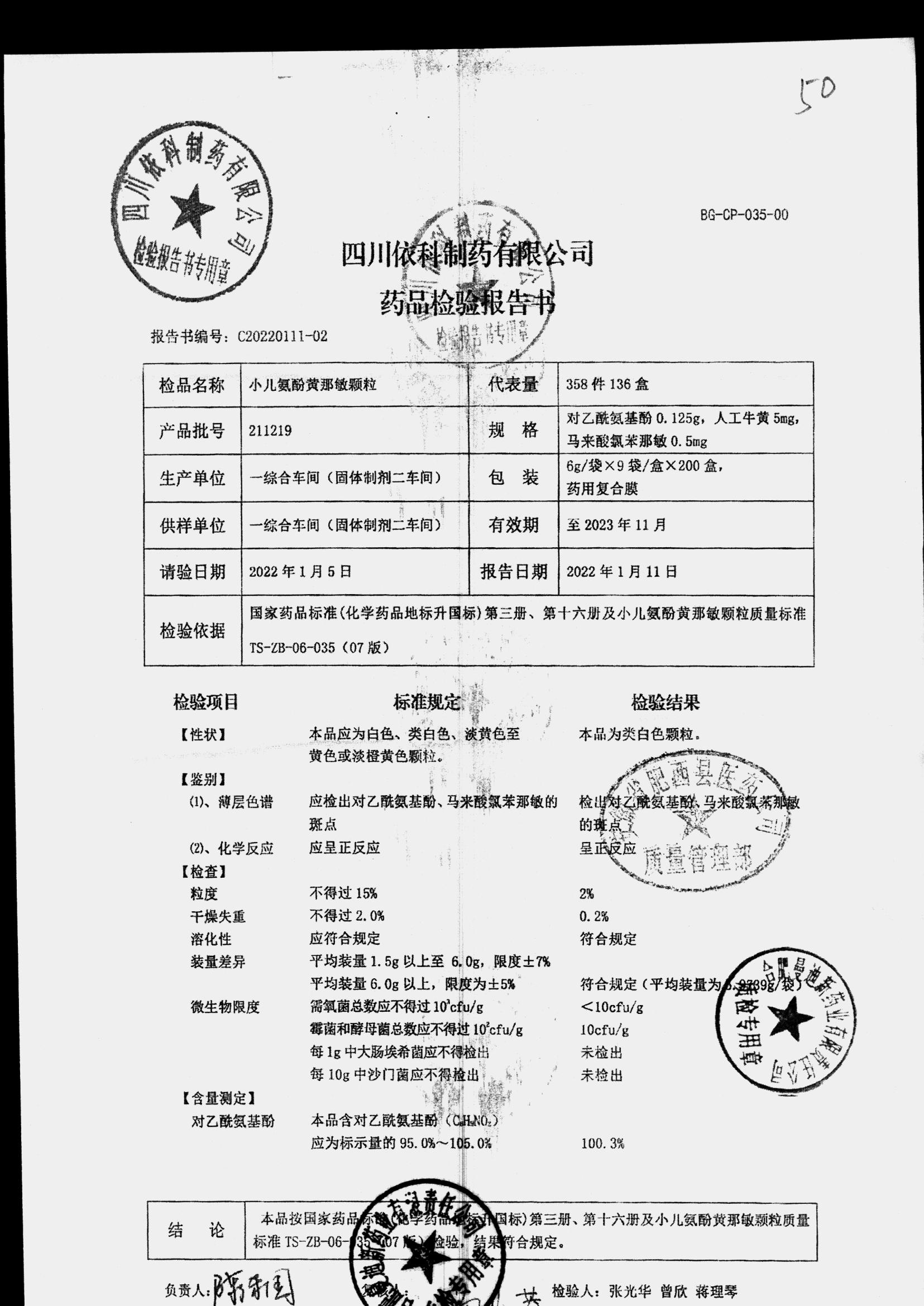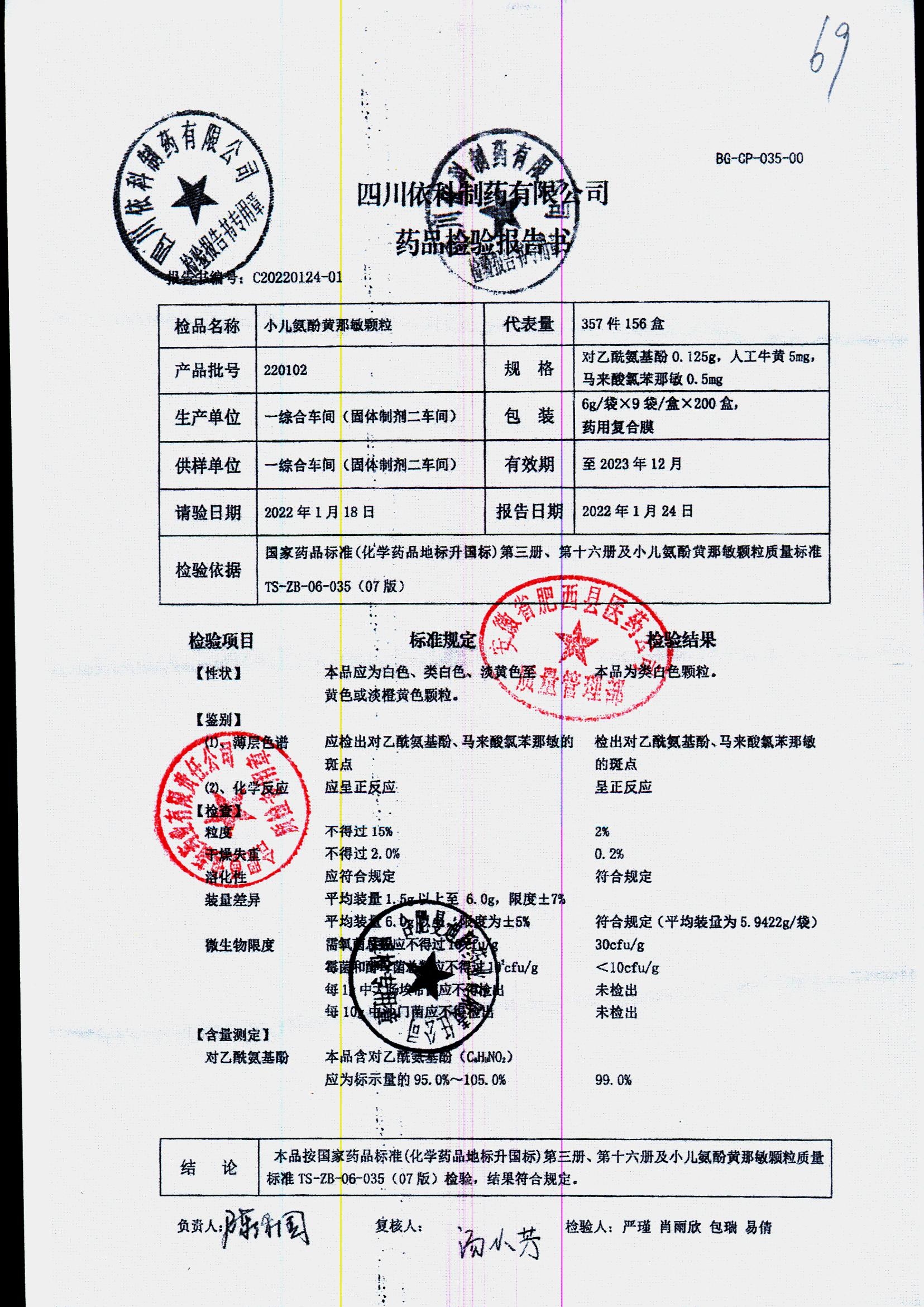 小儿氨酚黄那敏颗粒 | 6g*9袋 | 220604 | 查看详情 |