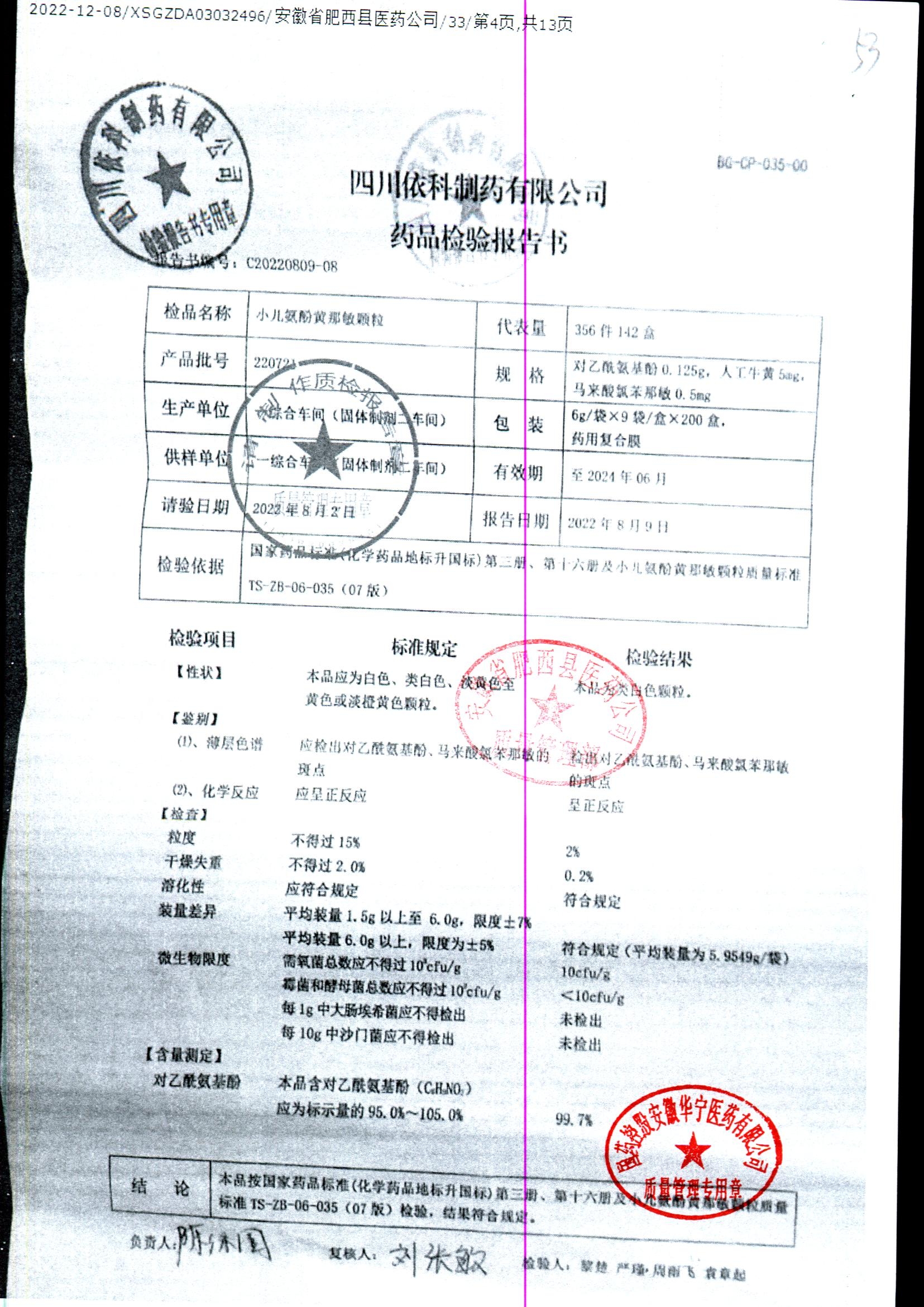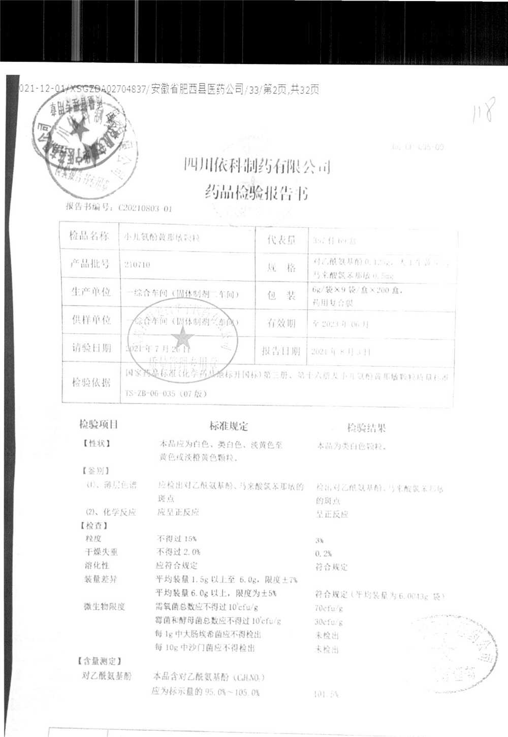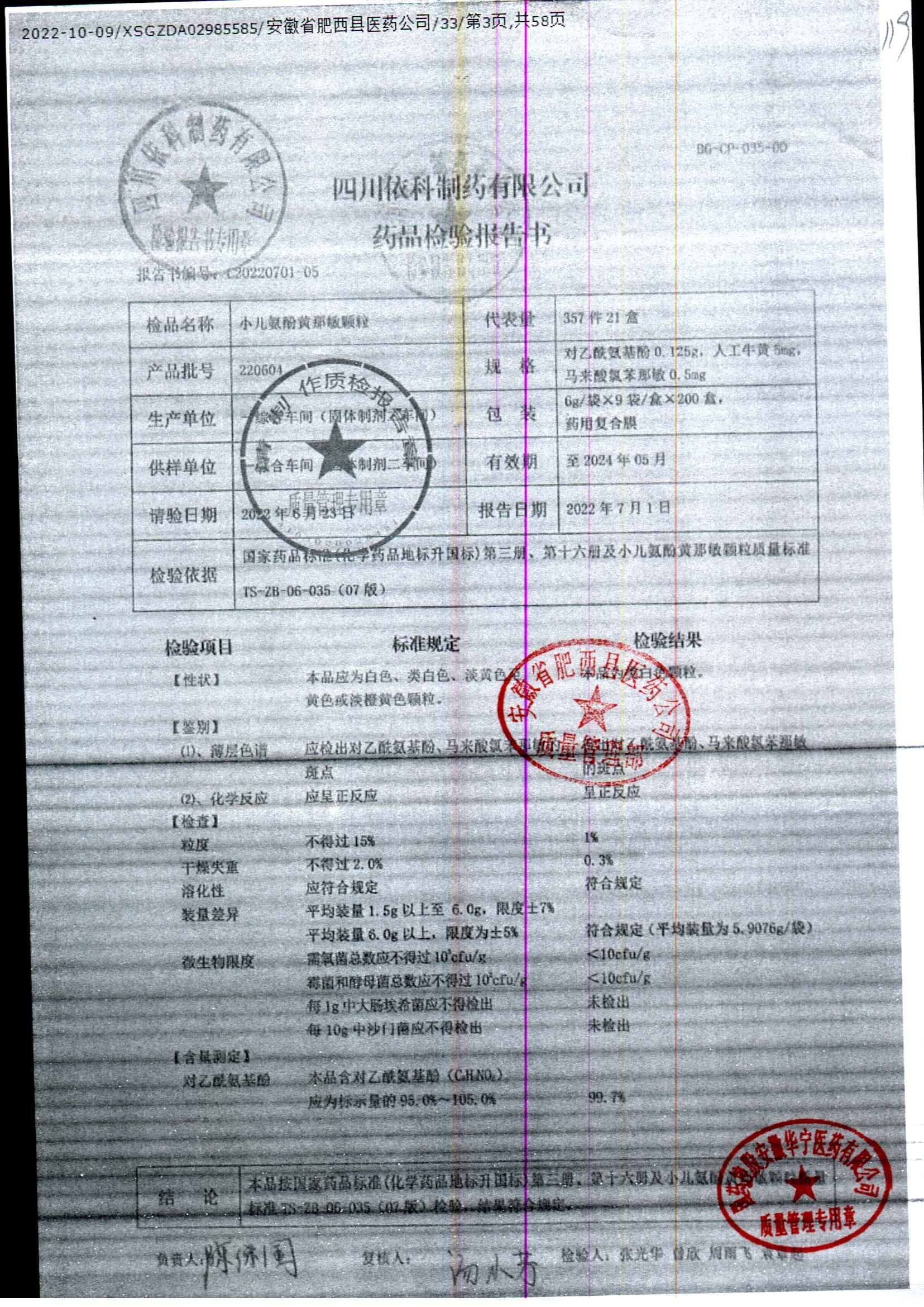 小儿氨酚黄那敏颗粒 | 6g*9袋 | 220604 | 查看详情 |