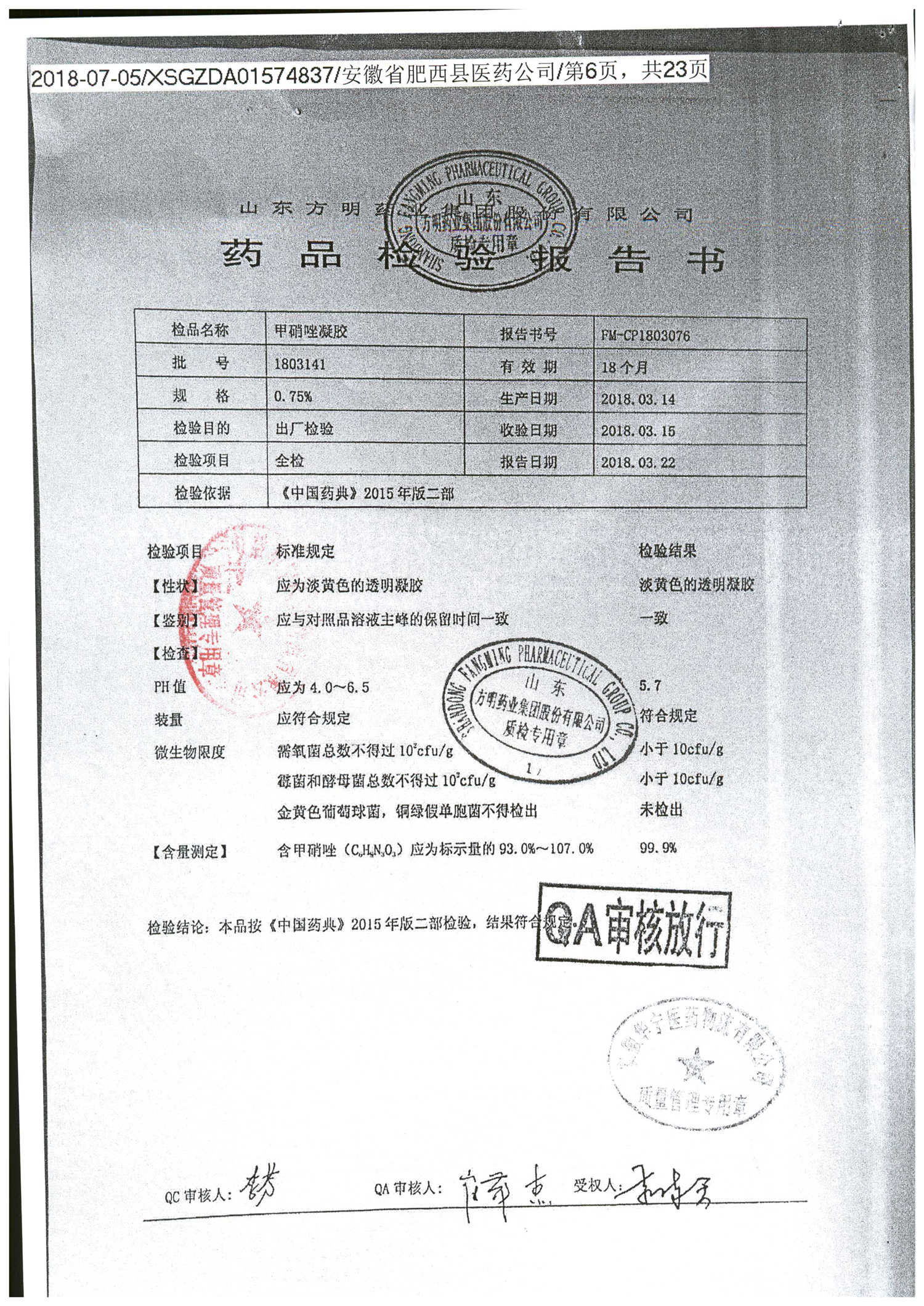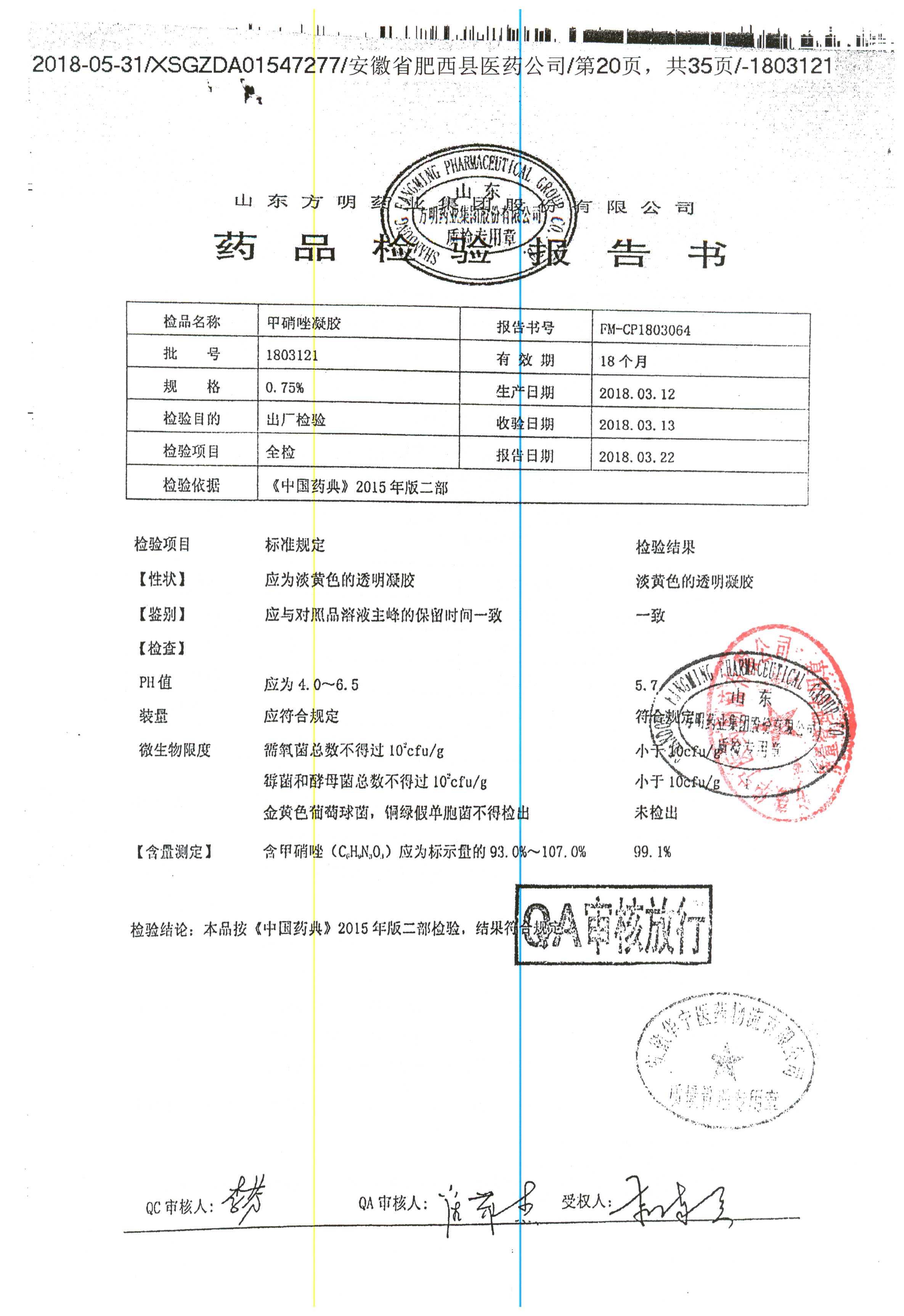 甲硝唑凝胶 | 0.75% | 2011022 | 查看详情 |