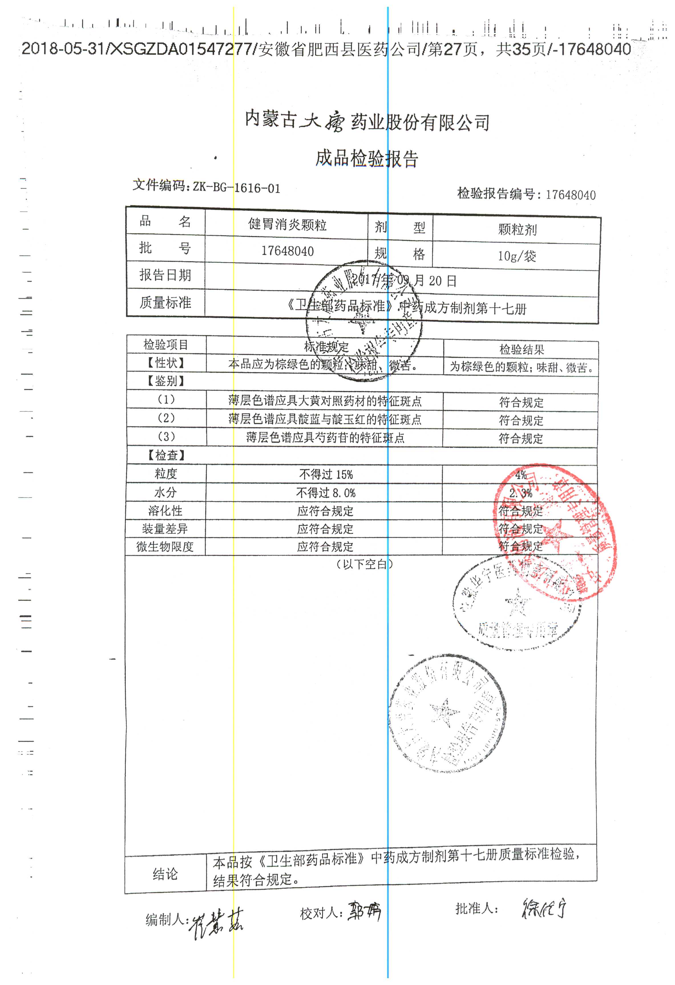 药检报告
