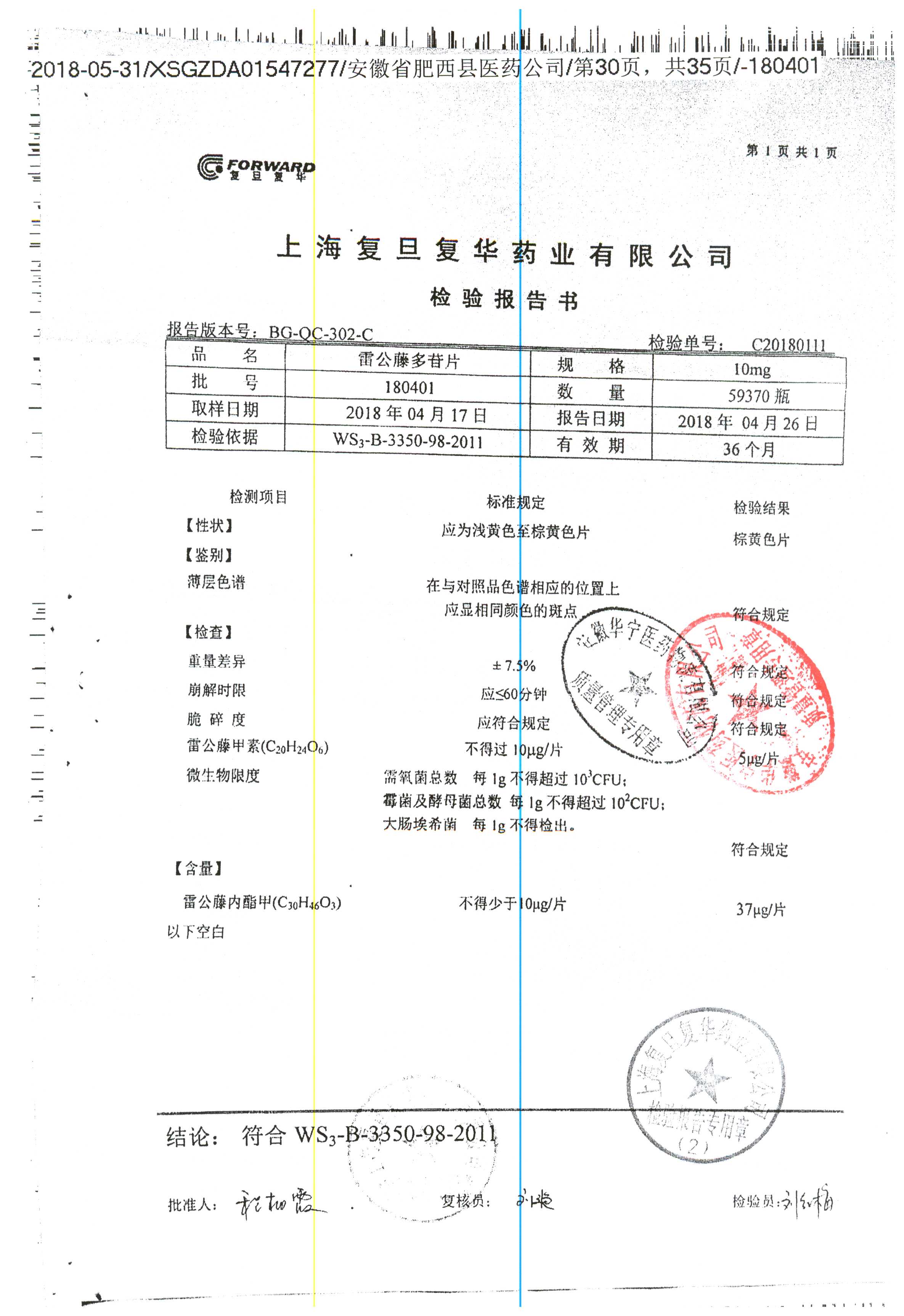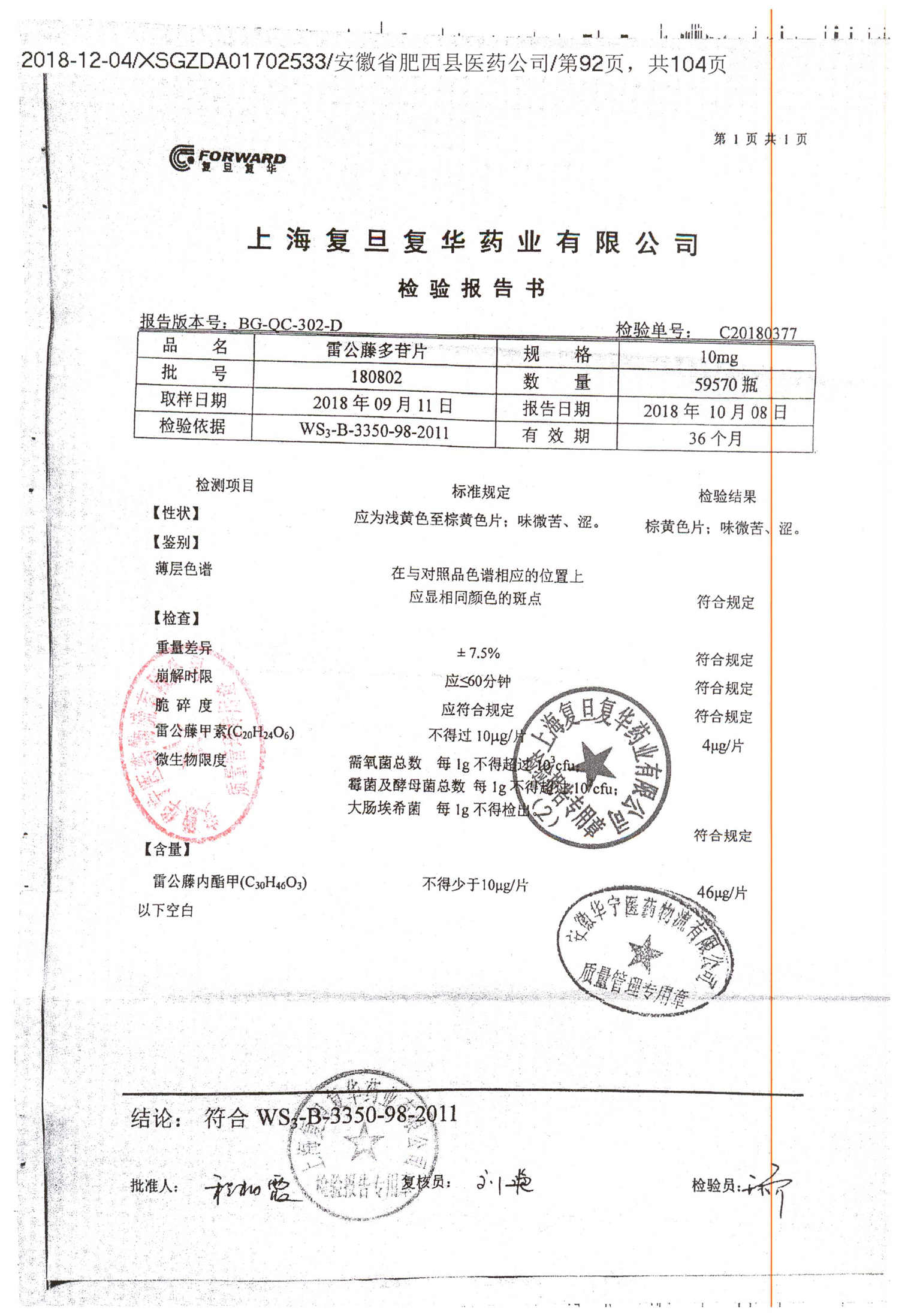 雷公藤多苷片 | 10mg | 180401 | 查看详情 |