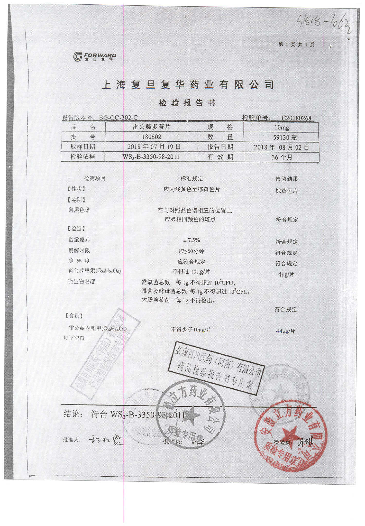 雷公藤多苷片 | 10mg | 180602 | 查看详情 |