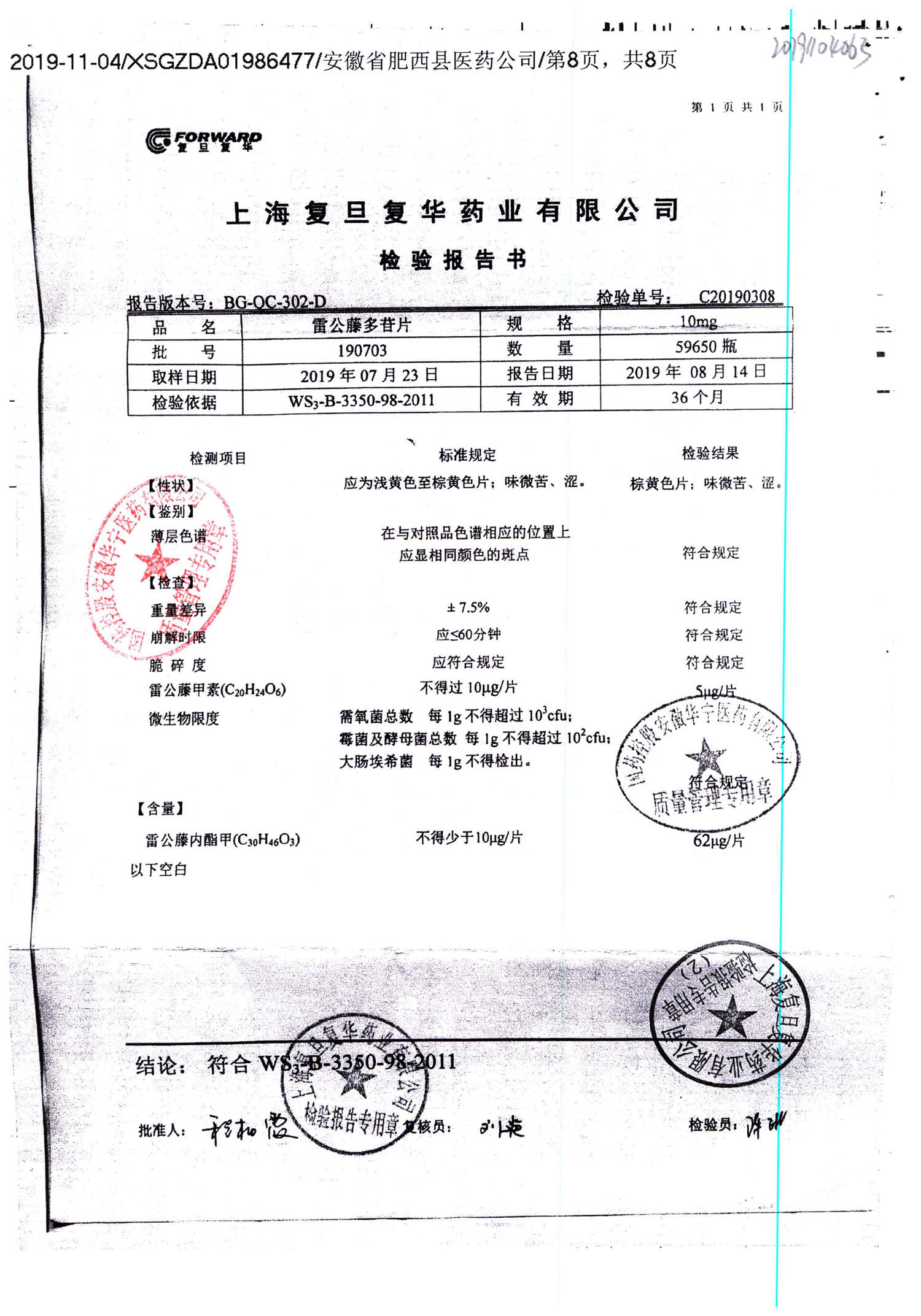 雷公藤多苷片 | 10mg | 190703 | 查看详情 |