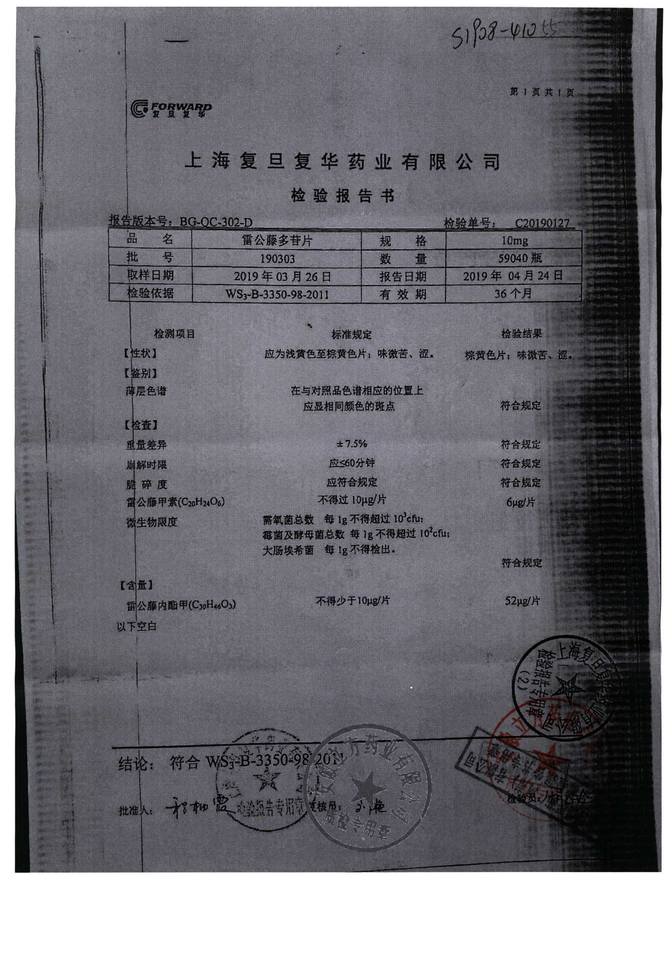 雷公藤多苷片 | 10mg | 190303 | 查看详情 |