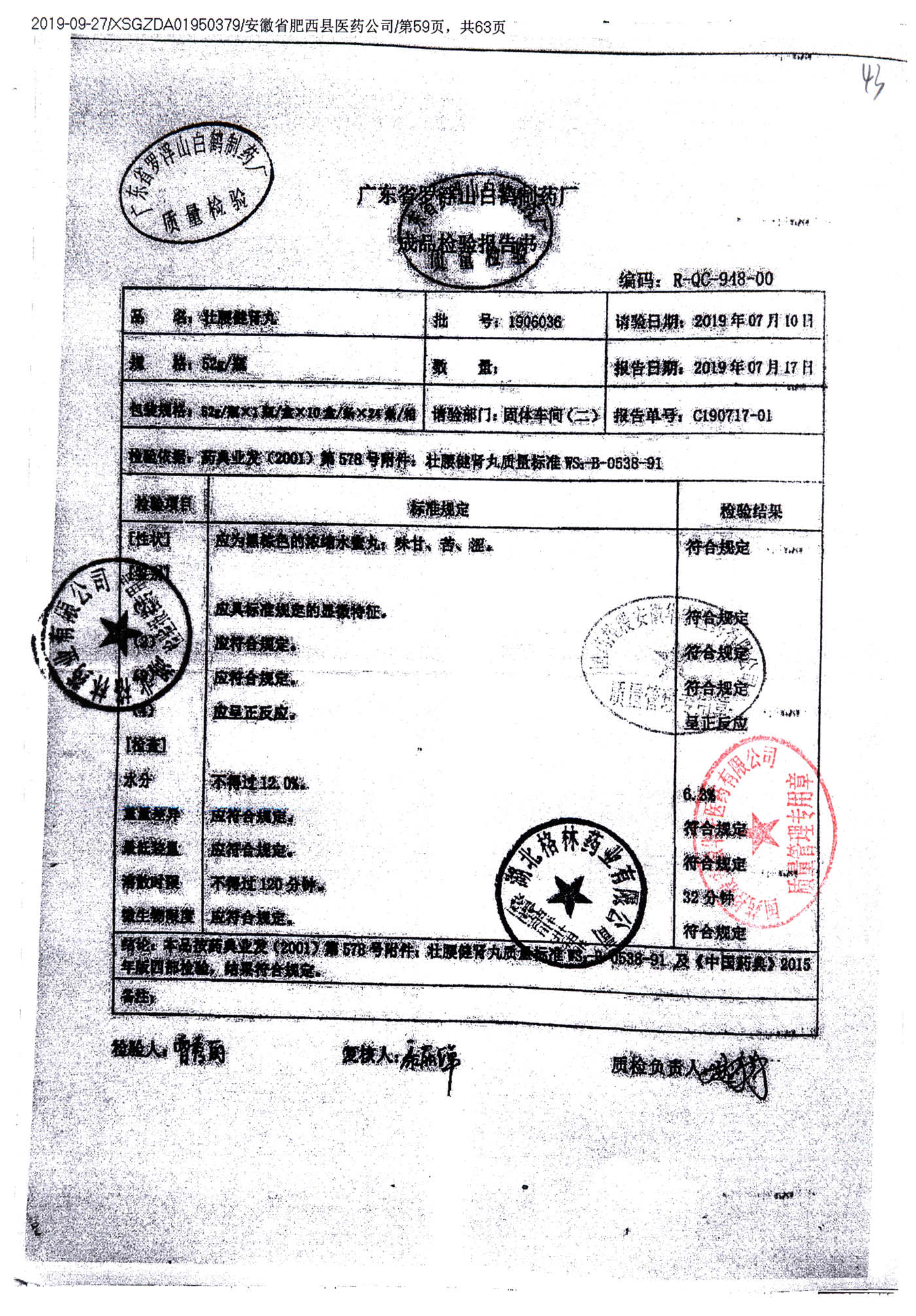 名称 | 规格 | 批号 | 药检报告 |