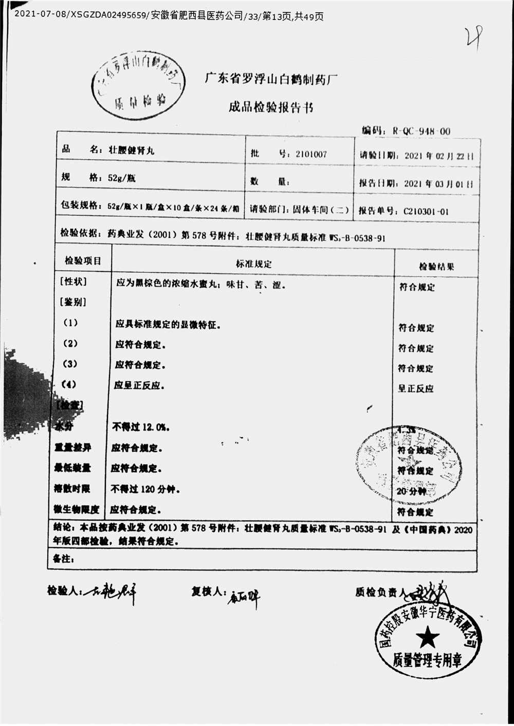 壮腰健肾丸 | 52g | 2105035 | 查看详情 |