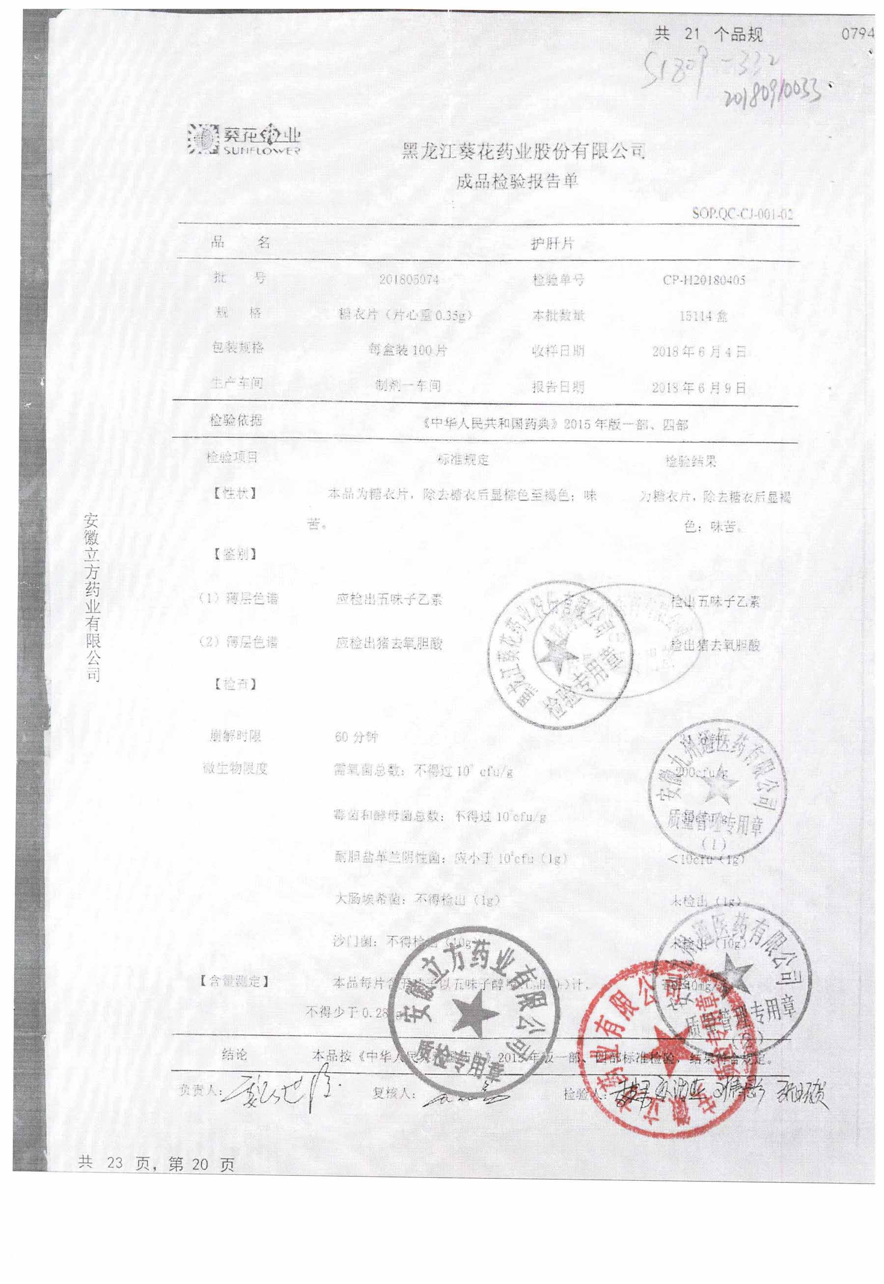 护肝片 | 0.35g*100片 | 201812182 | 查看详情 |