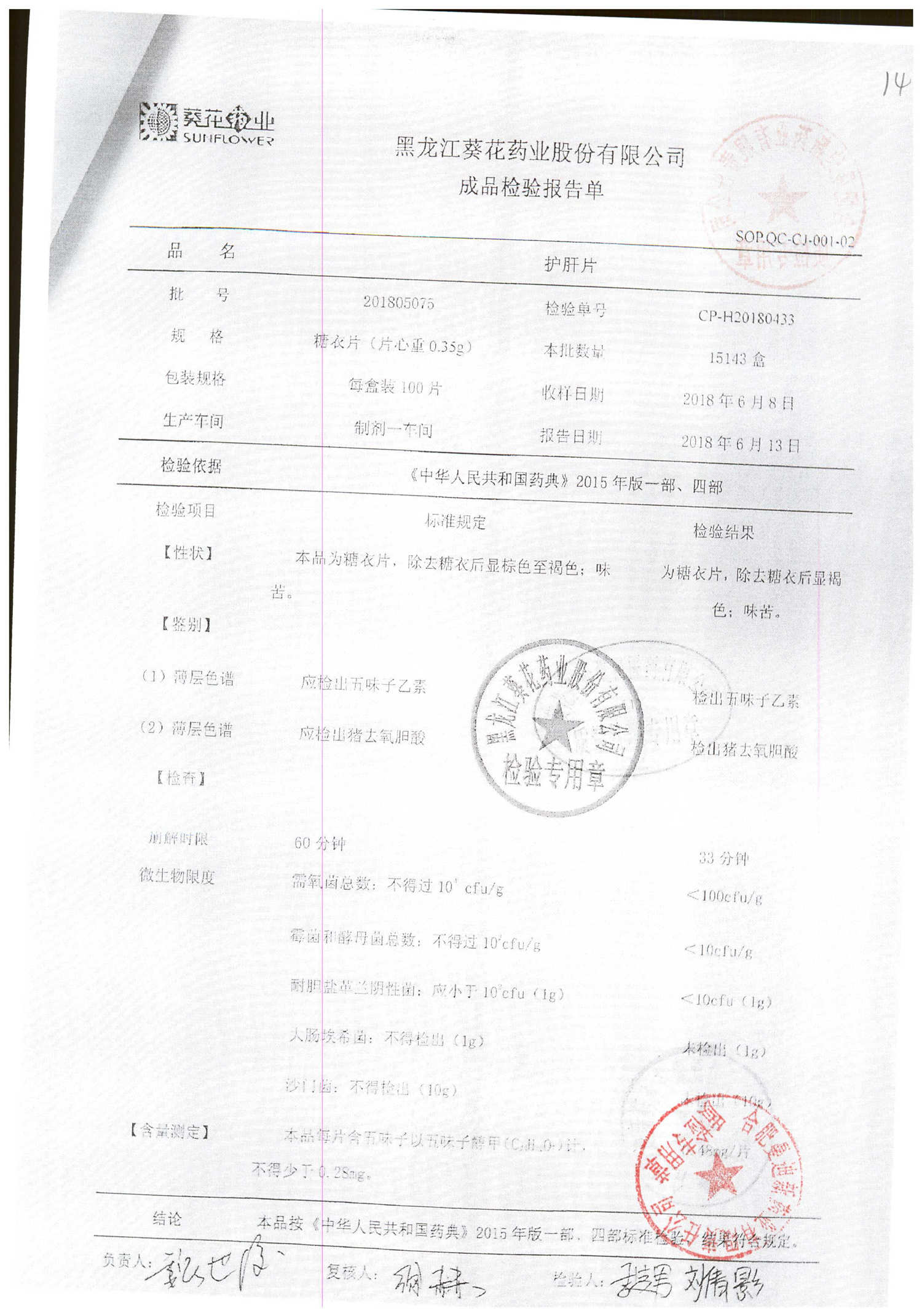 护肝片 | 0.35g*100片 | 201805074 | 查看详情 |