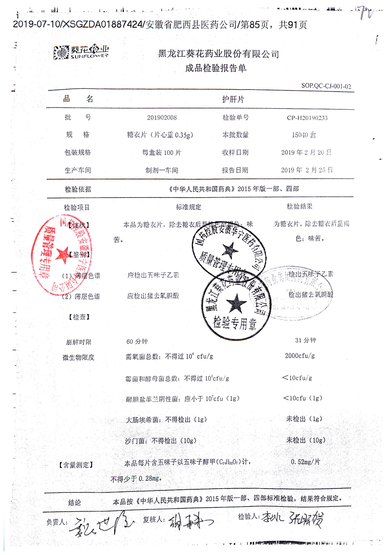 护肝片 | 0.35g*100片 | 202109110 | 查看详情 |