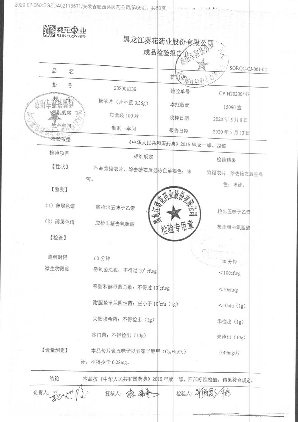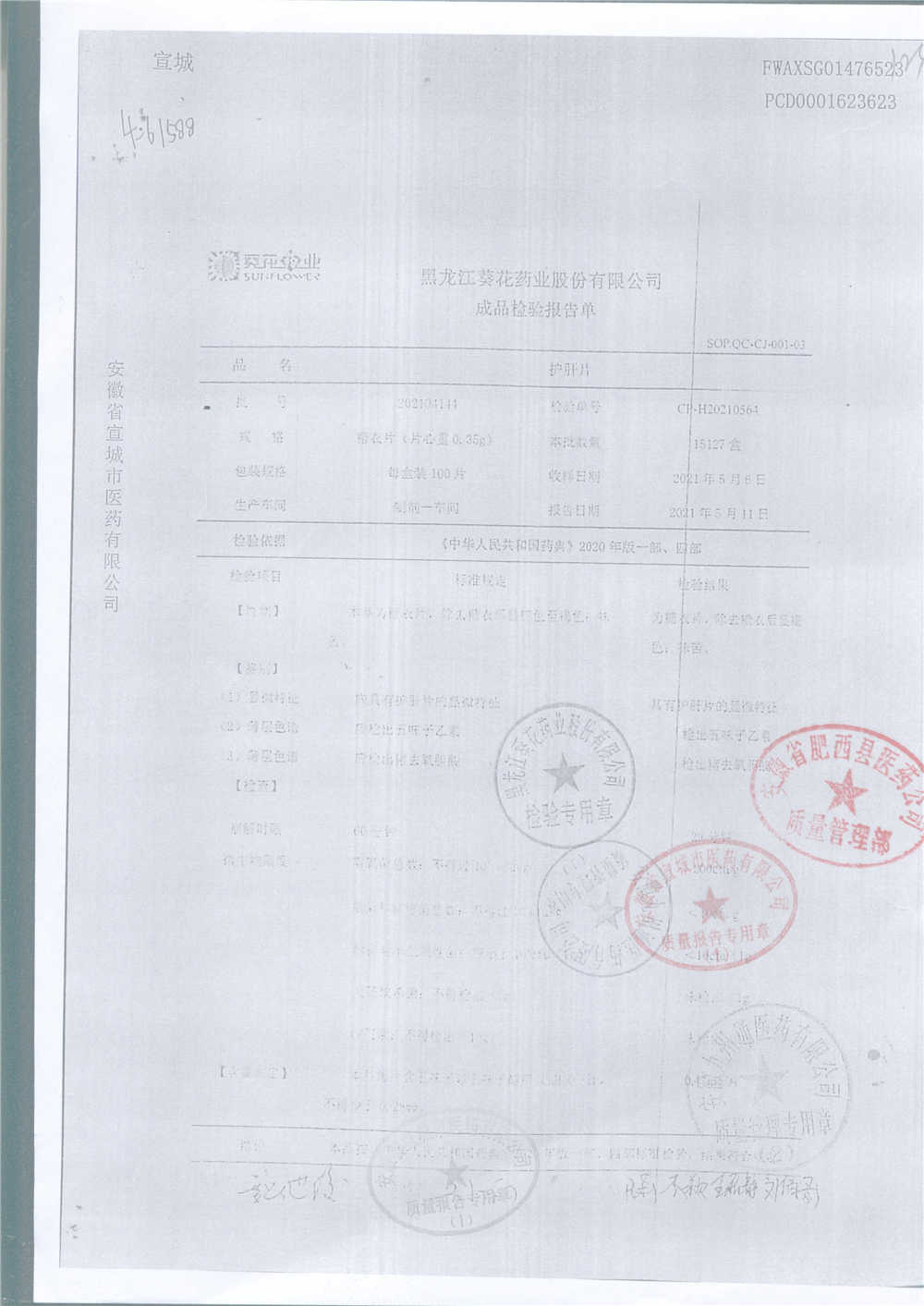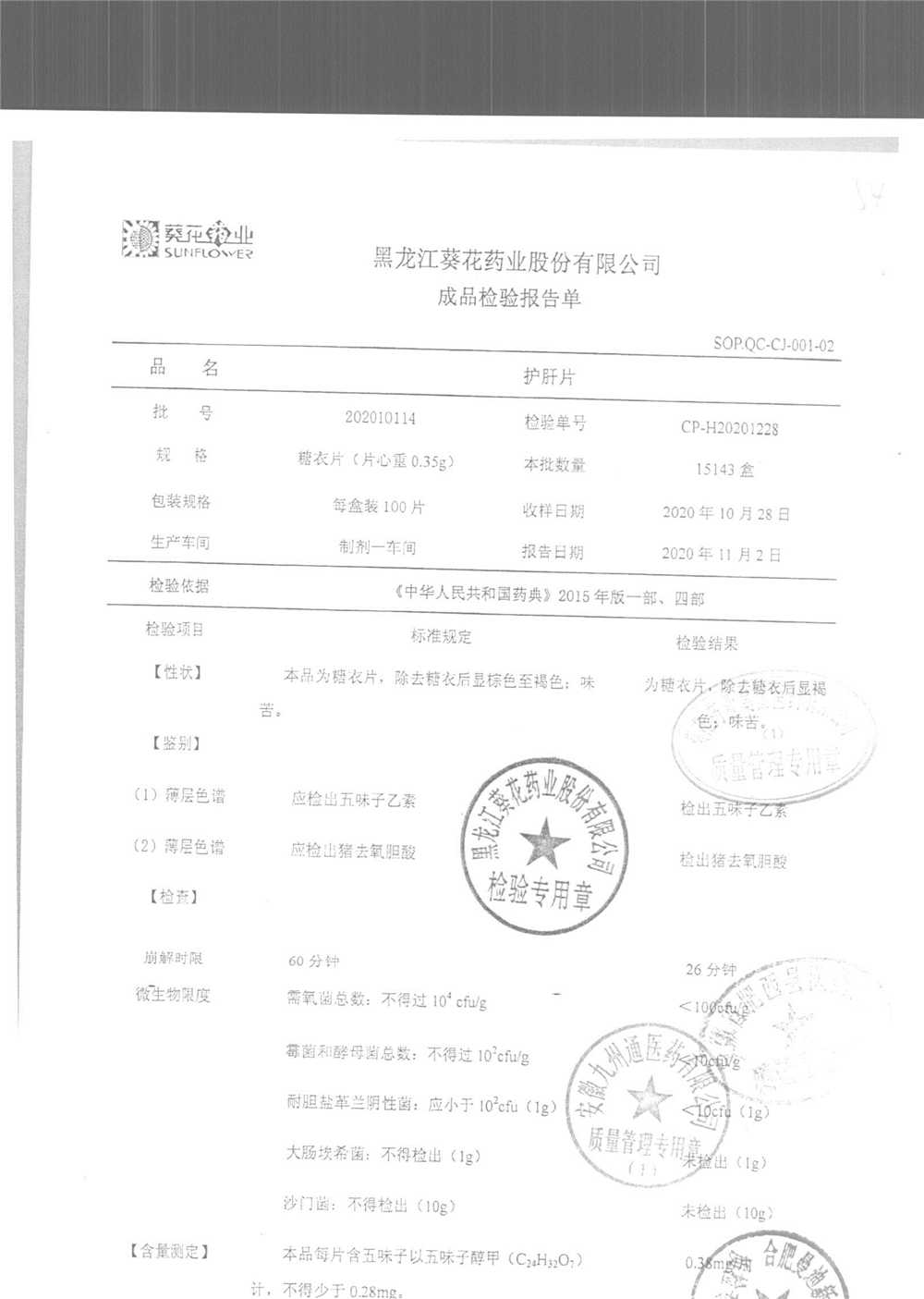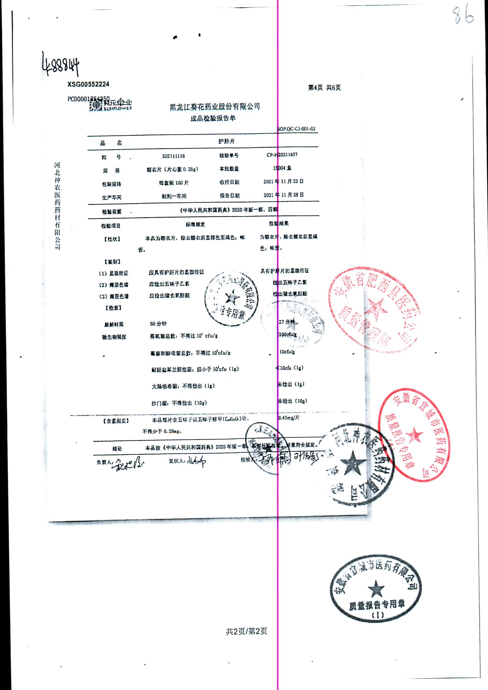 护肝片 | 0.35g*100片 | 202111116 | 查看详情 |
