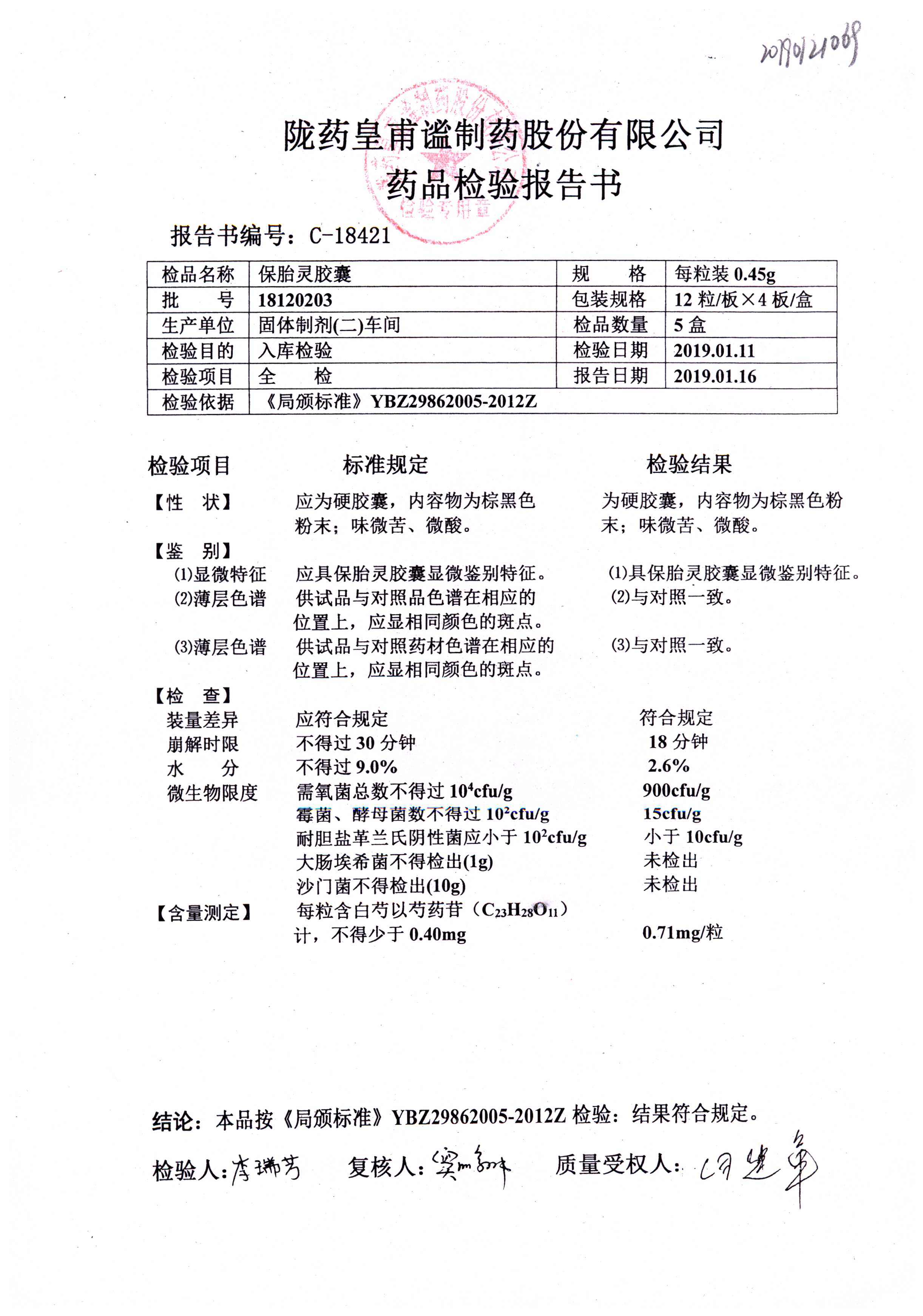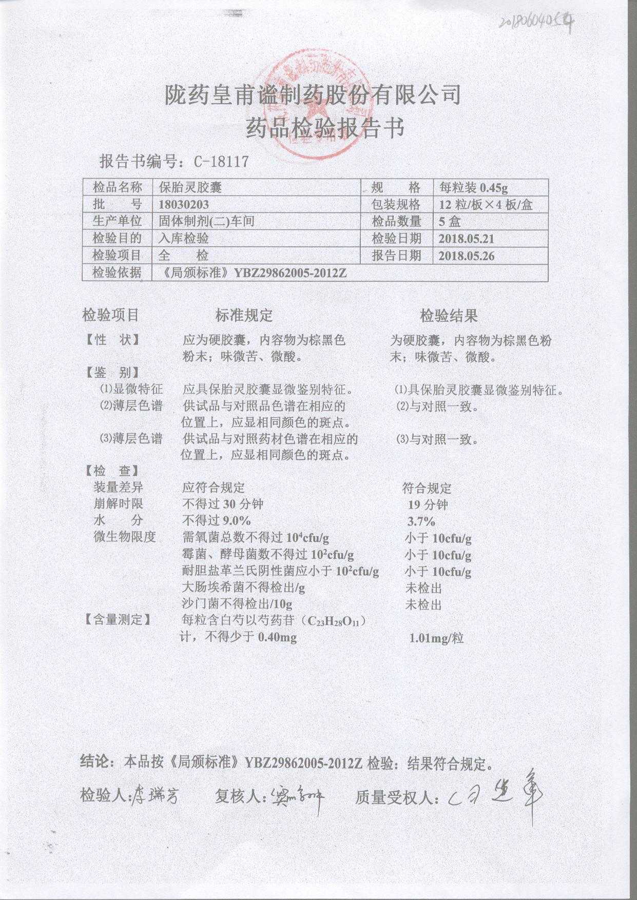 保胎灵胶囊 | 0.45g*48粒 | 18040201(1/2) | 查看详情 |
