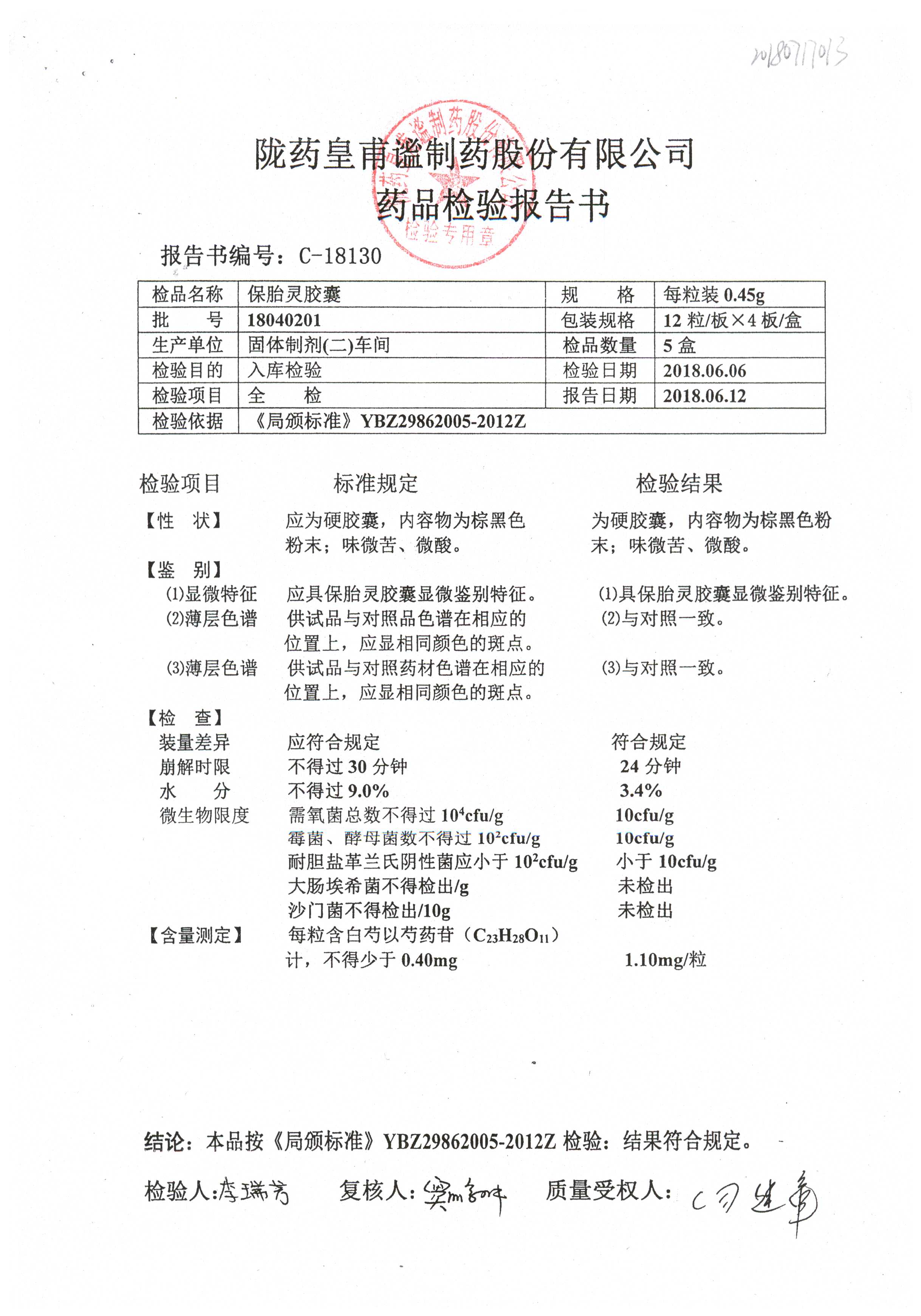 保胎灵胶囊 | 0.45g*48粒 | 18040201(2/2) | 查看详情 |