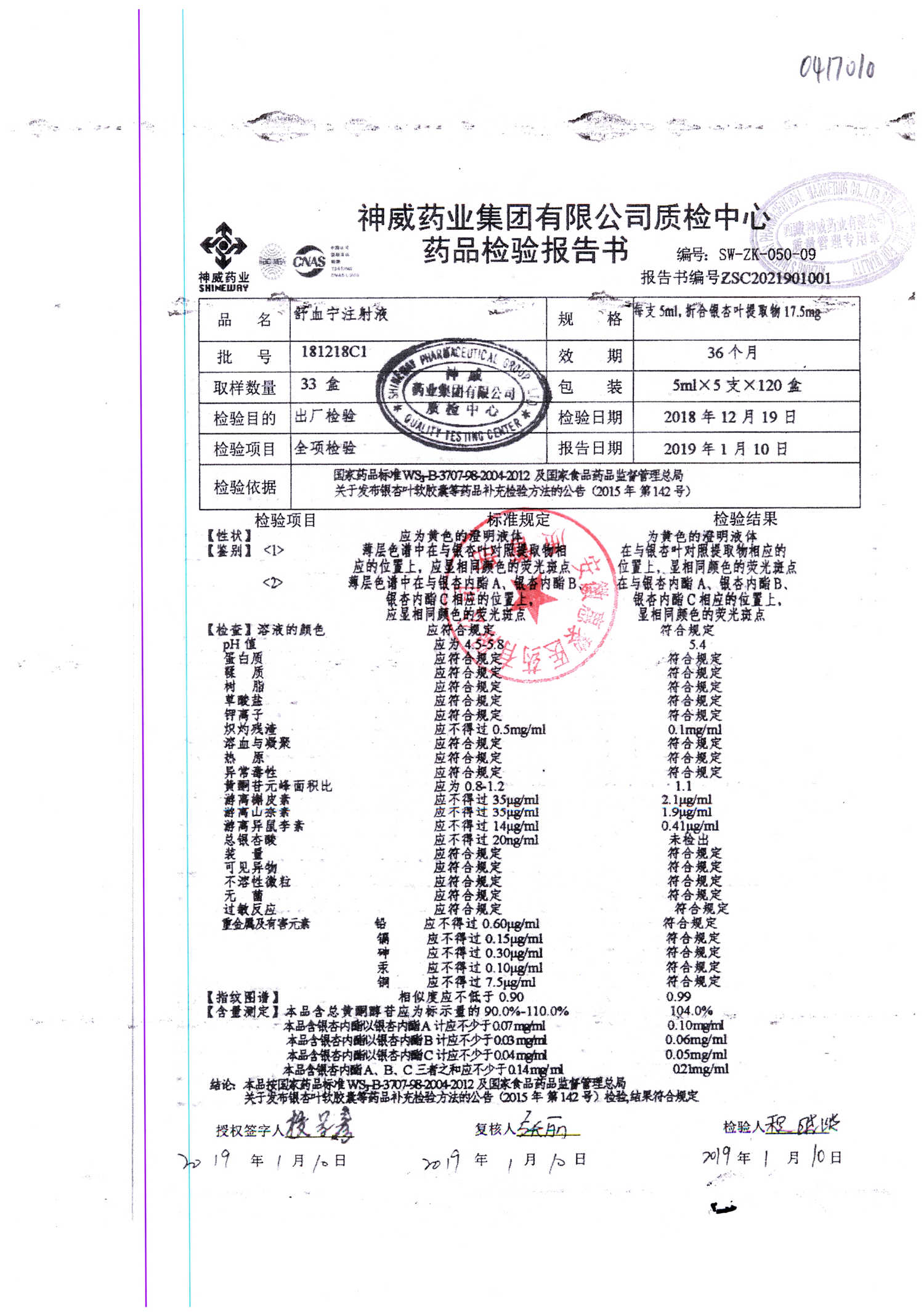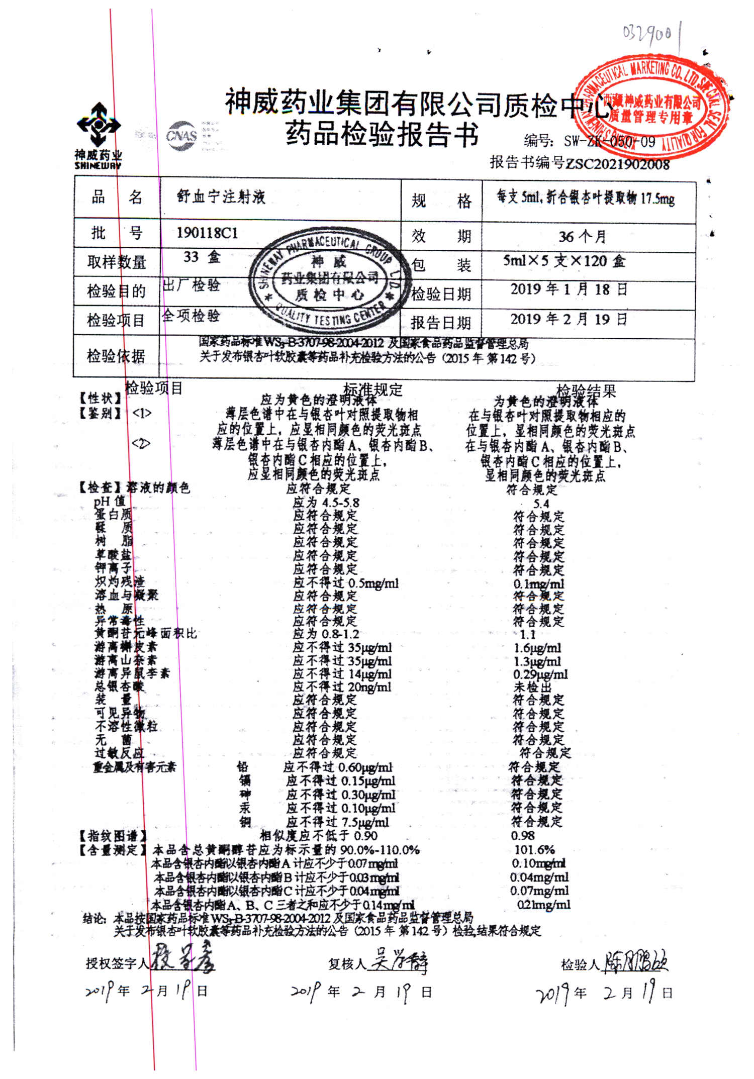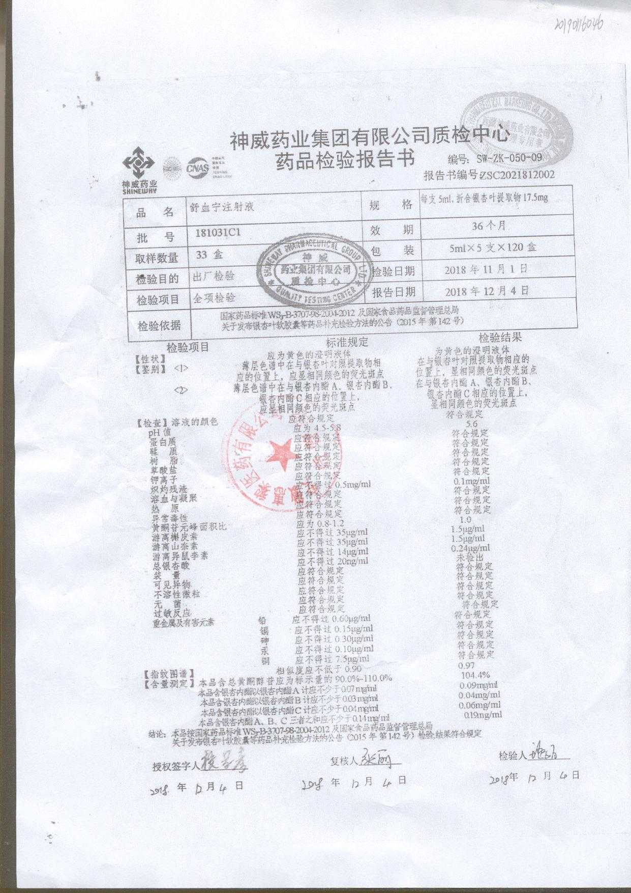 舒血宁注射液 | 5ml*5支 | 190315C1 | 查看详情 |