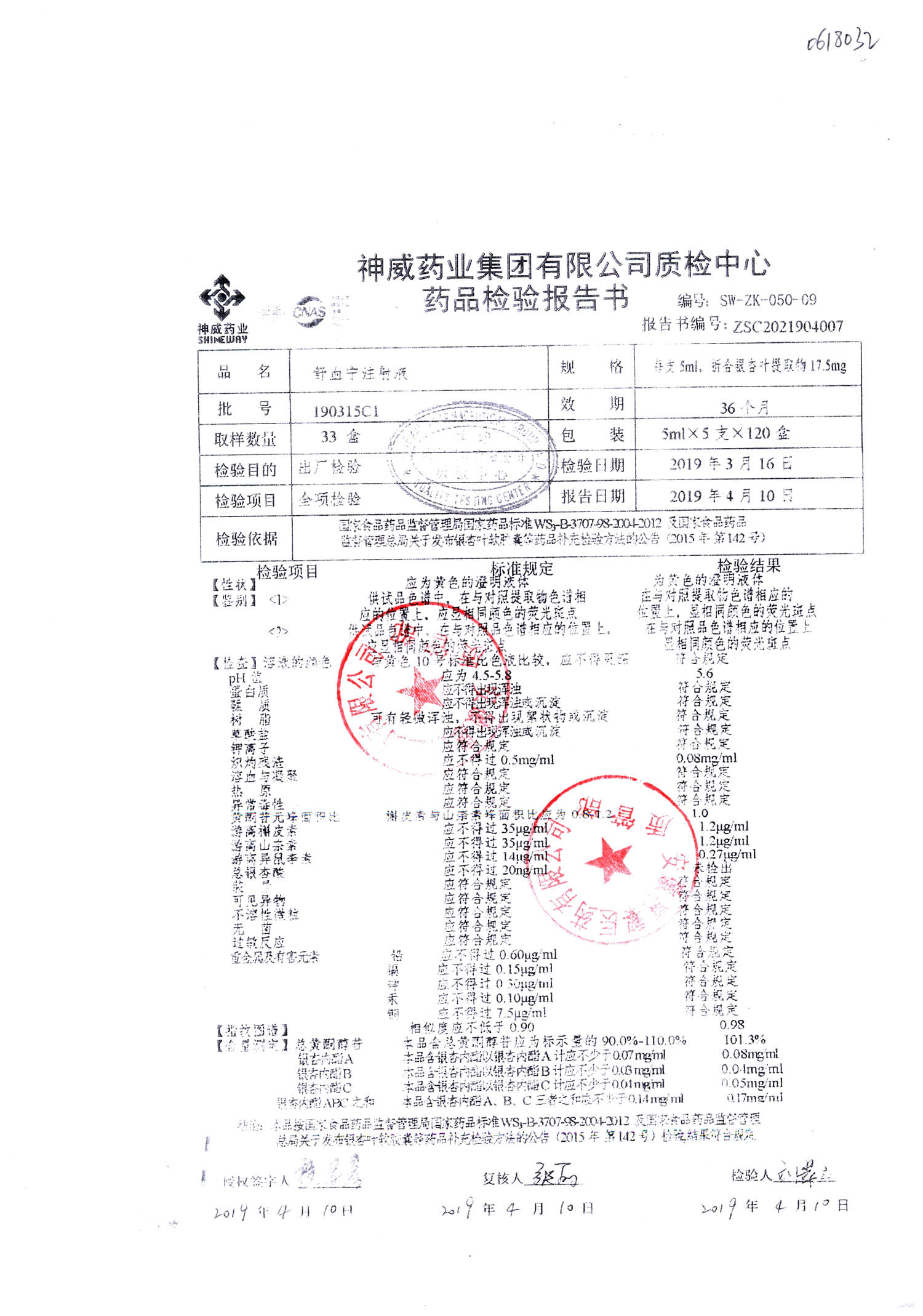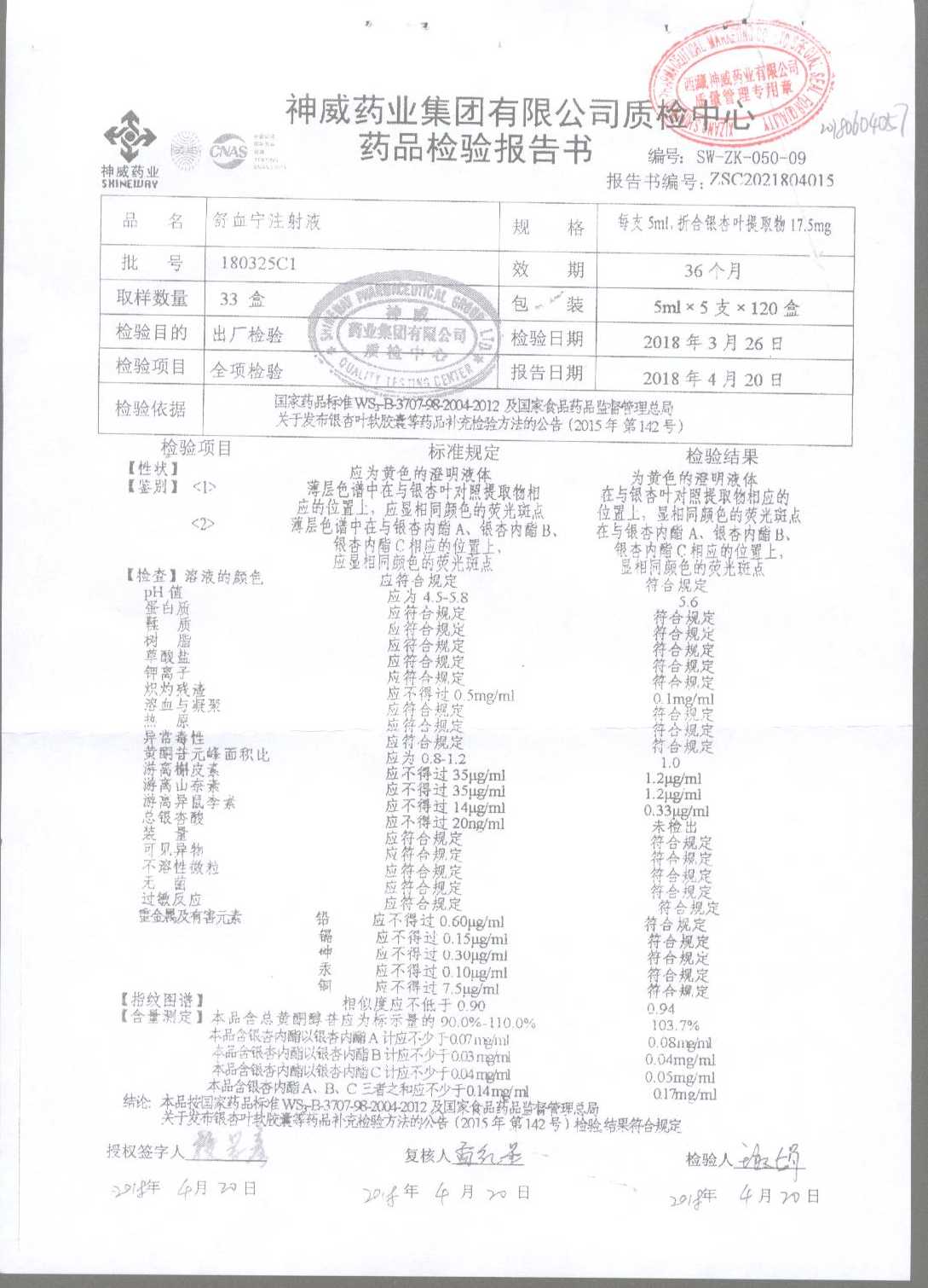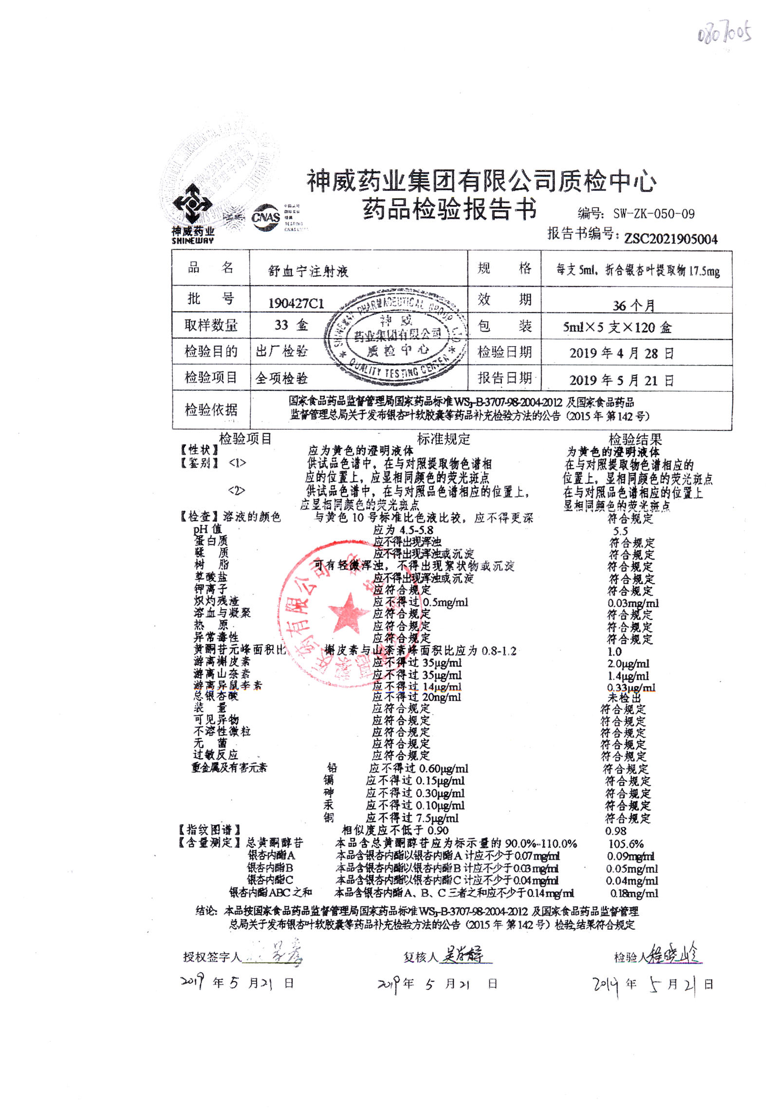 舒血宁注射液 | 5ml*5支 | 190315C1 | 查看详情 |