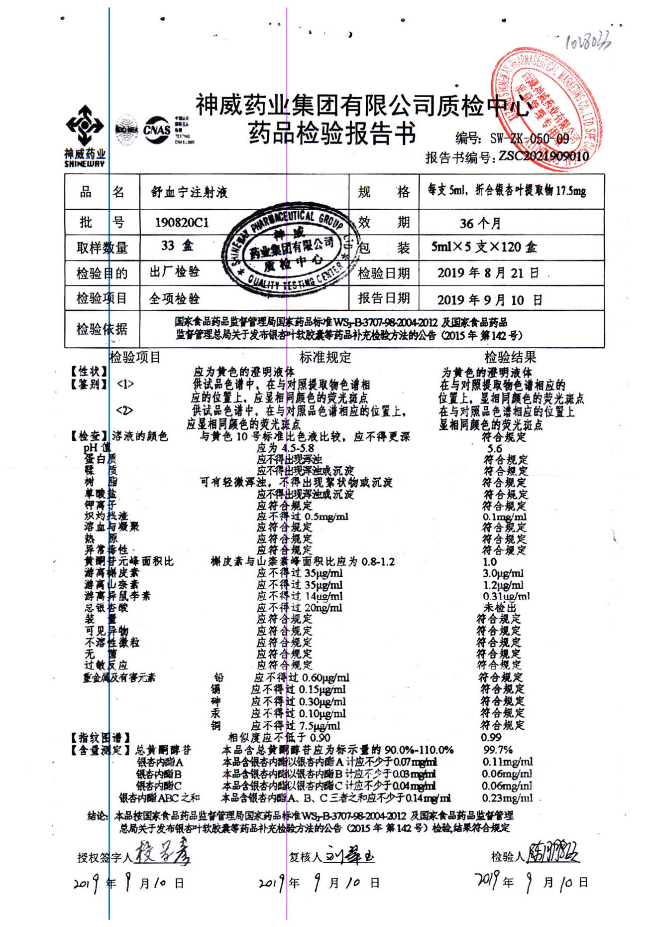 舒血宁注射液 | 5ml*5支 | 190820C1 | 查看详情 |