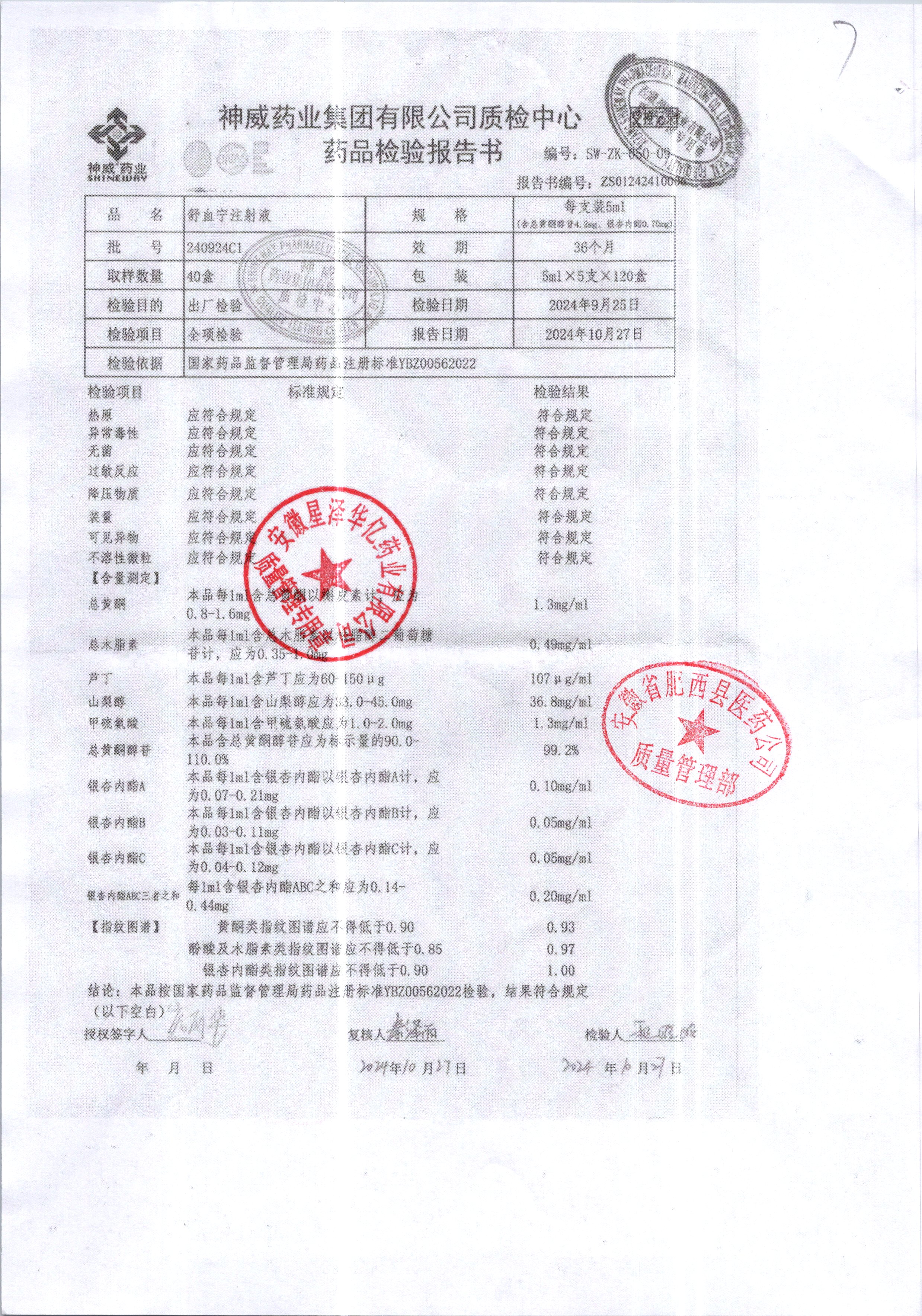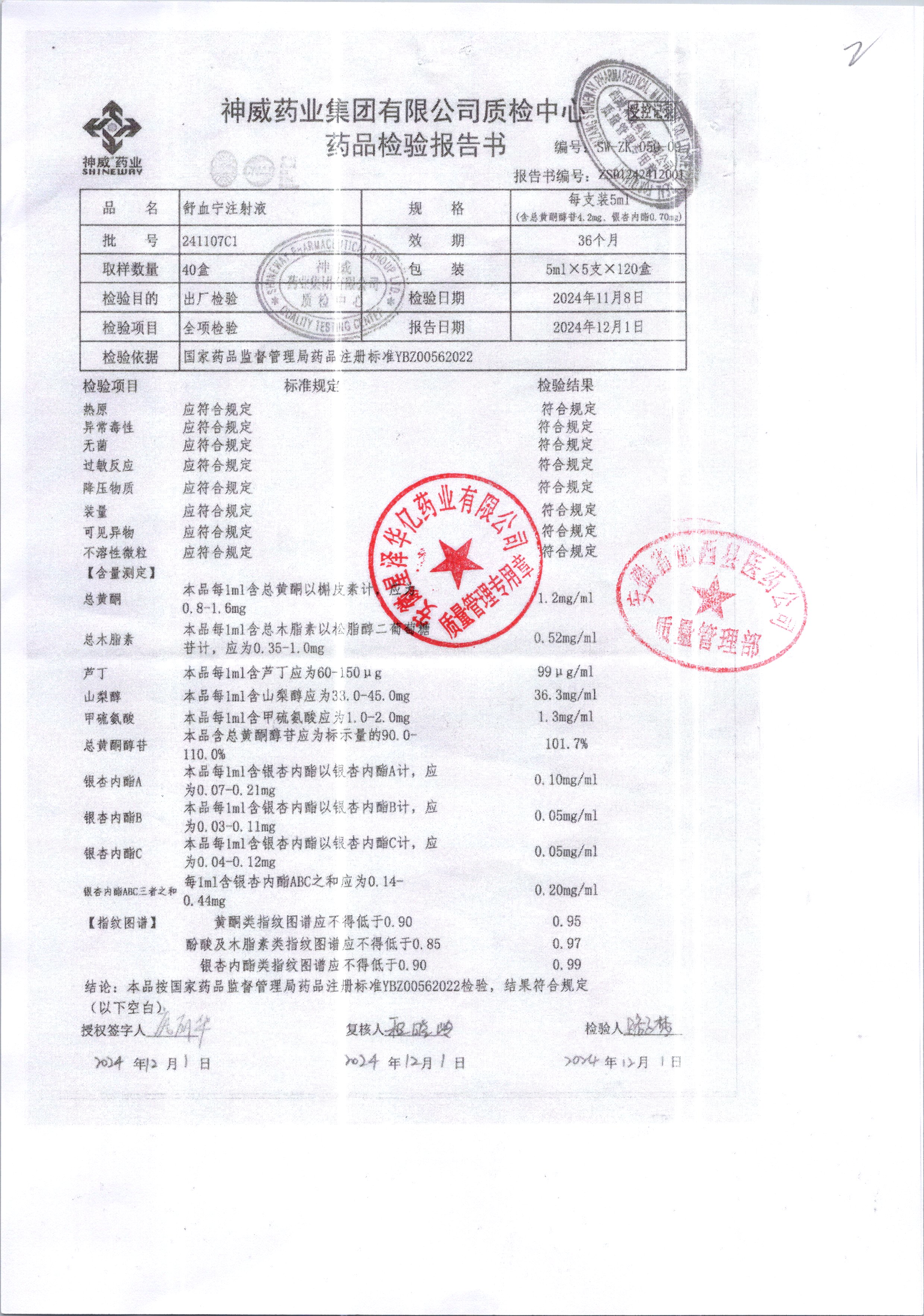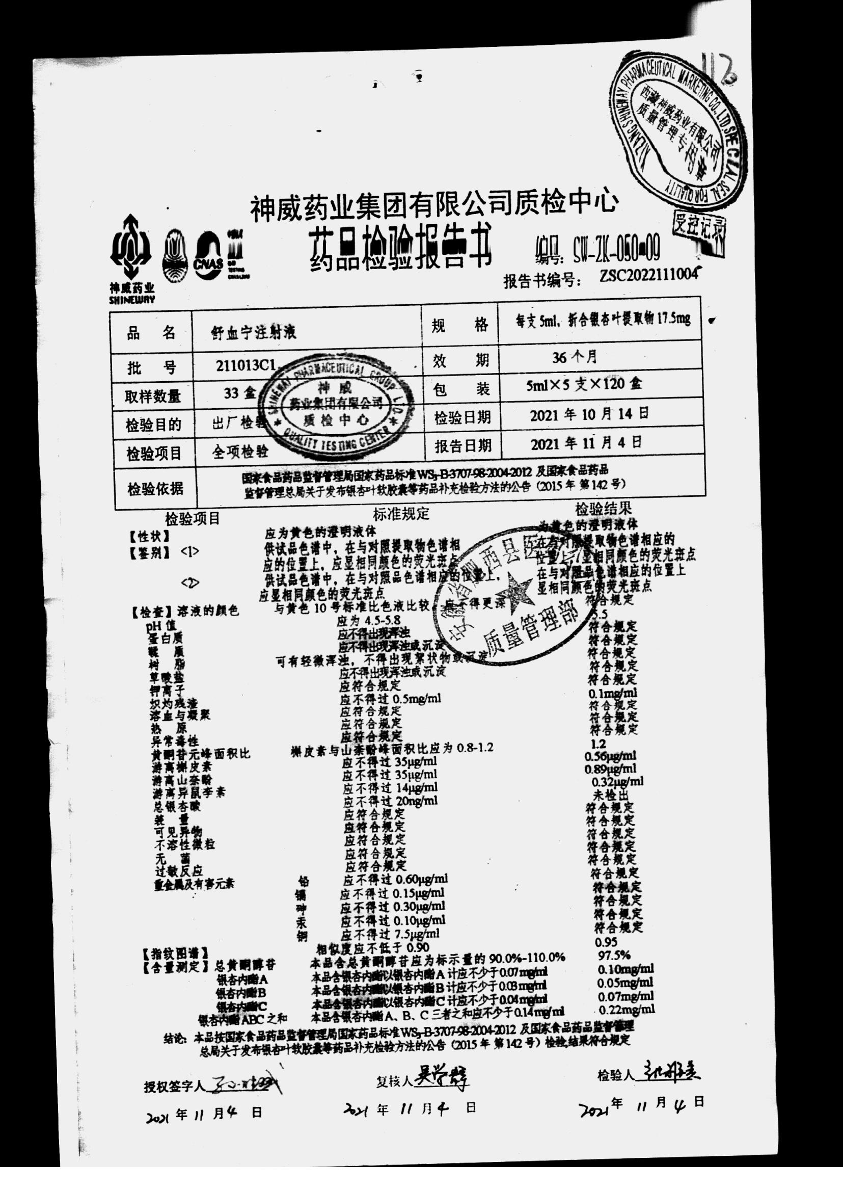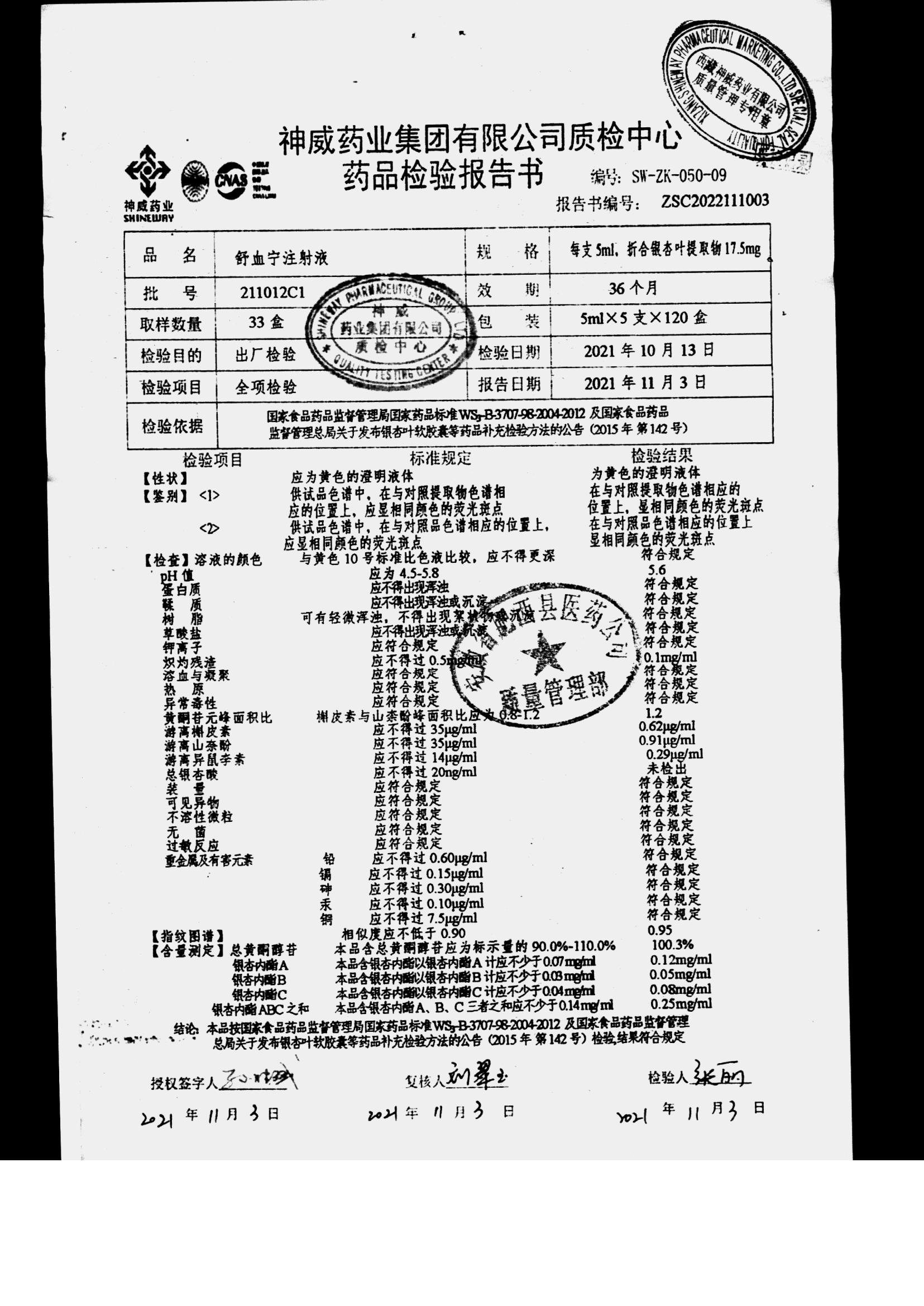 舒血宁注射液 | 5ml*5支 | 241107C1/2 | 查看详情 |