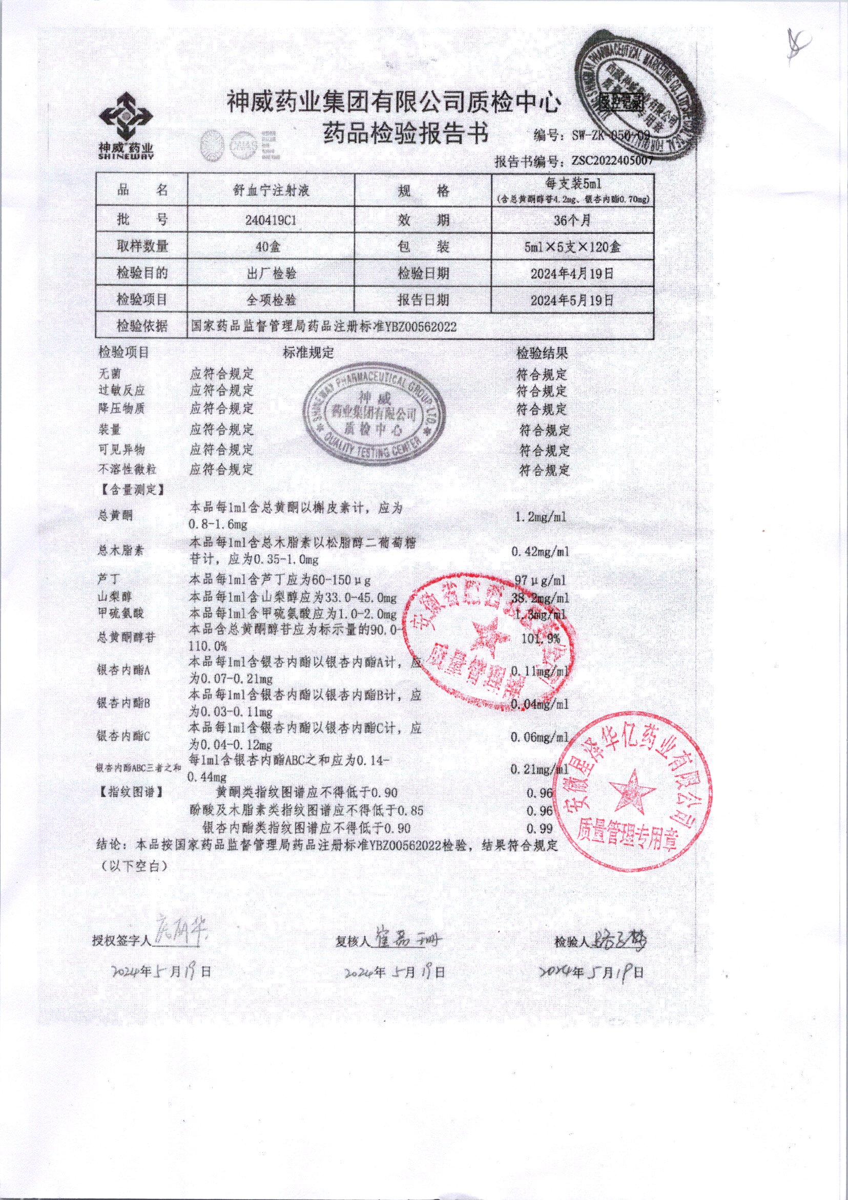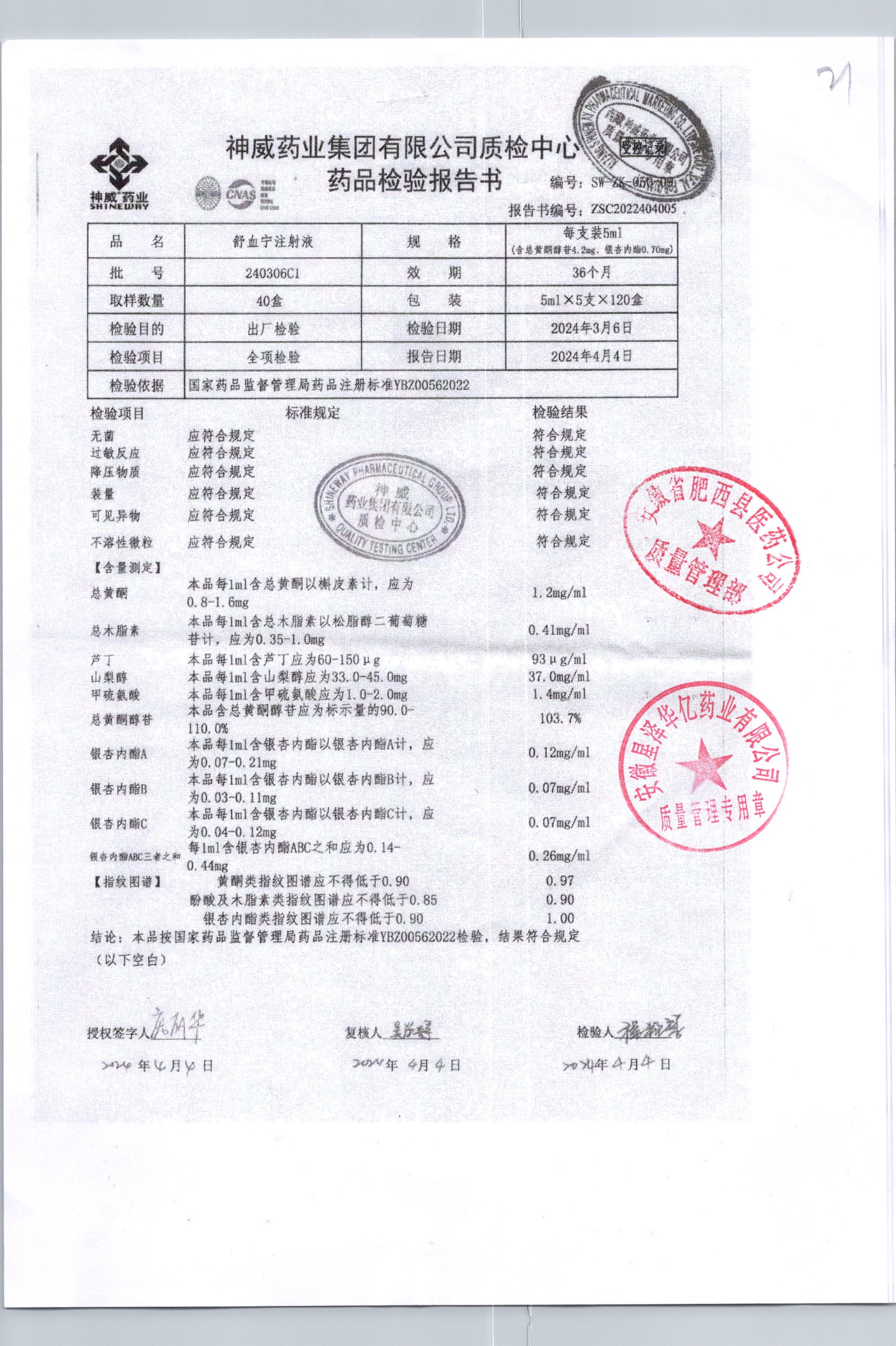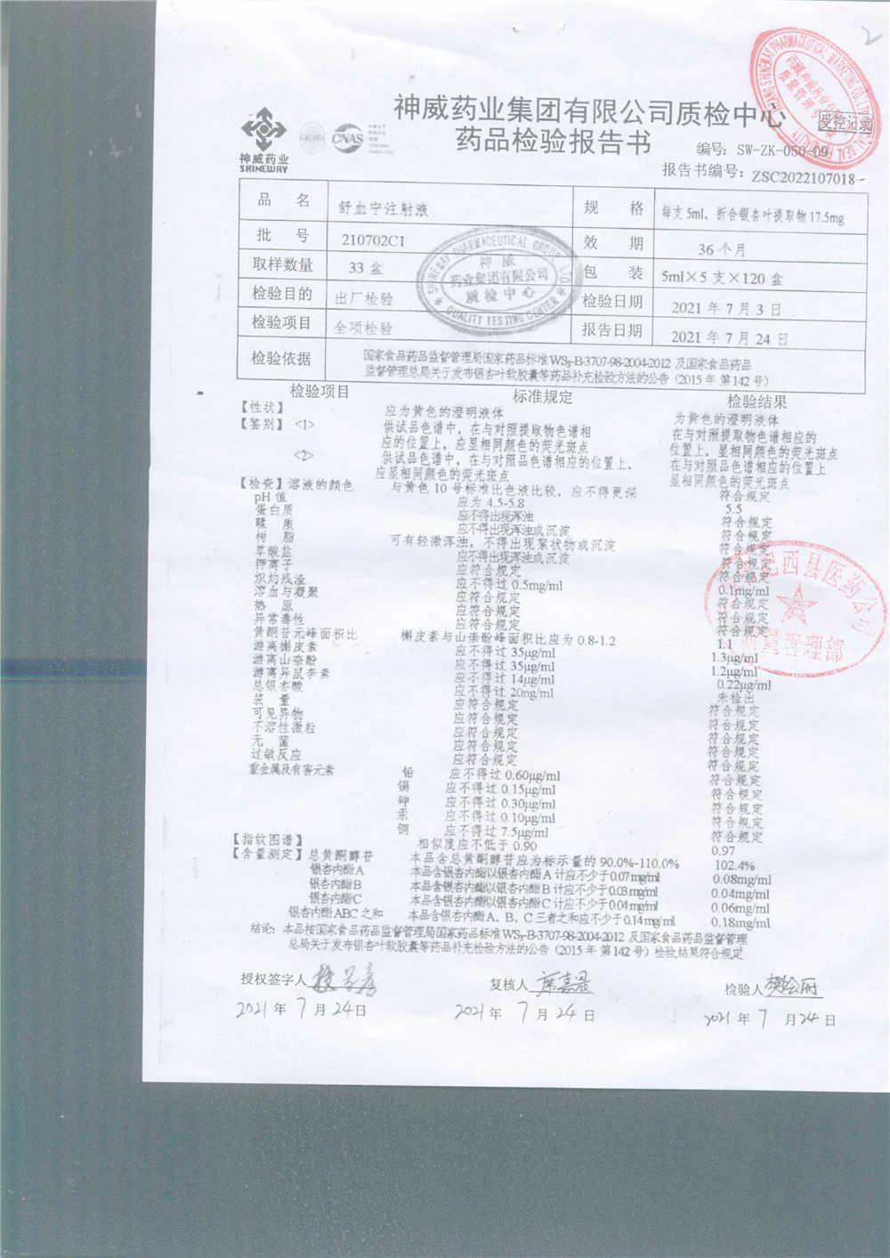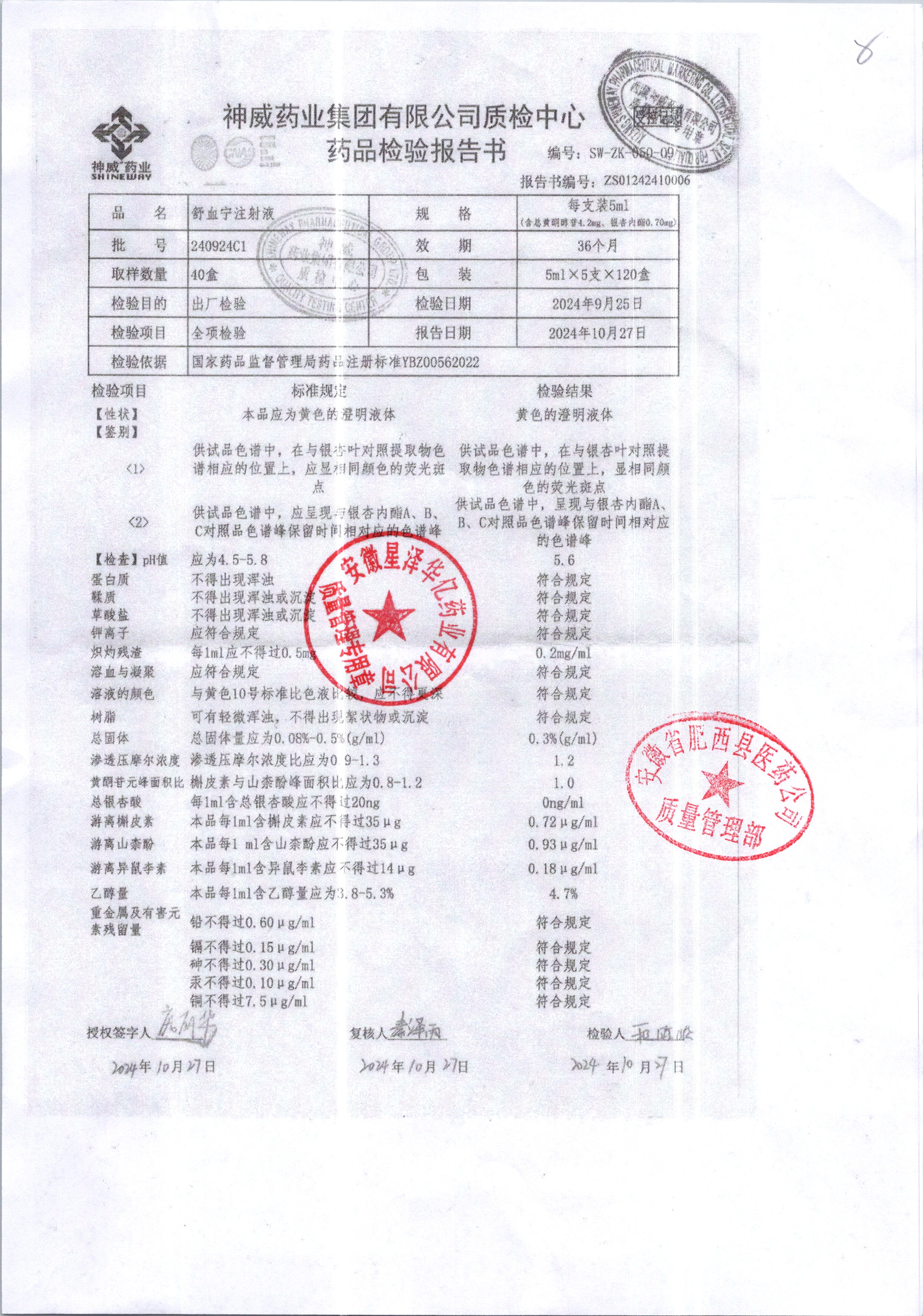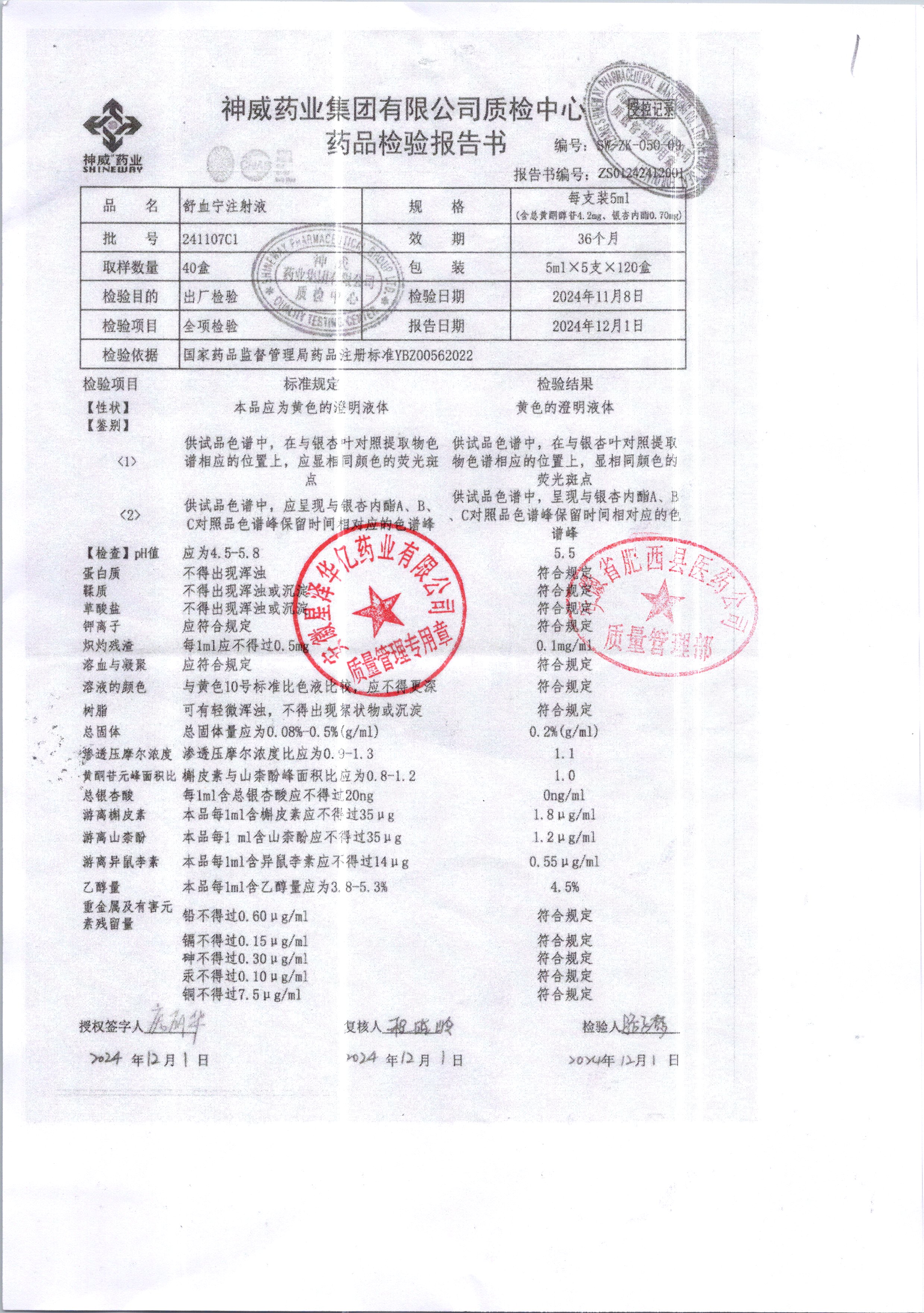 舒血宁注射液 | 5ml*5支 | 241107C1/2 | 查看详情 |