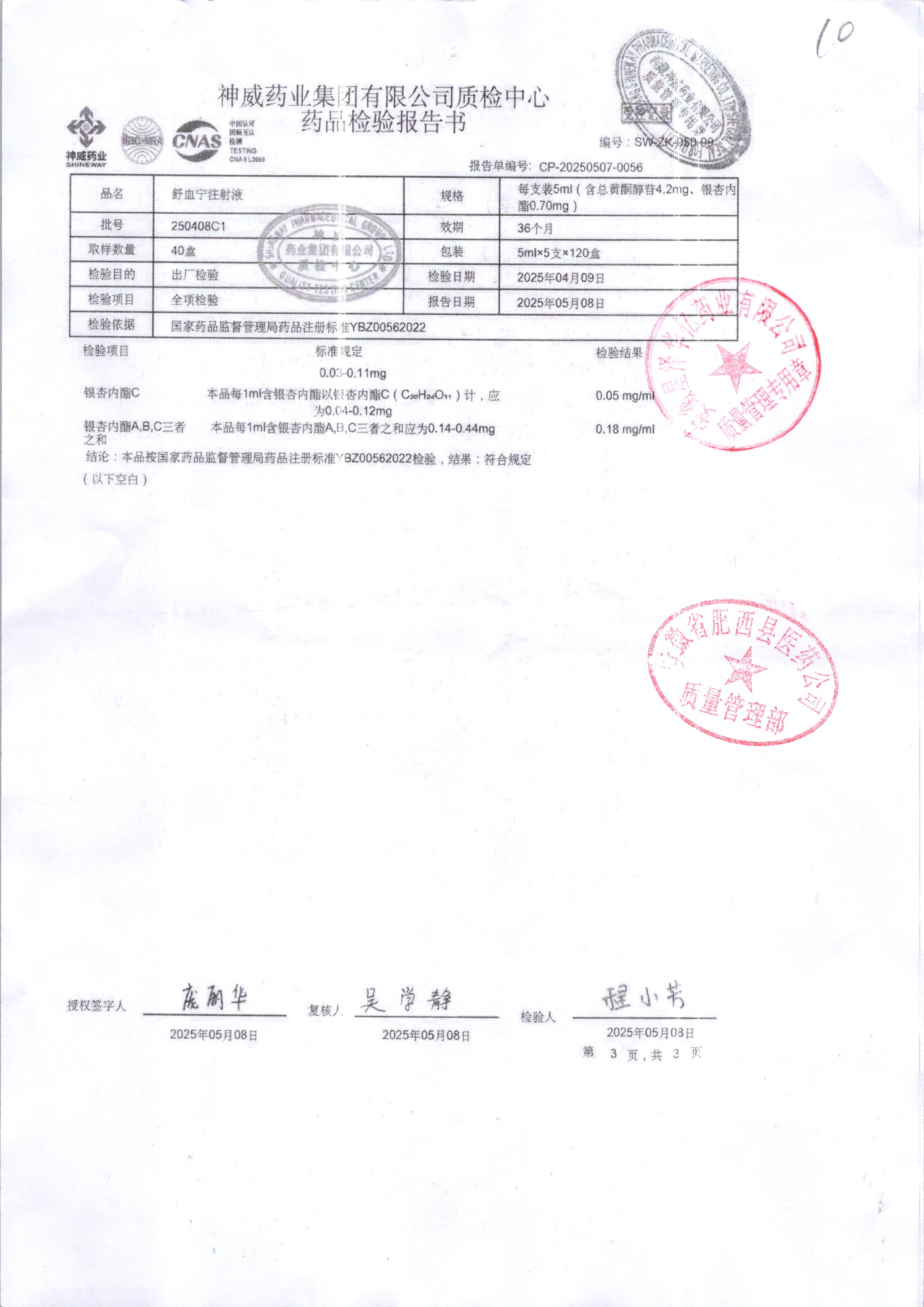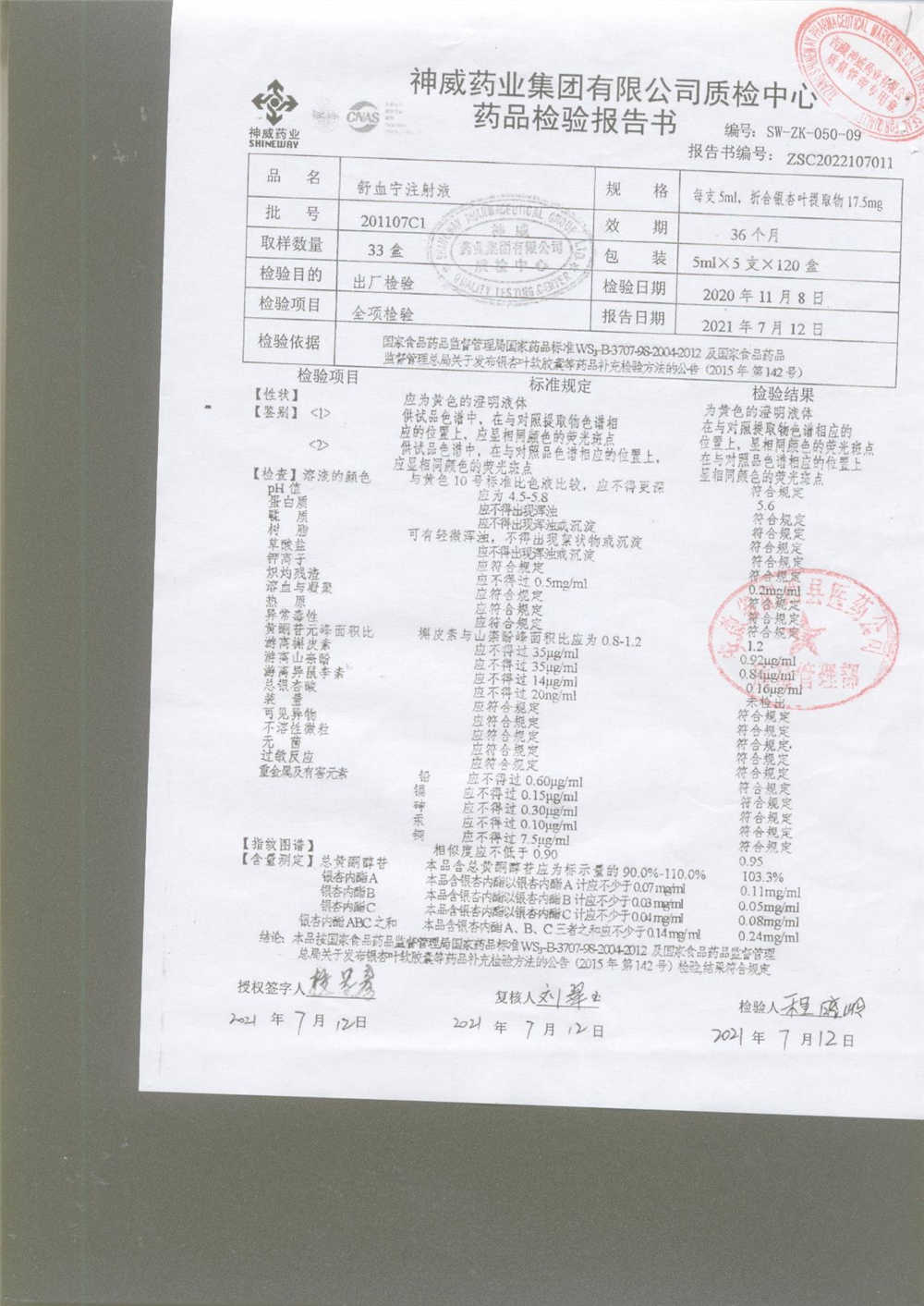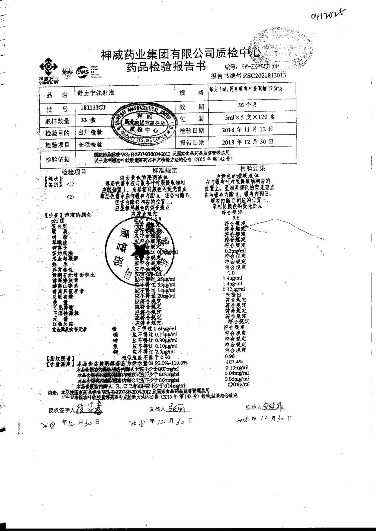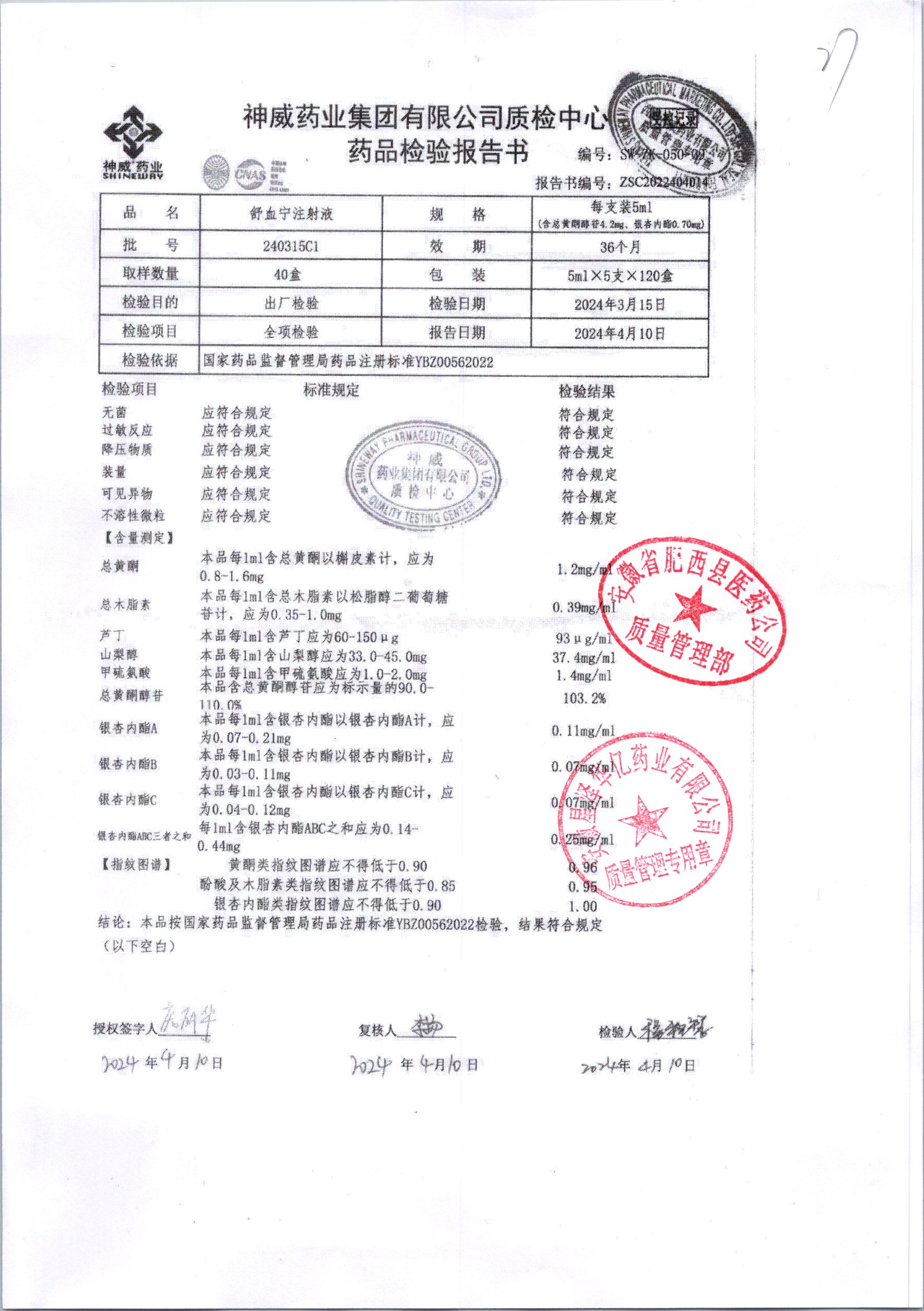 舒血宁注射液 | 5ml*5支 | 241107C1/2 | 查看详情 |
