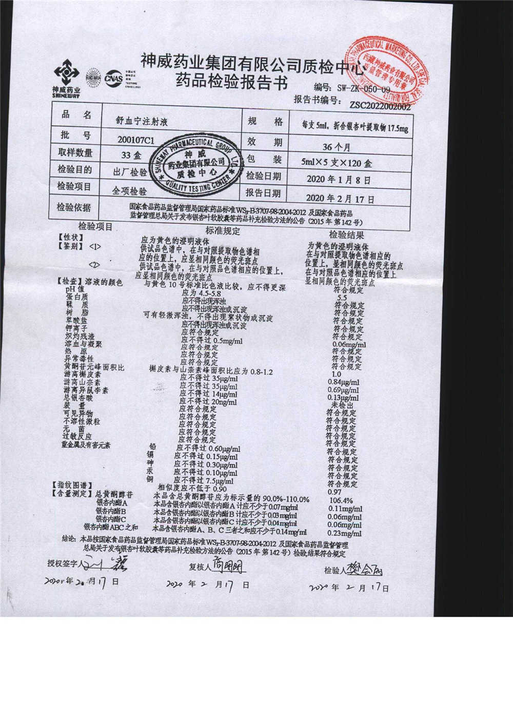 舒血宁注射液 | 5ml*5支 | 220417C1/1 | 查看详情 |