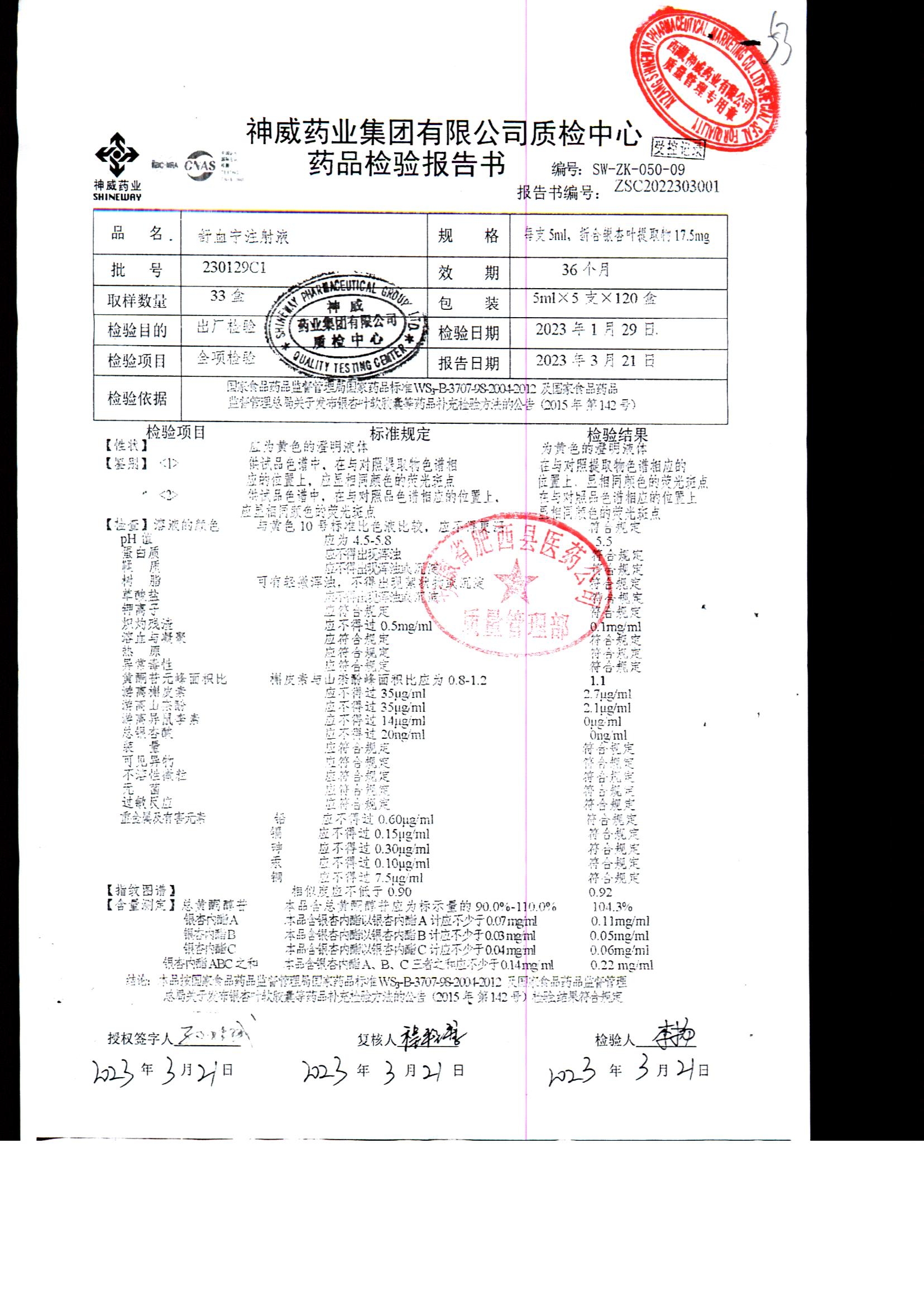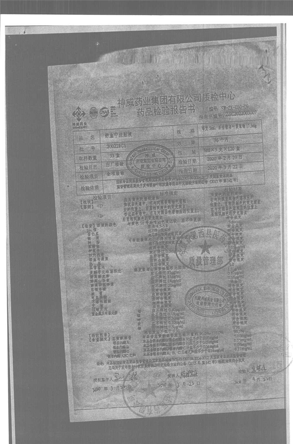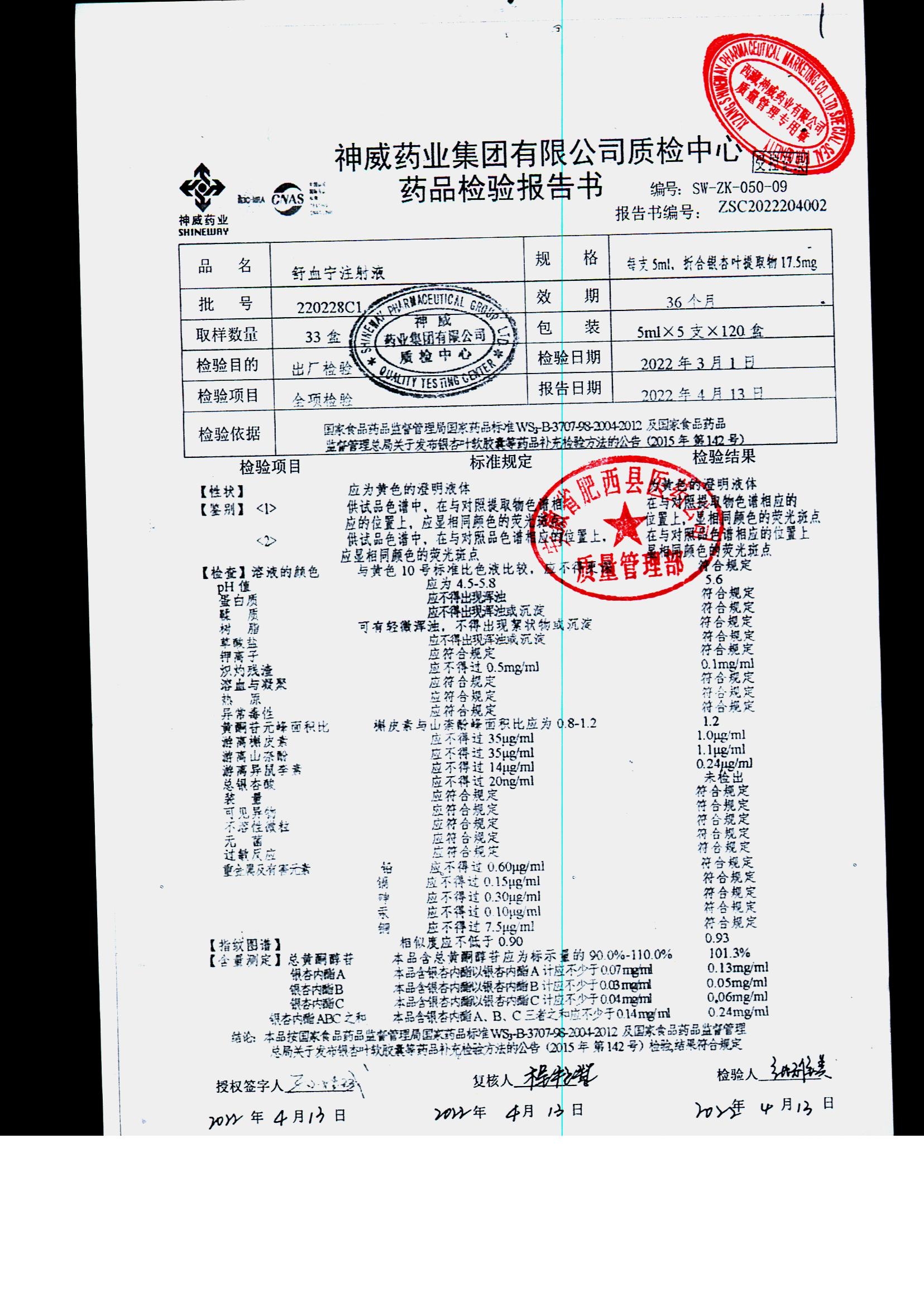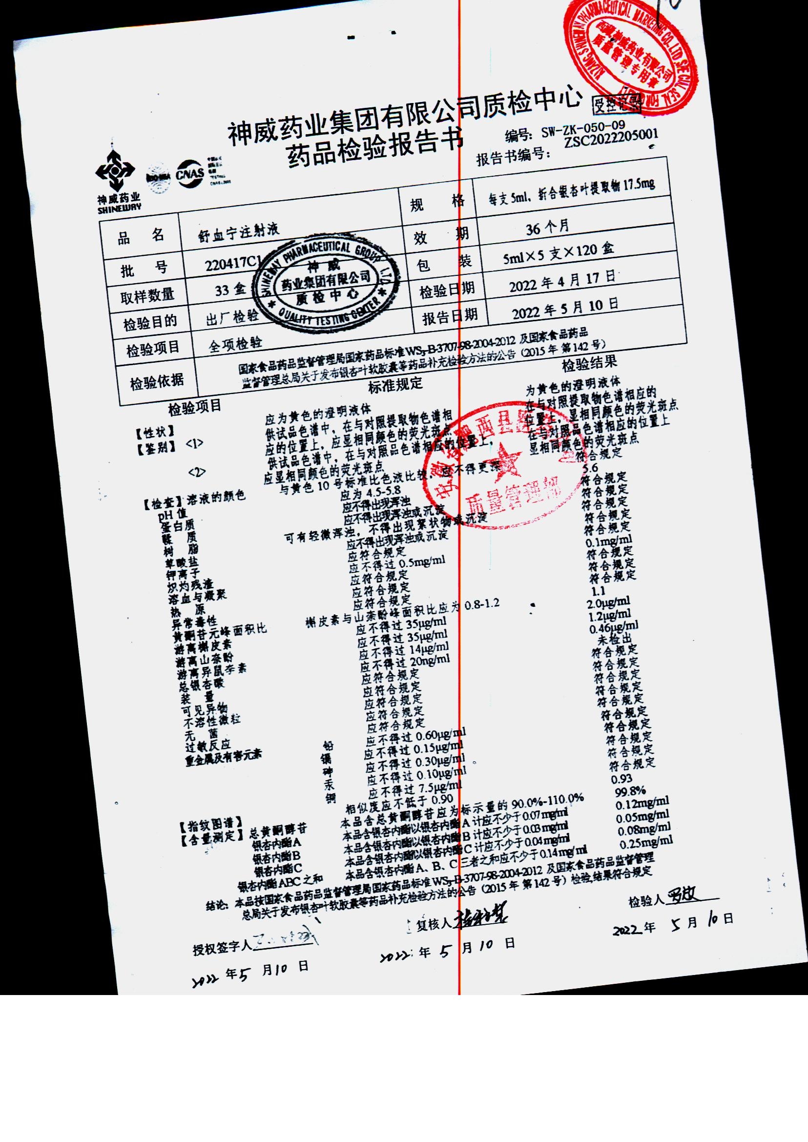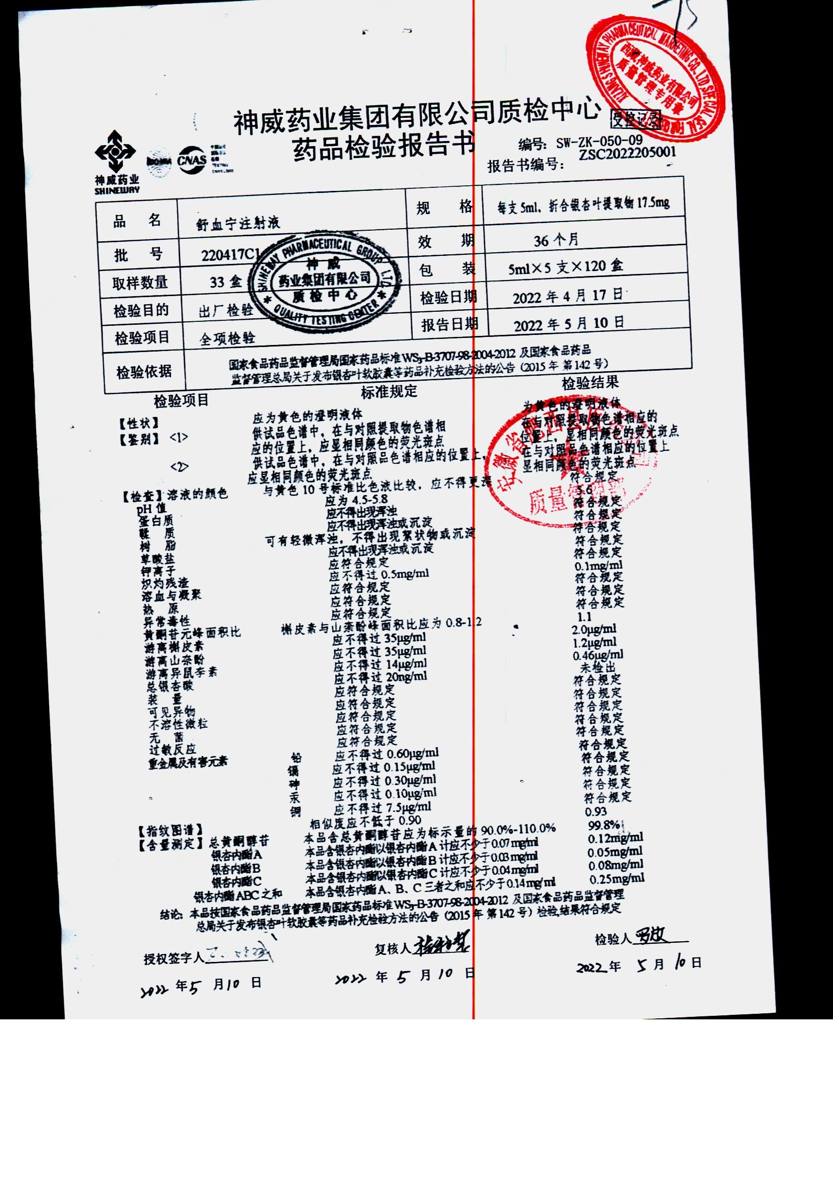 舒血宁注射液 | 5ml*5支 | 220228C1/2 | 查看详情 |