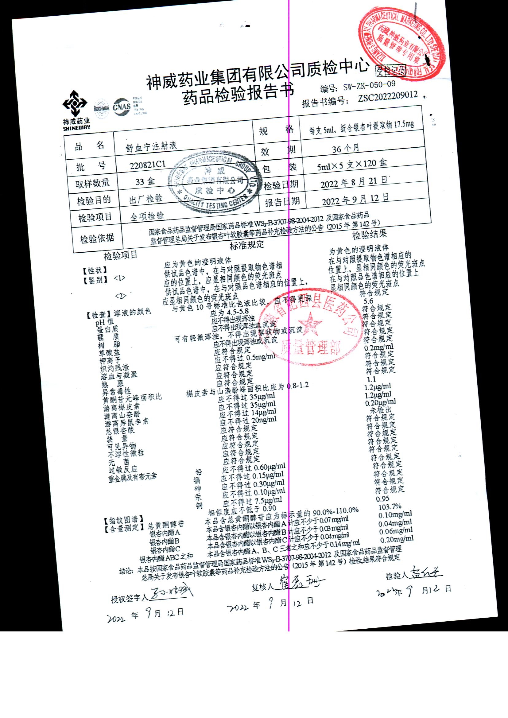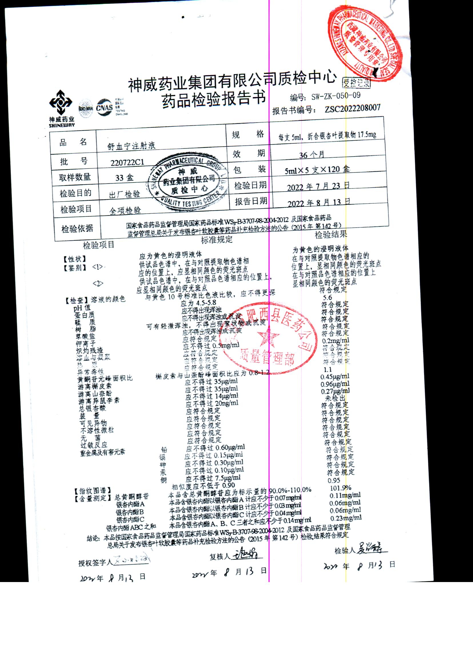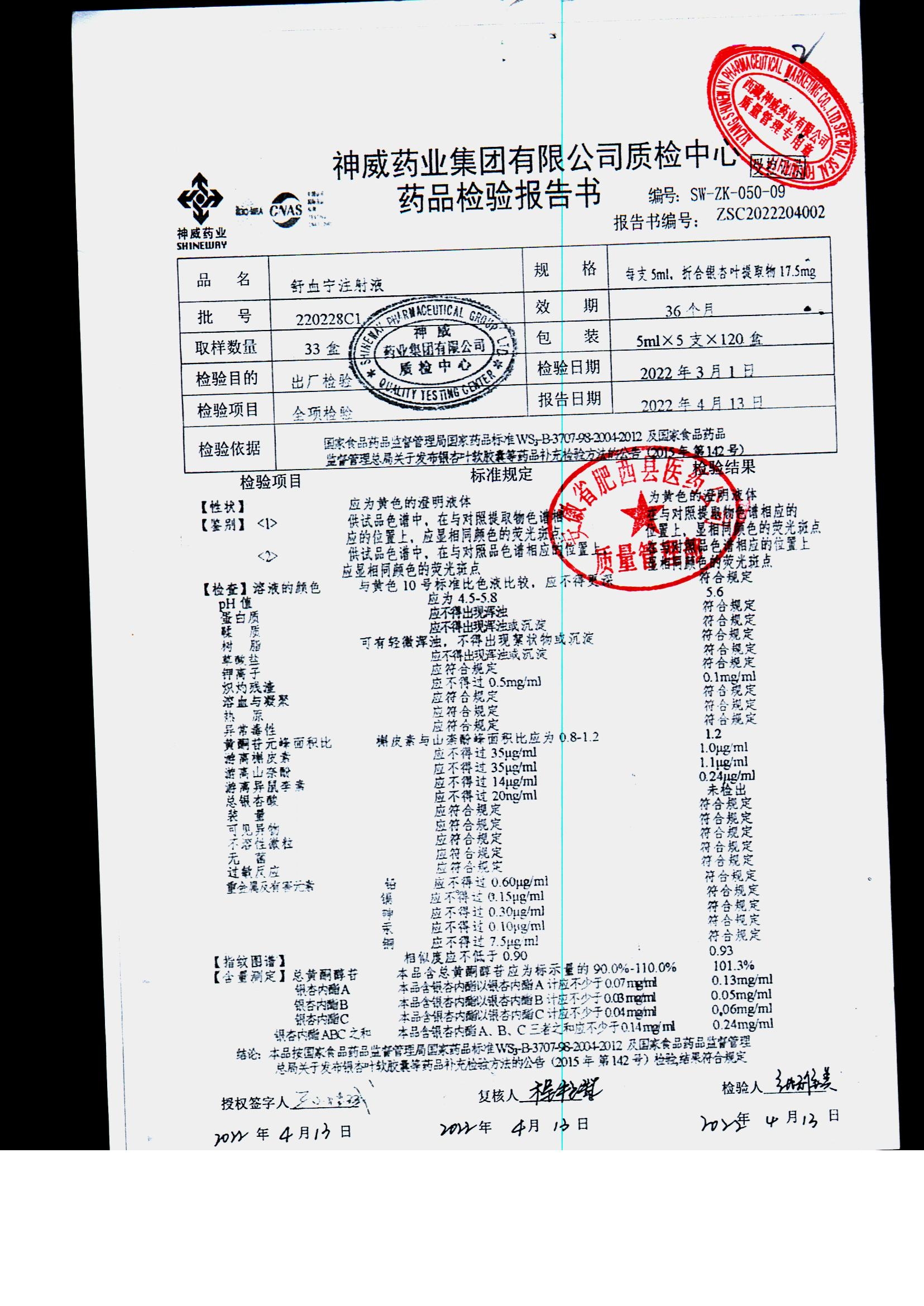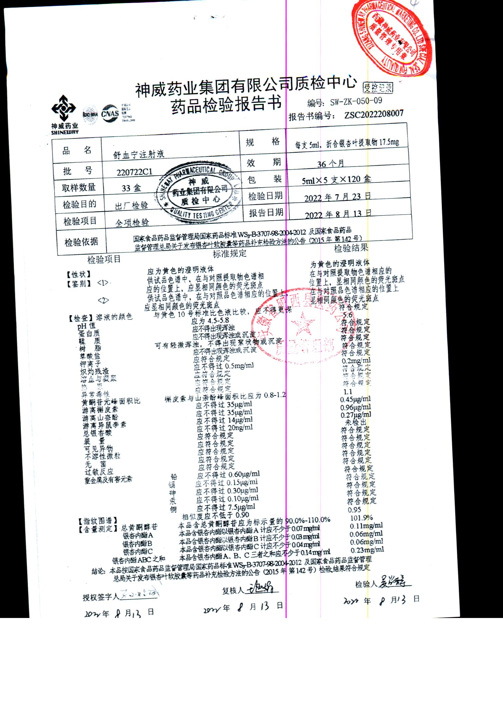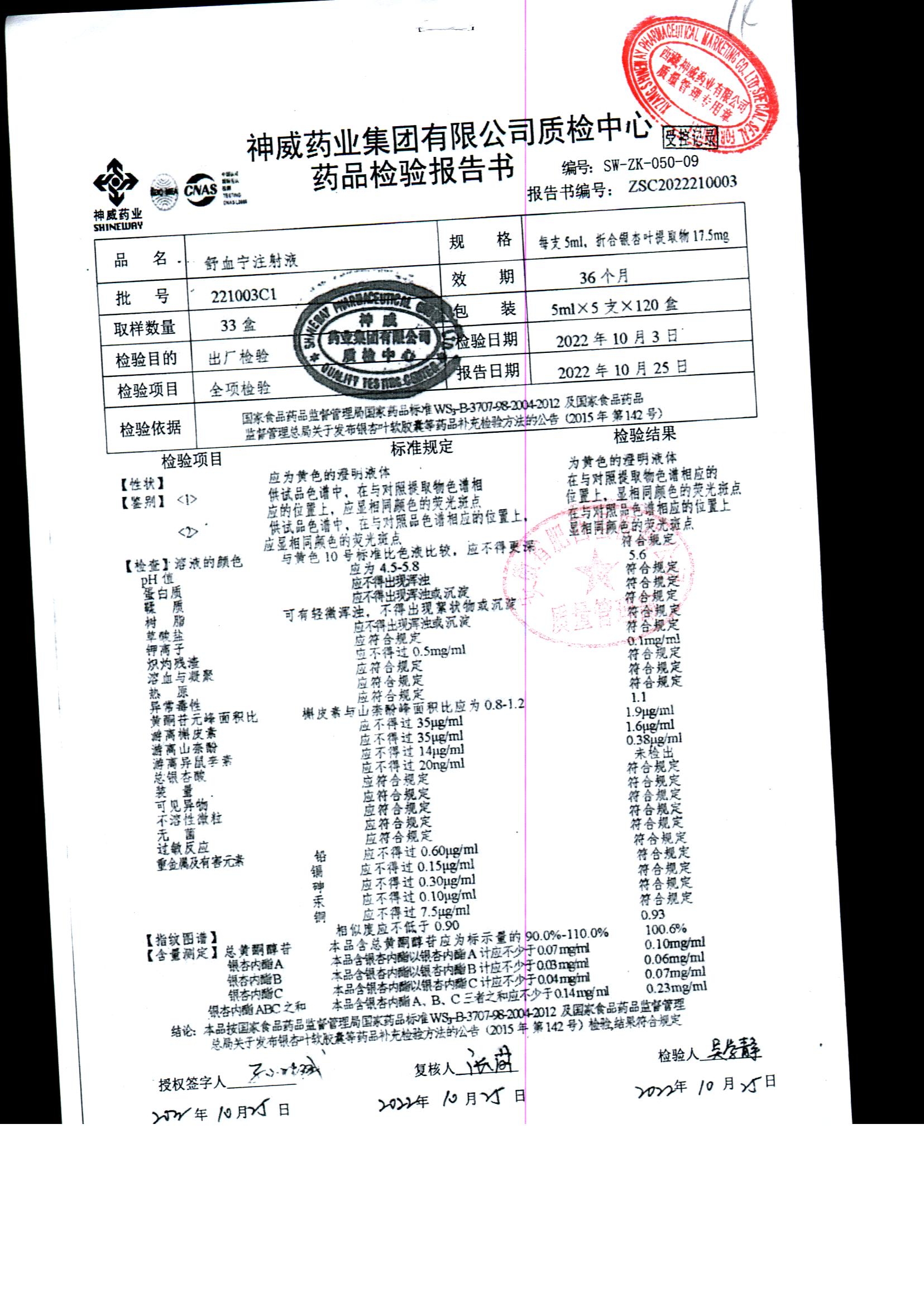舒血宁注射液 | 5ml*5支 | 220228C1/2 | 查看详情 |