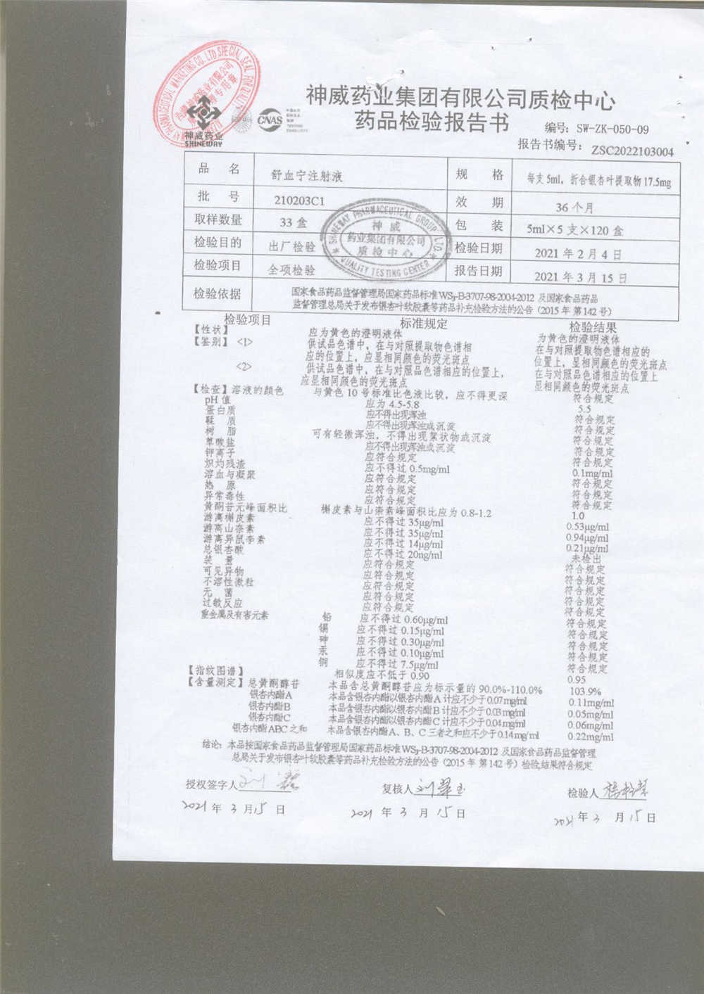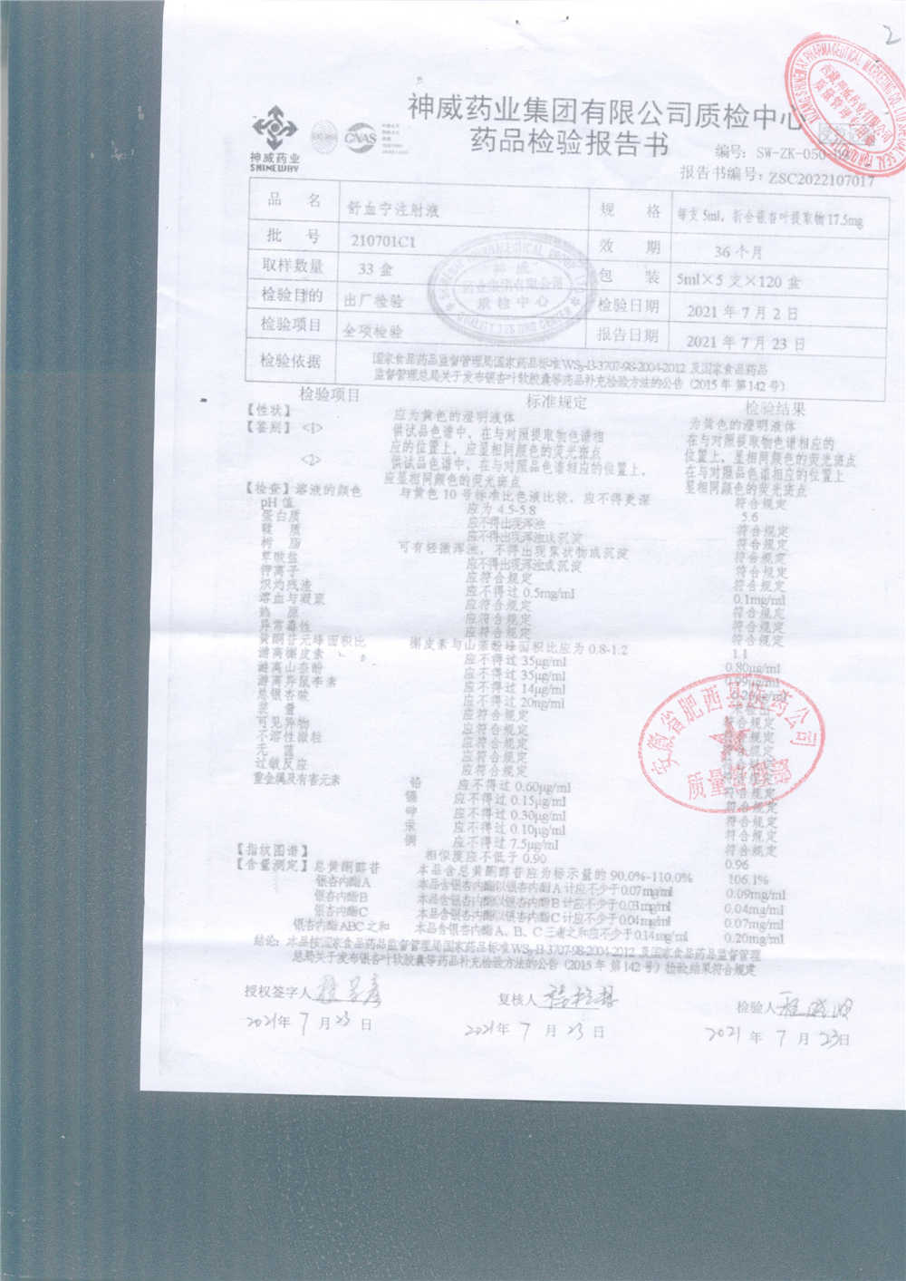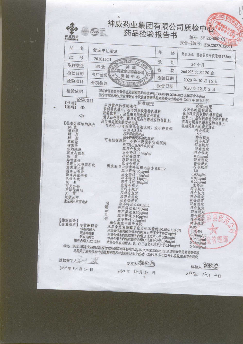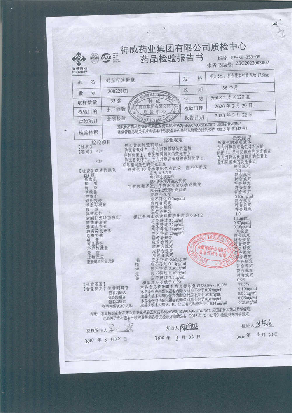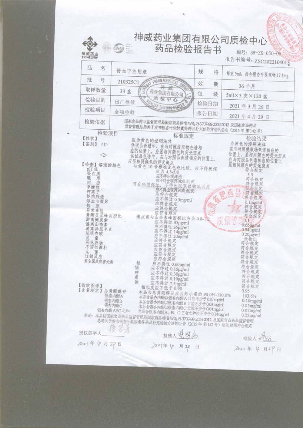 舒血宁注射液 | 5ml*5支 | 220228C1/2 | 查看详情 |