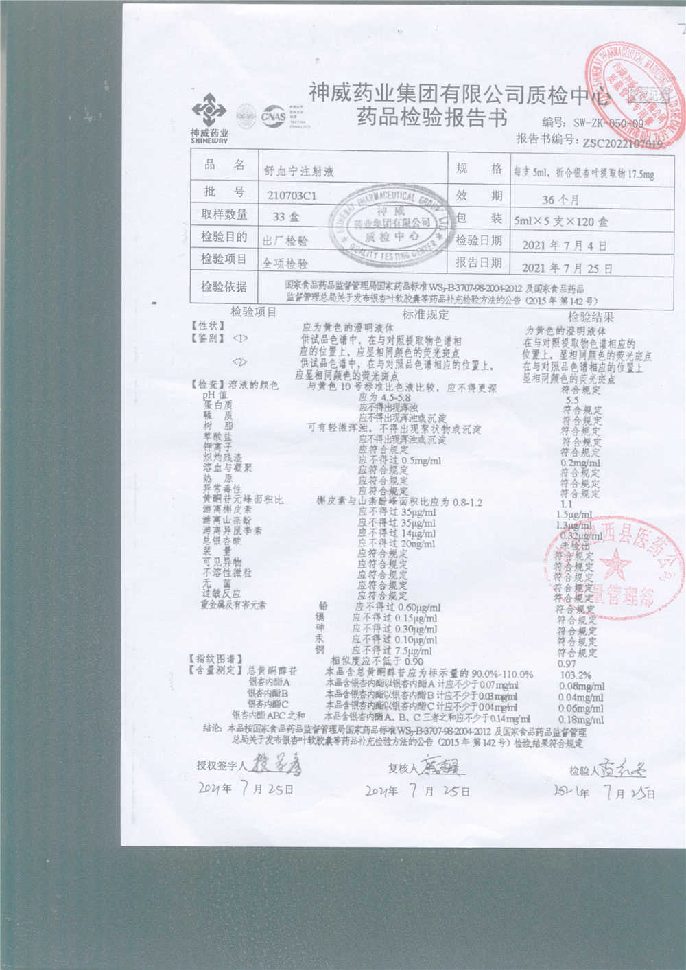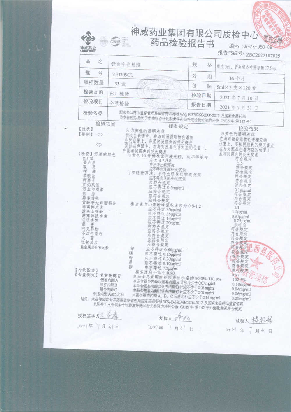 舒血宁注射液 | 5ml*5支 | 210709C1 | 查看详情 |