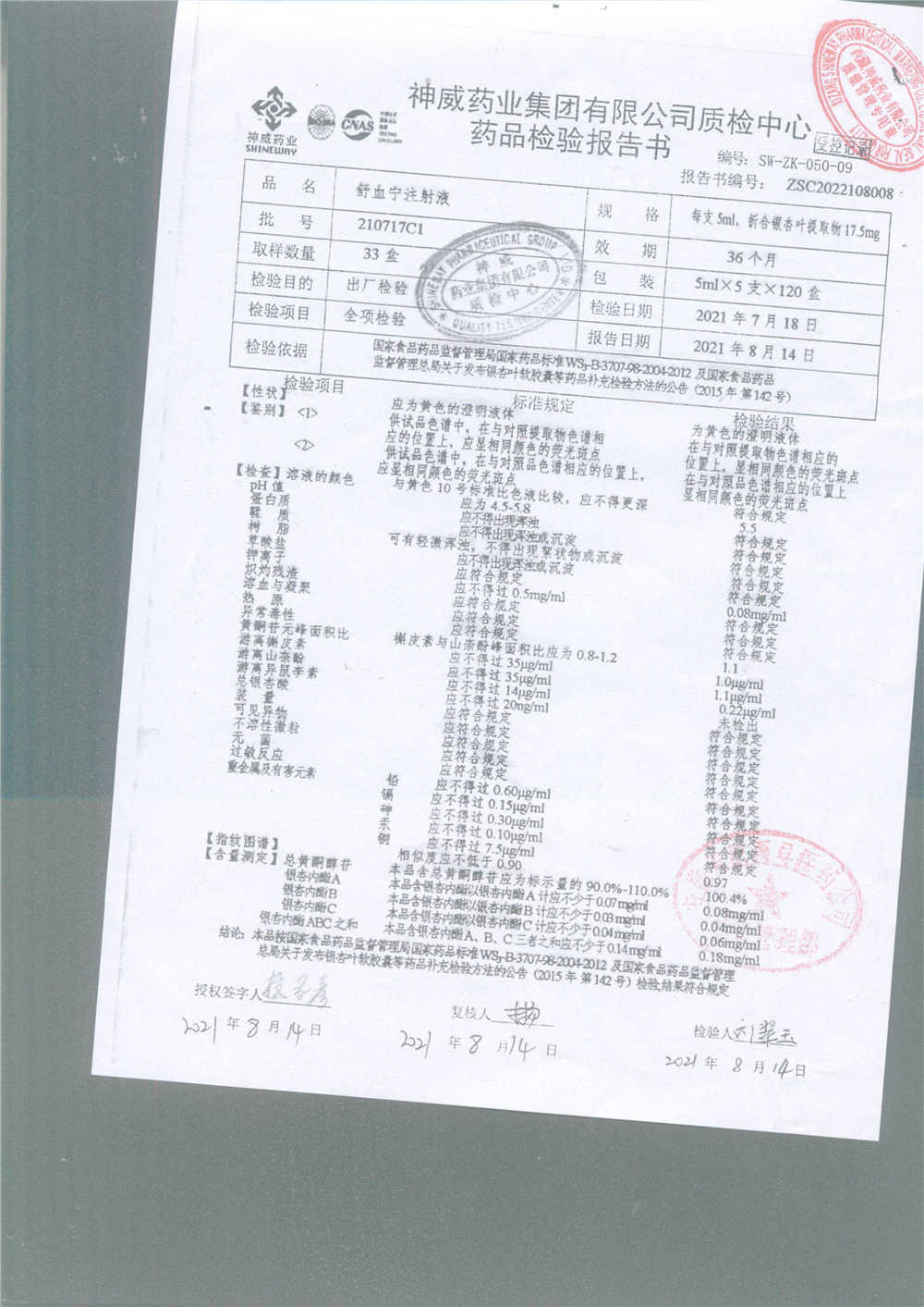 舒血宁注射液 | 5ml*5支 | 220821C1 | 查看详情 |