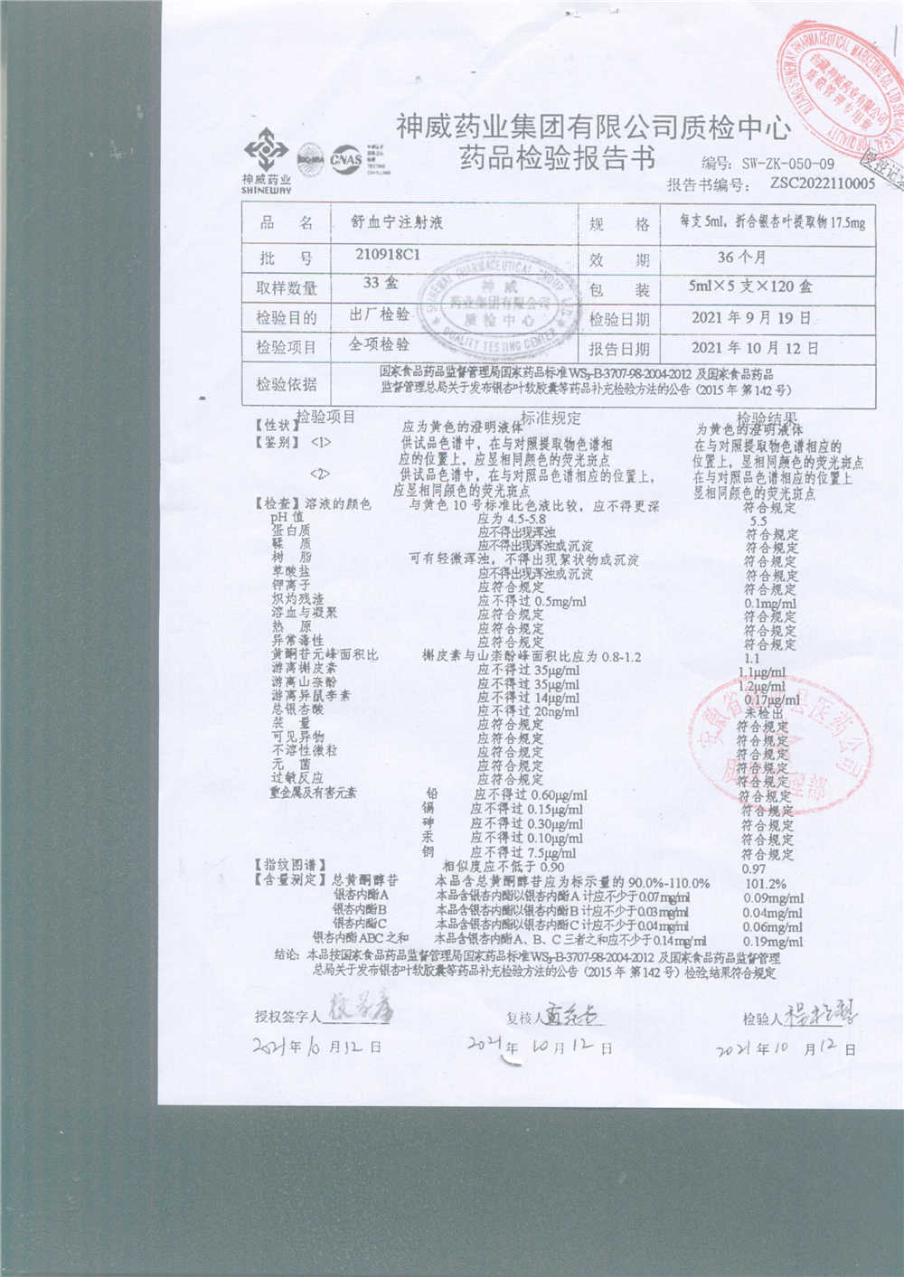 舒血宁注射液 | 5ml*5支 | 210918C1 | 查看详情 |