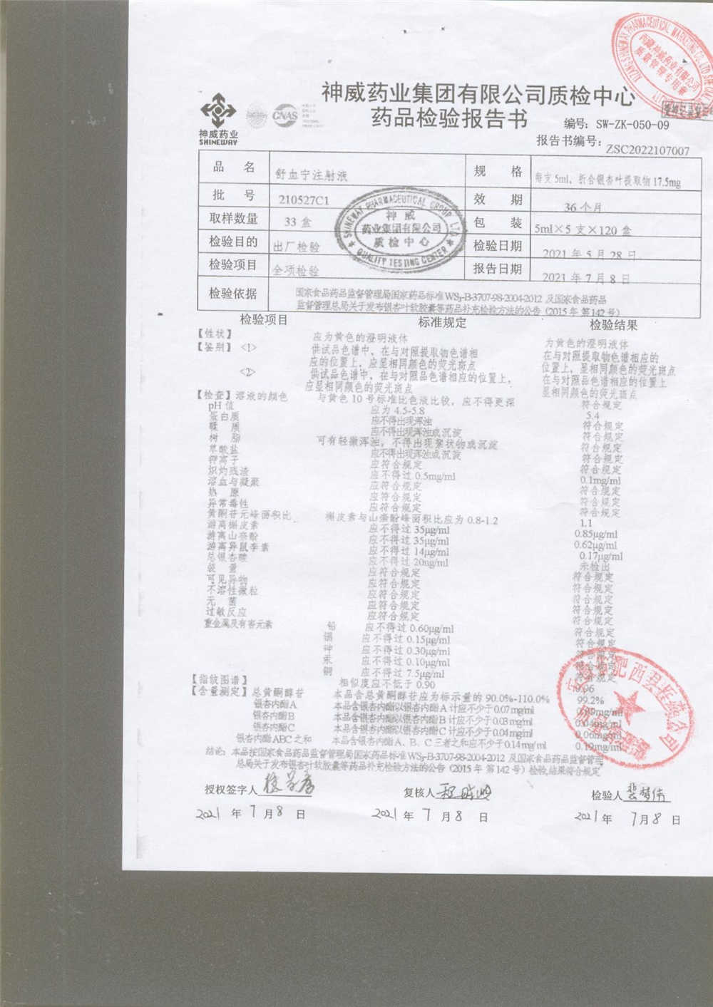 舒血宁注射液 | 5ml*5支 | 210527C1 | 查看详情 |