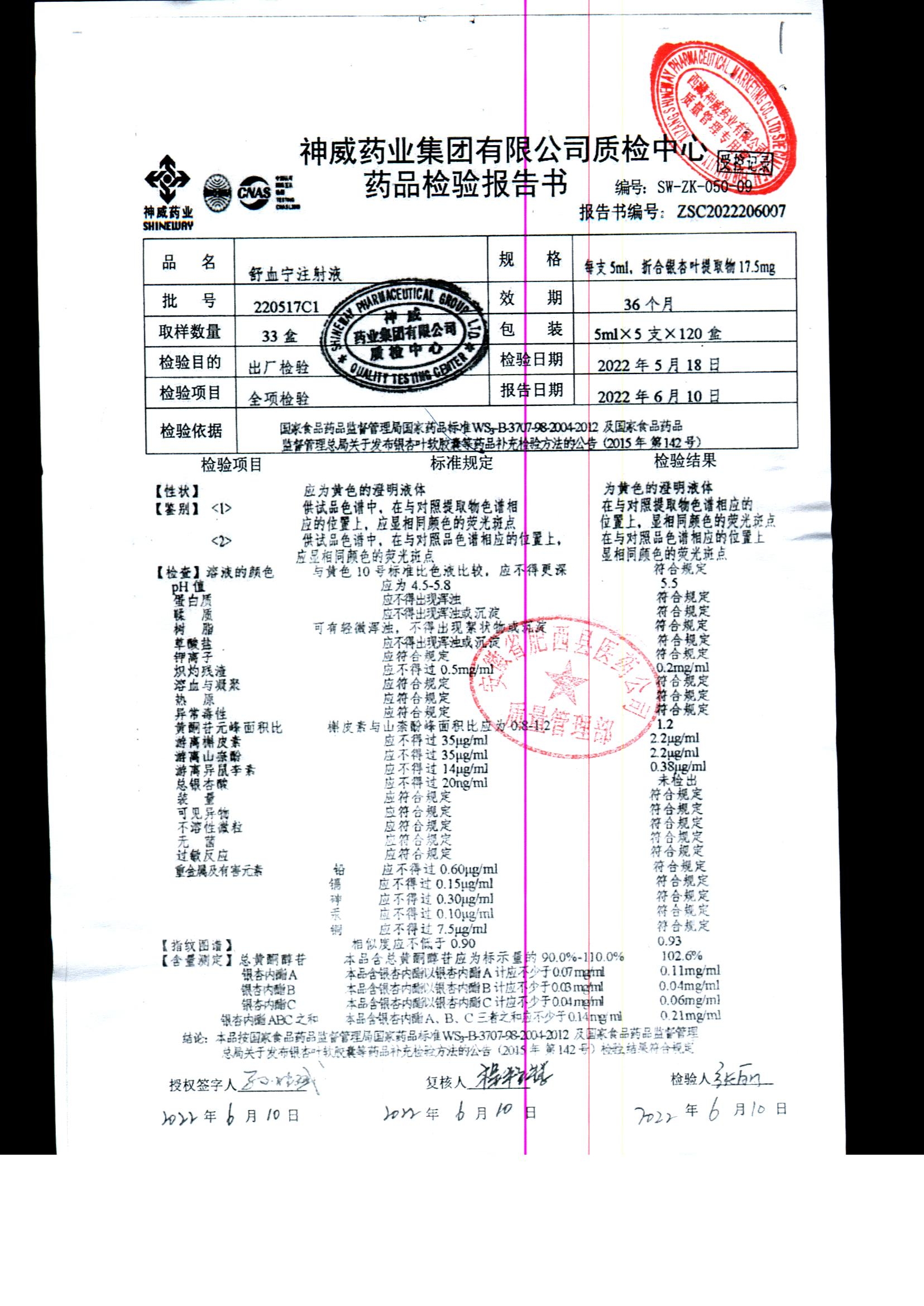 舒血宁注射液 | 5ml*5支 | 220517C1/2 | 查看详情 |