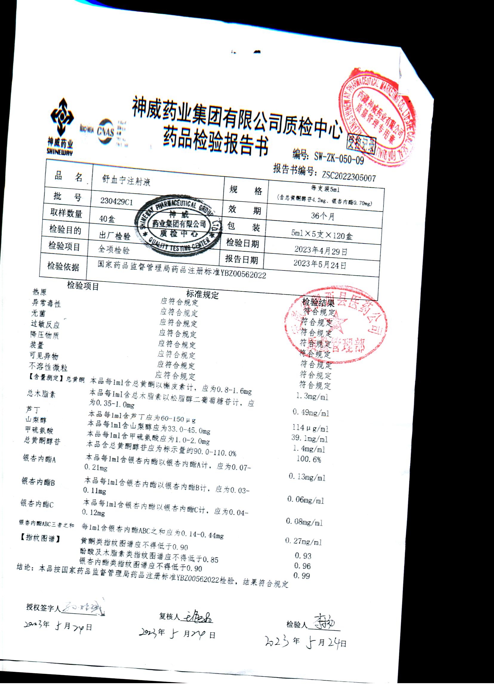 舒血宁注射液 | 5ml*5支 | 230429C1 | 查看详情 |